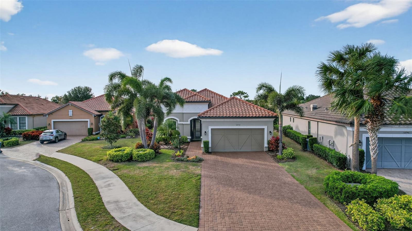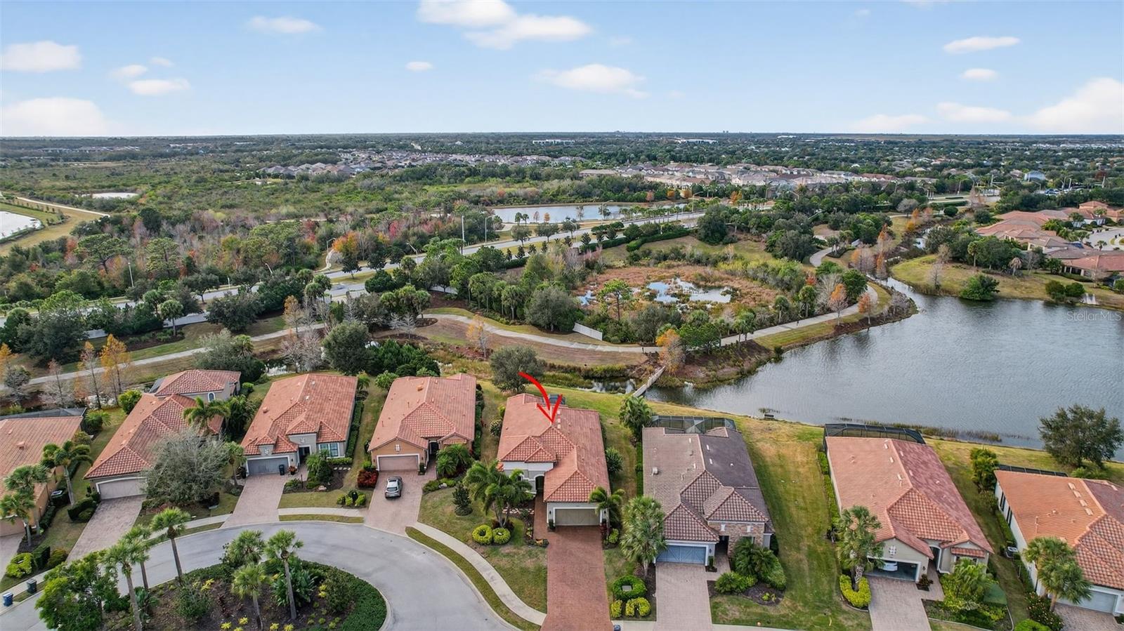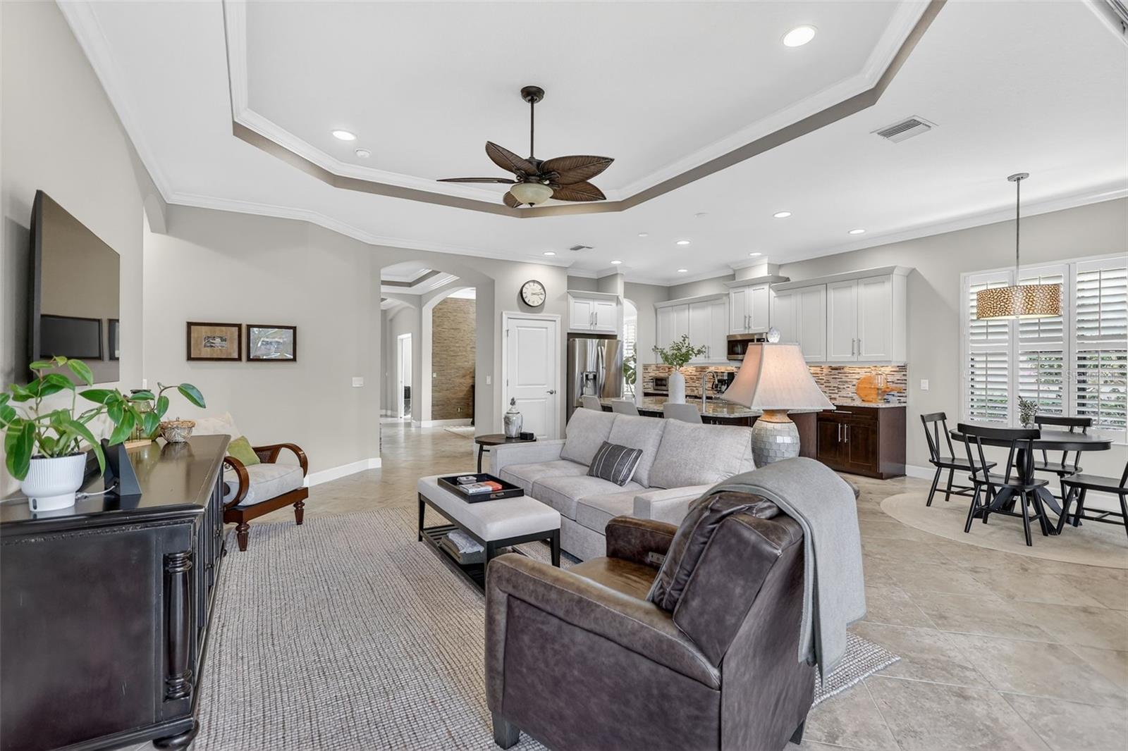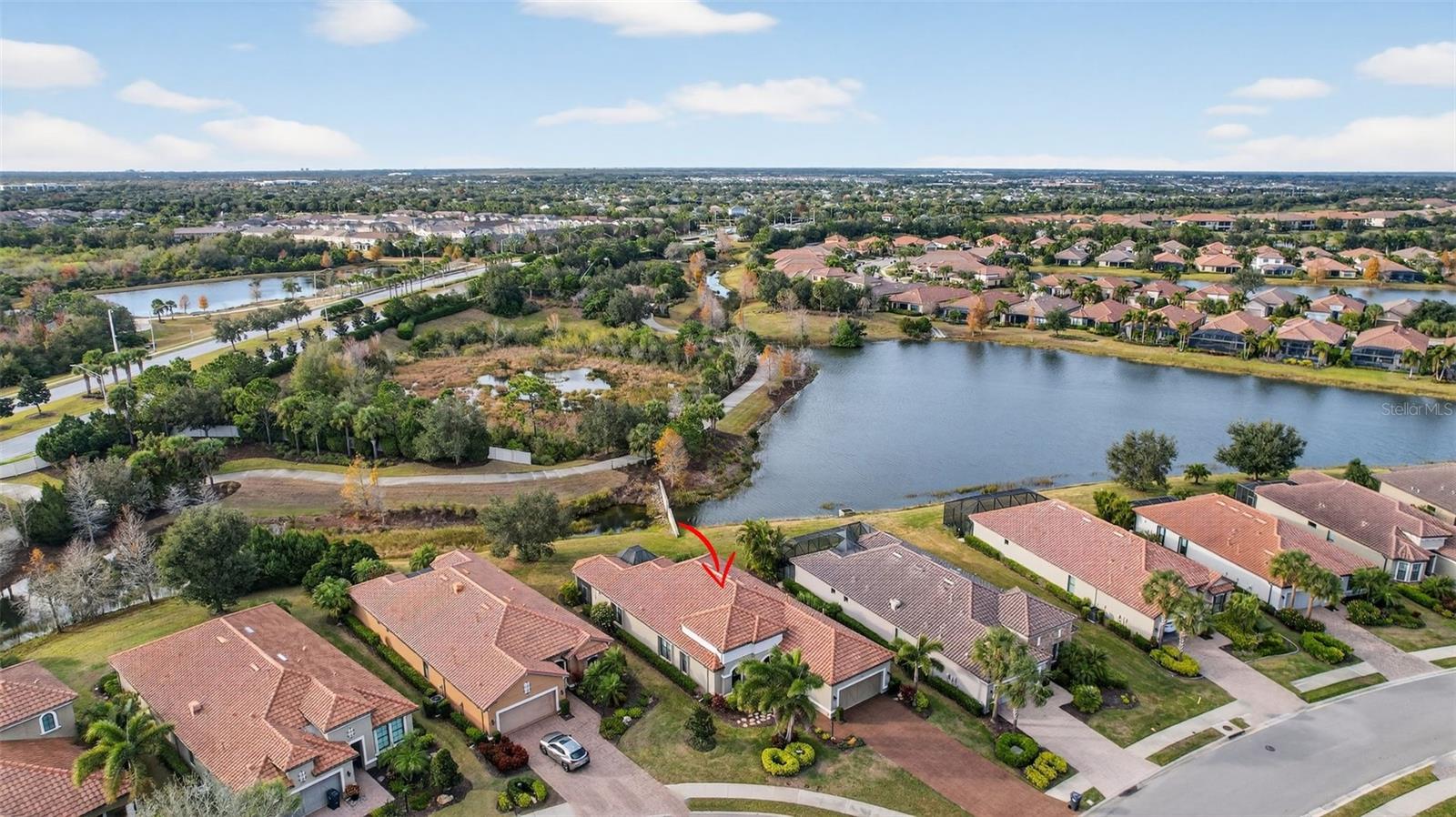 Experience elevated Florida living in this elegantly upgraded light and bright Farnese model, perfectly nestled in the prestigious Esplanade Golf and Country Club at Lakewood Ranch. This stunning 2-bedroom, 2.5-bathroom home with a versatile den offers an open-concept layout and luxurious finishes throughout. From the moment you enter, you'll appreciate the crown molding in every room--including the closets--tray ceilings, and diagonally laid tile in the main living area that adds a touch of sophistication. The gourmet kitchen features soft-close cabinetry, a newer faucet, and a premium 2023 Caf range, dishwasher, and microwave. The spacious primary suite includes a new shower floor, comfort-height toilets, and custom closet systems for maximum organization. The laundry room is enhanced with extra cabinet space and impact glass for added peace of mind. Step outside to a private lanai designed for true Florida living. Enjoy tranquil panoramic views of the pond and walking trail, complete with nebula lighting, a fully equipped summer kitchen, and Storm Smart shutters for hurricane protection. Accordion shutters and additional impact windows at the front door and laundry room provide further security. The extended garage offers epoxy floors, built-in cabinetry, attic stairs, and overhead storage--ideal for both convenience and function. Plantation shutters in the main living area, newer HVAC installed in 2023, and one of the longest driveways in the community complete this meticulously maintained home. Situated in one of Lakewood Ranch's premier lifestyle communities, residents enjoy access to championship golf, tennis, resort pools, fitness centers, dining, and endless social events. With the CDD partially paid off you will have savings of around $900/annually. This home is a rare opportunity for luxury, location, and long-term value. No golf dues pay to play. The drapes in the dinette and great room and the shelves in the office DO NOT CONVEY.