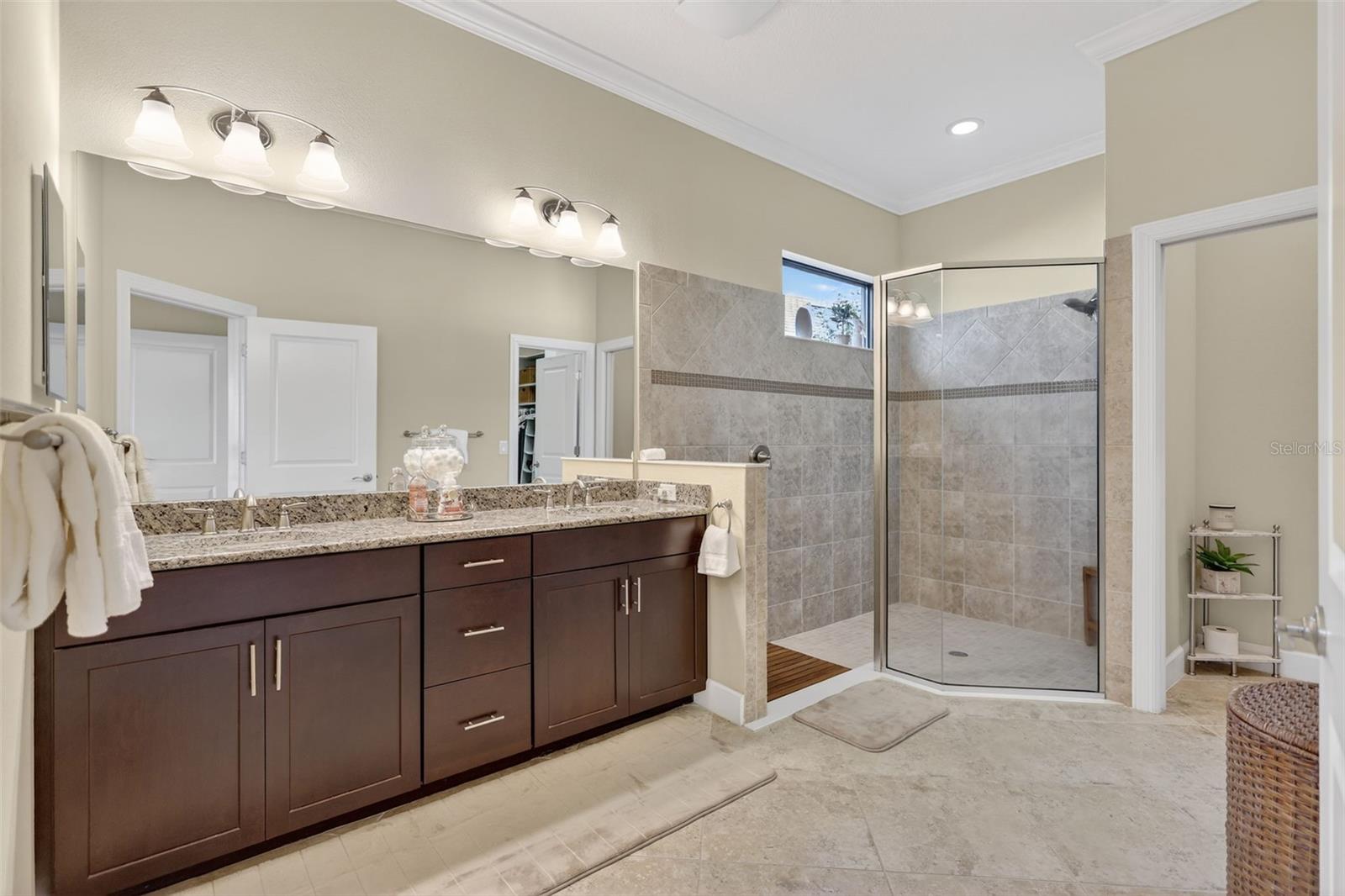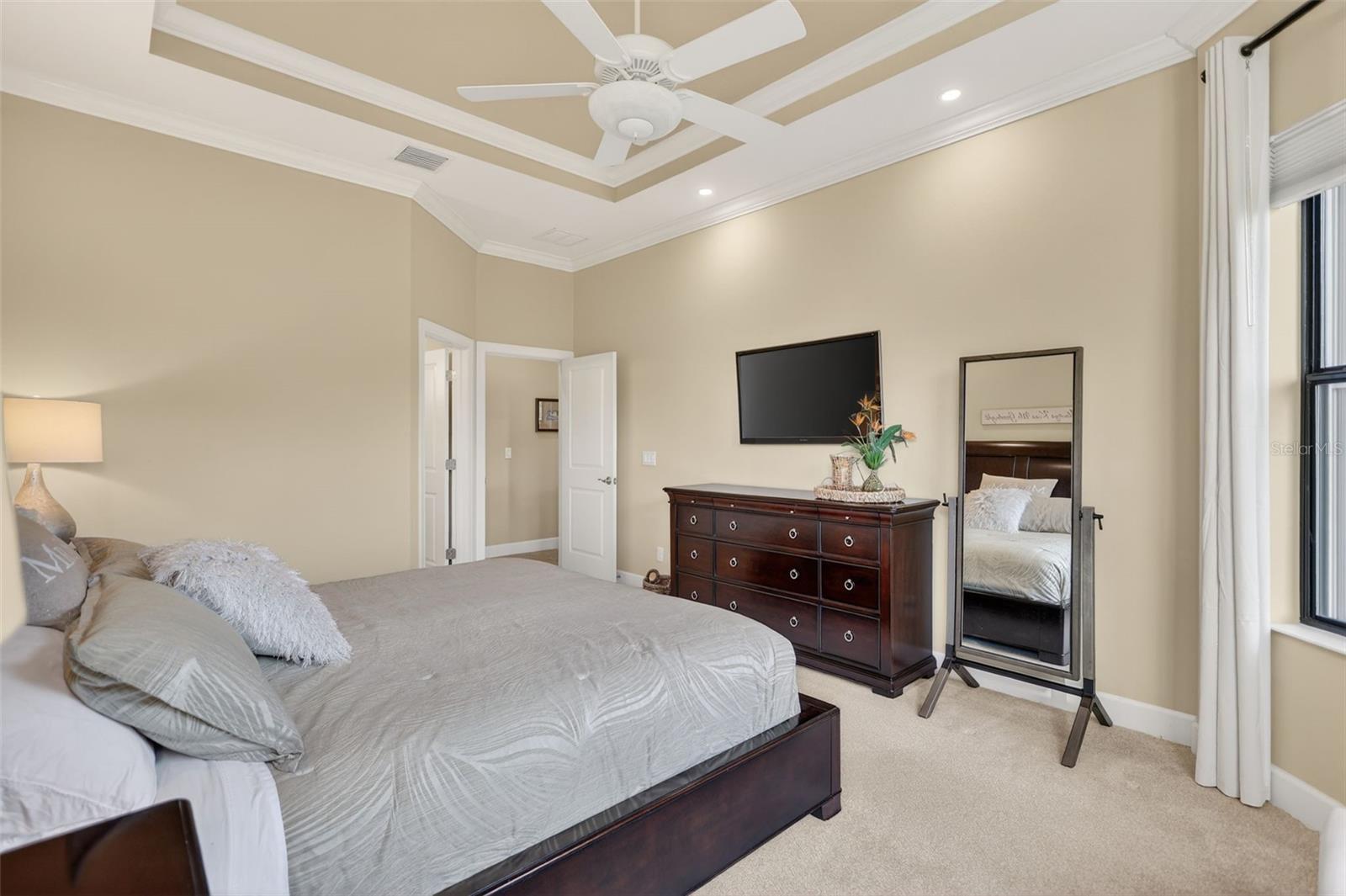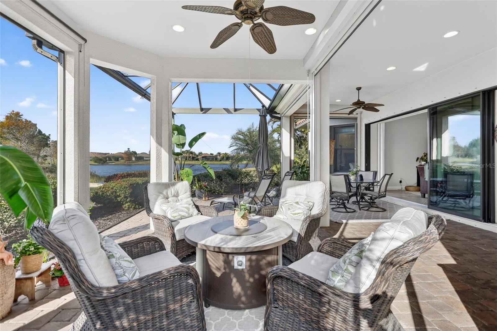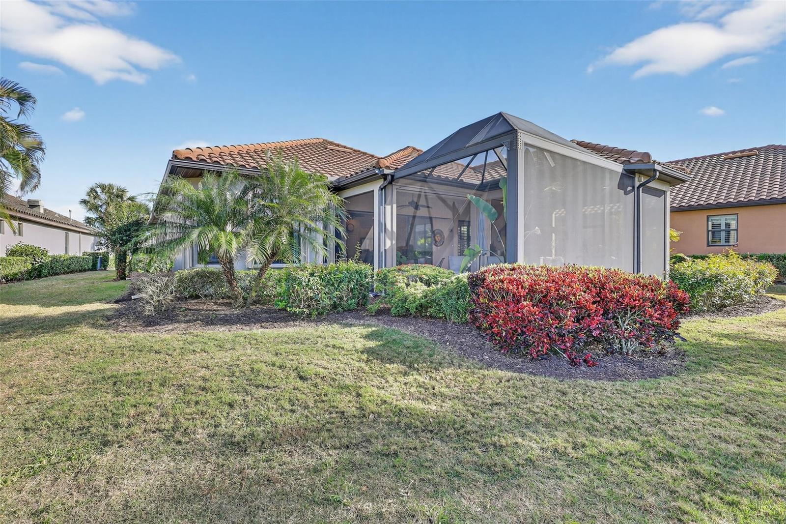 Experience elevated Florida living in this elegantly upgraded light and bright Farnese model, perfectly nestled in the prestigious Esplanade Golf and Country Club at Lakewood Ranch. This stunning 2-bedroom, 2.5-bathroom home with a versatile den offers an open-concept layout and luxurious finishes throughout. From the moment you enter, you'll appreciate the crown molding in every room--including the closets--tray ceilings, and diagonally laid tile in the main living area that adds a touch of sophistication. The gourmet kitchen features soft-close cabinetry, a newer faucet, and a premium 2023 Caf range, dishwasher, and microwave. The spacious primary suite includes a new shower floor, comfort-height toilets, and custom closet systems for maximum organization. The laundry room is enhanced with extra cabinet space and impact glass for added peace of mind. Step outside to a private lanai designed for true Florida living. Enjoy tranquil panoramic views of the pond and walking trail, complete with nebula lighting, a fully equipped summer kitchen, and Storm Smart shutters for hurricane protection. Accordion shutters and additional impact windows at the front door and laundry room provide further security. The extended garage offers epoxy floors, built-in cabinetry, attic stairs, and overhead storage--ideal for both convenience and function. Plantation shutters in the main living area, newer HVAC installed in 2023, and one of the longest driveways in the community complete this meticulously maintained home. Situated in one of Lakewood Ranch's premier lifestyle communities, residents enjoy access to championship golf, tennis, resort pools, fitness centers, dining, and endless social events. With the CDD partially paid off you will have savings of around $900/annually. This home is a rare opportunity for luxury, location, and long-term value. No golf dues pay to play. The drapes in the dinette and great room and the shelves in the office DO NOT CONVEY.