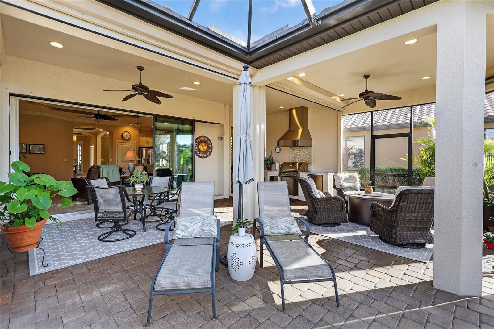 Exterior: Hurricane Shutters, Lighting, Outdoor Kitchen, Sliding Doors