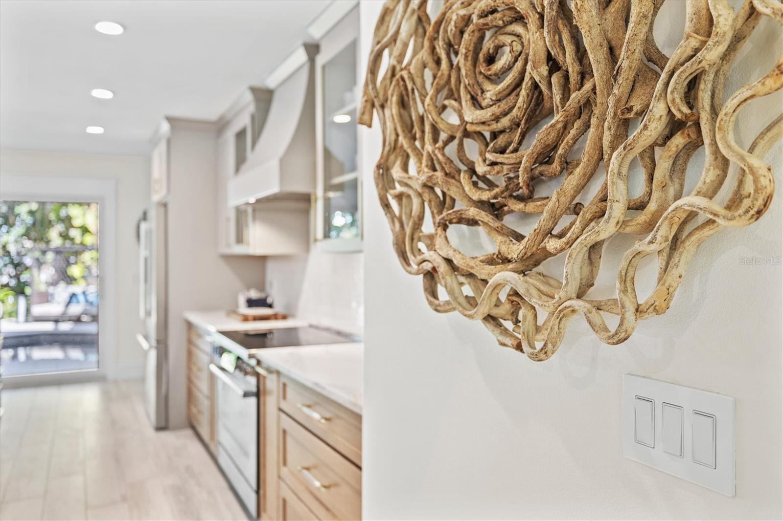 Nestled along a serene canal and embraced by a curtain of mature tropical palms, this custom-remodeled residence unfolds as a private coastal estate--an intimate sanctuary where luxury, tranquility, and effortless island living exist in perfect harmony. Masterfully re-imagined by Eason Builder Group, the home was completely gutted and rebuilt just four years ago, and last year the entire first level was once again fully renovated, resulting in a residence that feels both newly crafted and timelessly refined. From the moment you arrive, a sense of seclusion and calm sets in. As you walk up to the home, an old-growth Gumbo Limbo greets you. Sunlight filters through new hurricane-impact windows, illuminating interiors designed to feel open yet intimate, grand yet soothing. The main living space becomes a natural gathering place, anchored by a custom-built-in entertainment center and a coffee station. An elegant touch that invites slow mornings, refined evenings, and effortless entertaining. Sonos surround sound flows throughout the home, creating an ambient soundtrack for daily life, while a fully integrated security and camera system offers peace of mind and quiet confidence. The kitchen stands as a statement of both beauty and performance, where quartz countertops, solid-wood glass-front cabinetry, a sculptural range hood, designer pendant lighting, and stainless-steel Bosch appliances come together in a space crafted for culinary artistry and connection. It opens seamlessly to the dining area, where a wood-burning travertine stone fireplace adds warmth and architectural presence, setting the stage for candlelit dinners and lingering conversations. Two luxurious primary suites, one on each level offers the rare indulgence of privacy and flexibility. Each is finished with shiplap walls, porcelain tile, recessed lighting, and abundant natural light. The upper-level retreat opens to a private balcony overlooking the pool and tropical grounds, a serene perch for sunrise reflections and evening breezes. Its spa-inspired ensuite features a quartz walk-in shower, while the first-floor primary bath is appointed with a solid-wood double vanity, continuing the home's narrative of tailored craftsmanship and understated elegance. Completing the residence are two additional bedrooms with a shared bath and an upstairs bonus room ideal for recreation, fitness, or creative pursuits. Beyond the interiors, the estate reveals its most captivating chapter. The backyard unfolds as a secluded resort, where a glistening pool and spa are framed by layered, well-established tropical landscaping that has matured into a living wall of privacy. Covered and open-air lounges invite both sun-drenched afternoons and starlit evenings, while a turf-lined grilling and gathering area provides an elevated setting for alfresco dining. Just beyond the palms, the canal stretches quietly behind the property, creating the illusion that the waterway is an extension of your own grounds and inviting a lifestyle of boating, paddleboarding, and sunset cruises from your private dock. When you venture beyond this sanctuary, the unmistakable charm of Holmes Beach awaits. This is more than a home--it is a refined island retreat, custom crafted for those who seek privacy, comfort, and tranquility, with the rare privilege of a secluded waterfront setting and immediate access to one of Florida's most cherished beach communities.