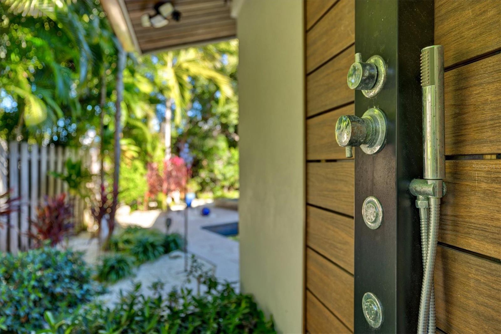 Exterior: Balcony, Lighting, Outdoor Grill, Outdoor Shower, Private Yard, Rain Gutters, Sliding Doors