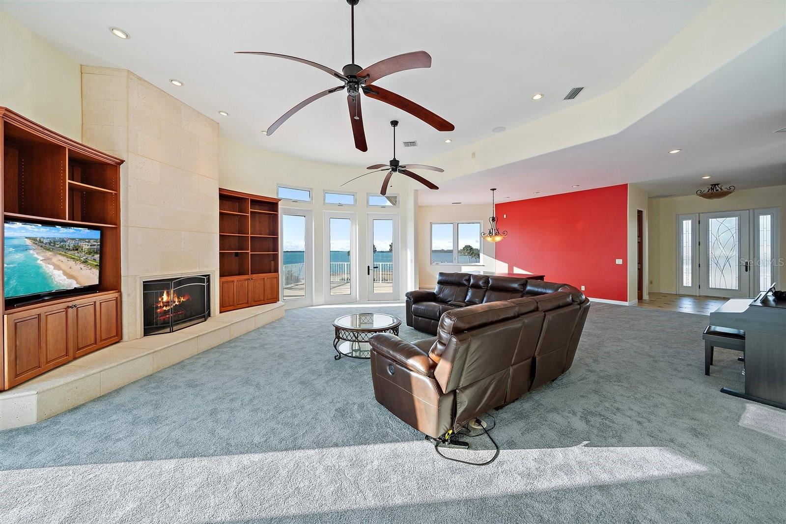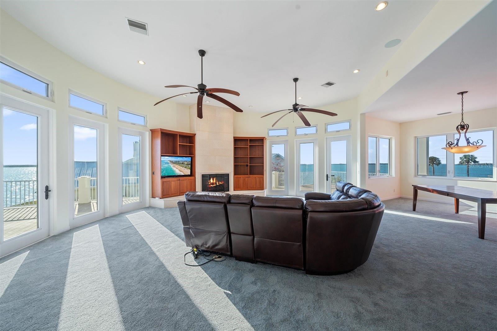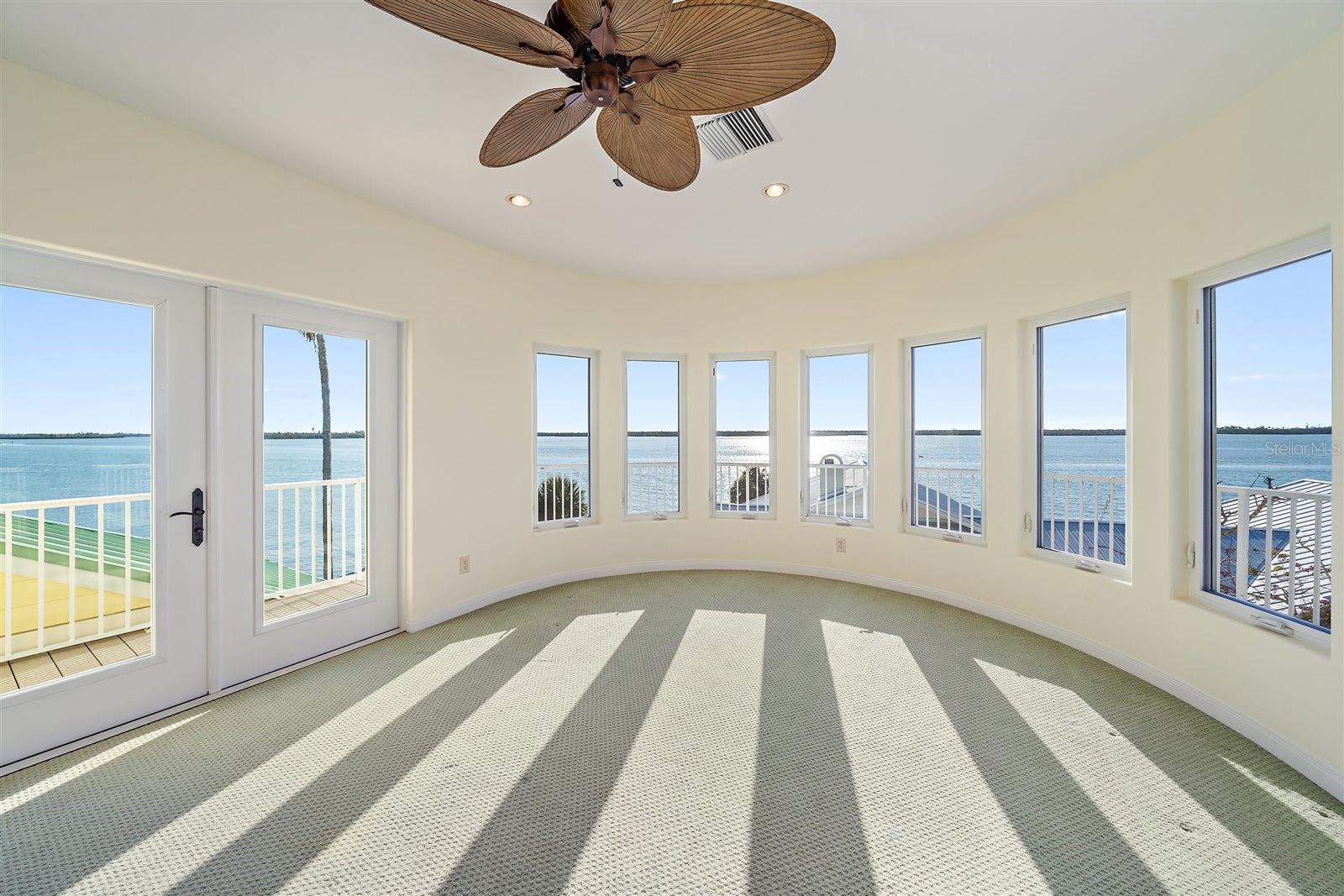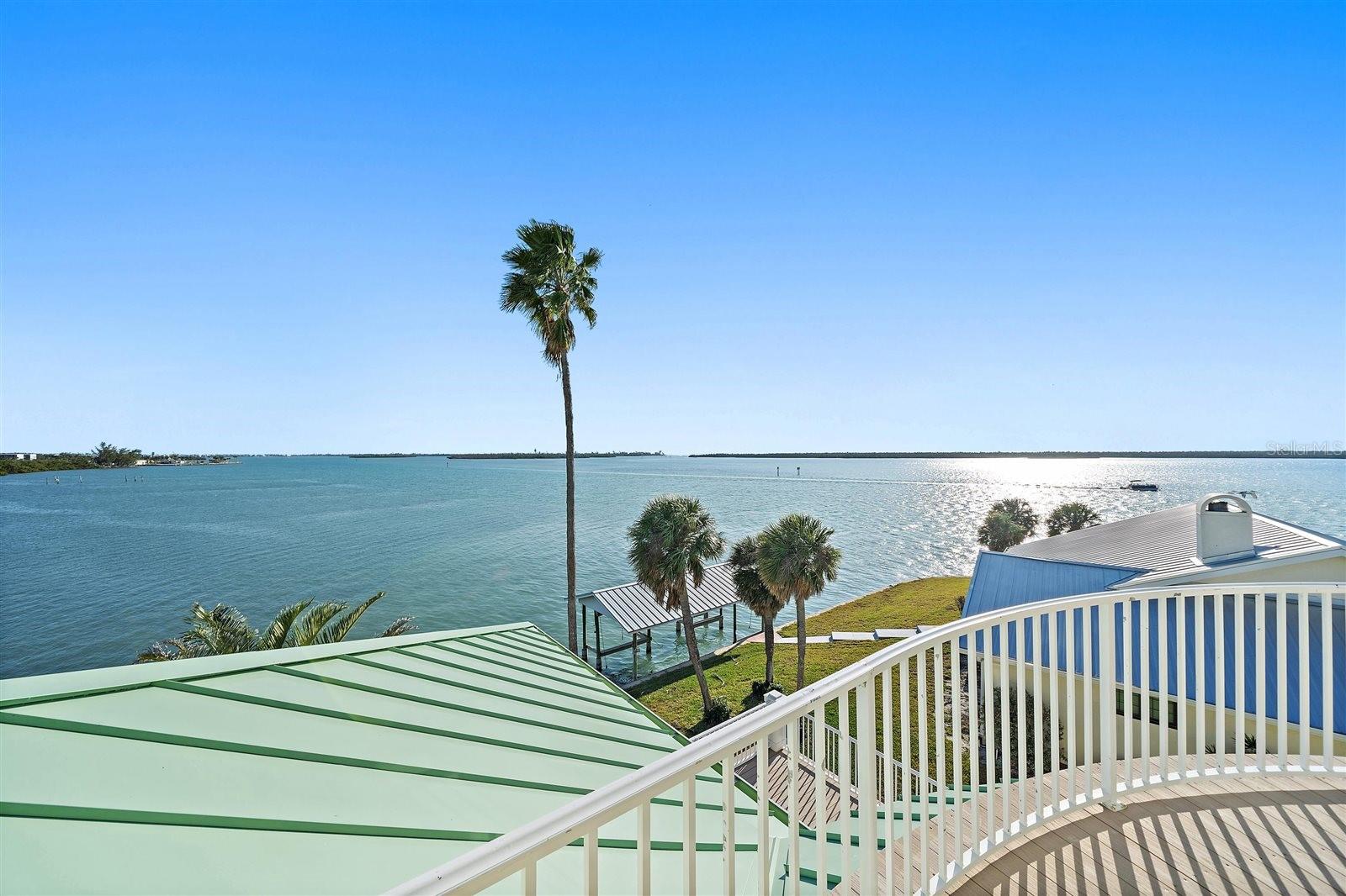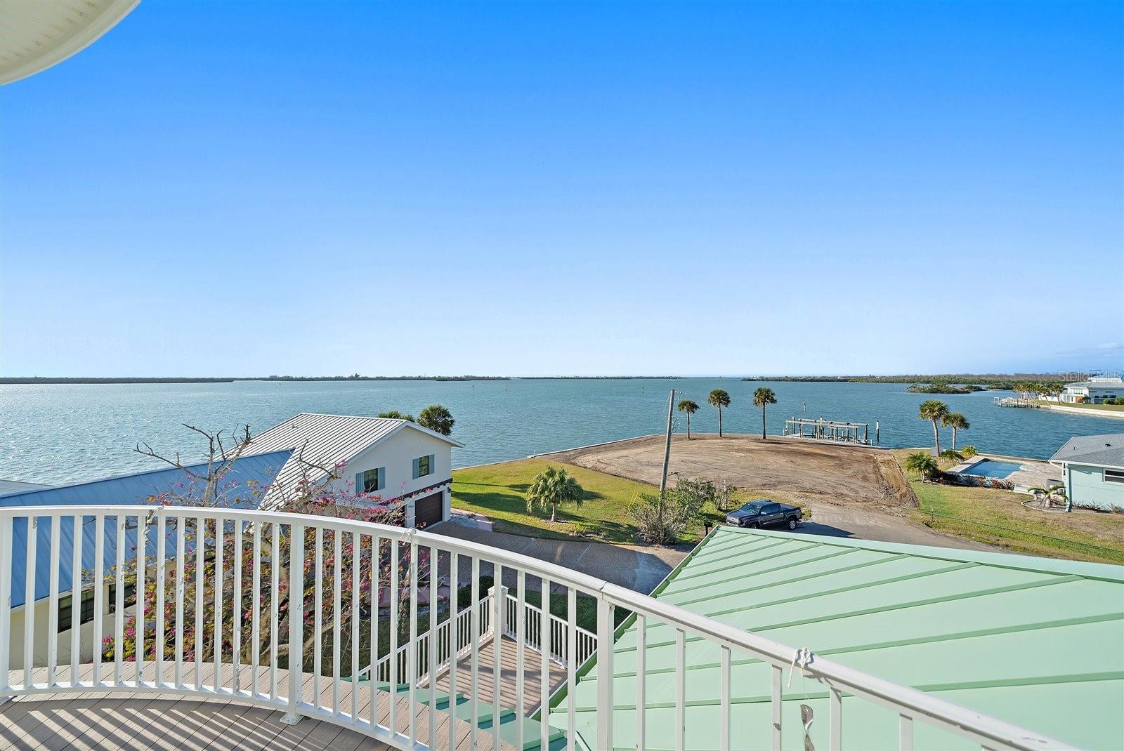 One or more photo(s) has been virtually staged. A landmark waterfront home with a story to tell, set where Lemon Bay meets the Intracoastal & the water surrounds you in every direction.Positioned at the end of a quiet cul-de-sac on Lemon Bay, this one-of-a-kind estate situated on a third acre, offers sweeping water views, exceptional structural integrity, & a design shaped by history & purpose. With water visible from nearly every room & wraparound balconies on multiple levels, the connection to the Intracoastal Waterway, canal, & distant Gulf is constant & unforgettable.The main living level is elevated & encircled by expansive Trex decking, blending covered & open-air spaces ideal for enjoying sunrise, sunset, & everything in between. Inside, the great room features soaring ceilings, built-in cabinetry, recessed lighting, ceiling fans, & a gas fireplace, framed by French doors opening to the surrounding balconies. The dining area flows into the kitchen, where custom cherry wood cabinetry, granite countertops, a large island with seating, pantry storage, & high-end appliances, including a Thermador gas range, create a space well suited for entertaining or everyday living. Elevator access on this level adds ease & functionality.4 bedrooms are located on the main living floor, including 2 en-suite options. The primary suite offers French door balcony access, sweeping bay & distant Gulf views, built-in shelving, & a custom walk-in closet. The primary bath includes dual sinks, Corian countertops, & a glass-enclosed walk-in shower with dual shower heads. A second en-suite bedroom features balcony access, a custom walk-in closet, & a spa-style bath with dual sinks, glass walk-in shower, & a jetted tub overlooking the water. 2 additional bedrooms share a Jack-&-Jill bath with custom built-in closets.The ground level is fully built out under air & functions as a private retreat with a living area, bedroom, & full bathroom with walk-in shower, ideal for guests or poolside living. This level opens directly to the covered & screened pool & spa, where paver decking & generous ceiling height create a protected resort-style setting.At the top of the home, a bonus living space offers bird's-eye views across Lemon Bay & surrounding waterways, with a wet bar, wine storage, refrigerator, built-in desk, attic access, & French doors to a private open wraparound balcony.Outside, the property features a large seawall, sailboat water with no fixed bridges, & a boat lift (not warranted). The seawall allows for re-engineering to accommodate vessels up to approximately 50 to 100 feet, subject to buyer verification. Additional highlights include a small dog run with retractable awning & multiple wraparound balconies maximizing water views.Notable improvements include a new metal roof completed in April 2024, 3 HVAC systems replaced in 2023, impact windows & doors with additional shutter protection, whole-house water filtration & softener system, security system, elevator, & solid core cherry wood interior doors & staircases. Solar panels were previously installed & removed, with infrastructure remaining for future reinstallation.This is a rare opportunity to own a structurally impressive waterfront home where history, design, & expansive water views come together in a setting that cannot be replicated.