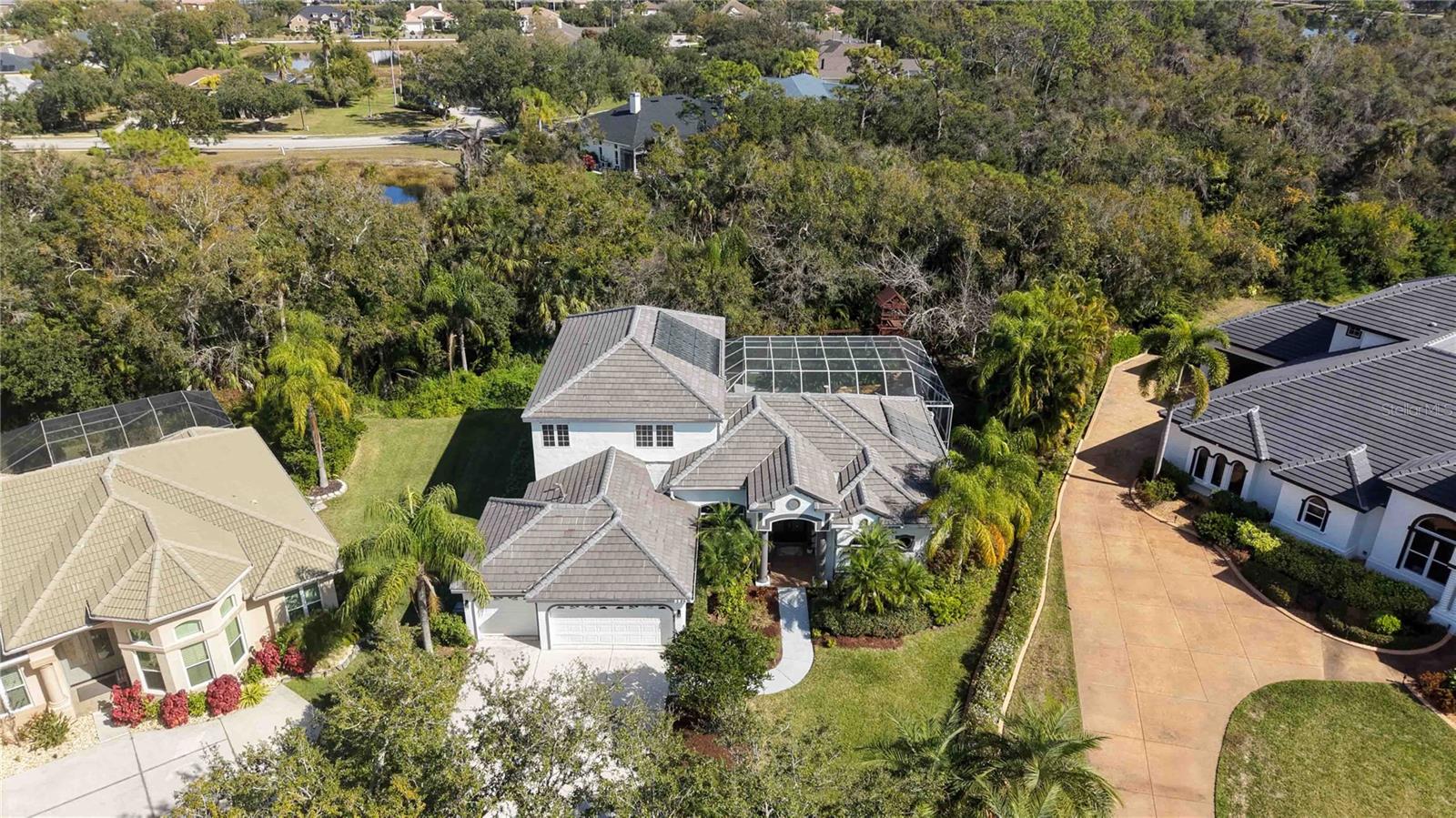 Welcome to your own private natural sanctuary in the heart of Lakewood Ranch's coveted River Club, where tranquil preserve views and a cascading natural rock waterfall pool create a setting of exceptional serenity and beauty. Gracefully positioned at the end of a quiet cul-de-sac on over an acre of pristine land, this refined Todd Johnston estate offers a rare blend of privacy, elegance, and effortless livability.With nearly 3,700 square feet of thoughtfully designed interior space, the home embraces both sophistication and a deep connection to nature. The exterior was newly painted in December 2025, while the interior has been freshly painted in 2024--including all bedrooms, living areas, bathrooms, and kitchen cabinets--paired with a stylish new tile backsplash for a modern, refreshed feel.Take in the stunning natural rock waterfall of the oversized, lagoon style pool that anchors the outdoor living space, set within an extended screened lanai and surrounded by lush preserve views. The expansive backyard features winding trails and a custom-built play area with ziplines and rope swings--creating a true retreat for both relaxation and recreation.Inside, the home offers four spacious bedrooms, three full bathrooms, a private den, and an upstairs bonus room with its own balcony. The main level features a generous primary suite with French doors opening to the lanai, a dedicated home office, and a secluded guest bedroom. The open-concept kitchen includes natural gas cooking, freshly painted cabinetry, and seamless flow into the main living areas.Additional highlights include a brand new roof (March 2025), a three-car garage, mature landscaping, and abundant storage throughout. River Club residents enjoy low HOA fees, no CDD, and a prime location near top-rated schools, championship golf, shopping, dining, and the Gulf Coast's world-renowned beaches.