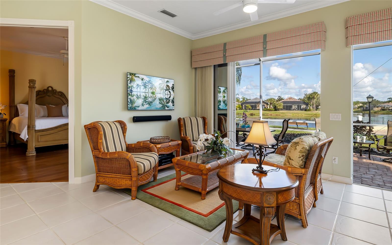 Step into a Sarasota lifestyle that feels refreshingly carefree. Sunlit days, beautiful surroundings, and amenities that keep you active and connected. Set at the end of a quiet dead-end street with lakefront on two sides, this spacious VillageWalk residence is designed for easy lock-and-leave living, whether you're here for the season or savoring Sarasota year-round.Inside, you'll find generous, light-filled living space (2,201 sq. ft. A/C; 2,695 sq. ft. total) with an open layout, three bedrooms plus a den and three baths, finished with crown molding, decorative door casings and floor-to-ceiling built-in wall system. Practical upgrades include a Kinetico water filtration/softening system and a generator. Sliding glass doors open to a spacious screened lanai with tranquil lakefront views.VillageWalk is popular for its resort-style, low-maintenance lifestyle and welcoming, socially active atmosphere. Miles of scenic paths wind through 516 acres of lakes and preserves, while the lakefront Town Center delivers true staycation energy: 24-hour fitness, heated lap and resort pools, tennis and pickleball, and a full calendar of events. Add the convenience of an on-site caf, gas station, salon, post office and gift shop, plus a prime Palmer Ranch location near shopping, dining, the Legacy Trail and Siesta Key Beach.Carefree days. Peaceful views. Welcome to the good life at VillageWalk.