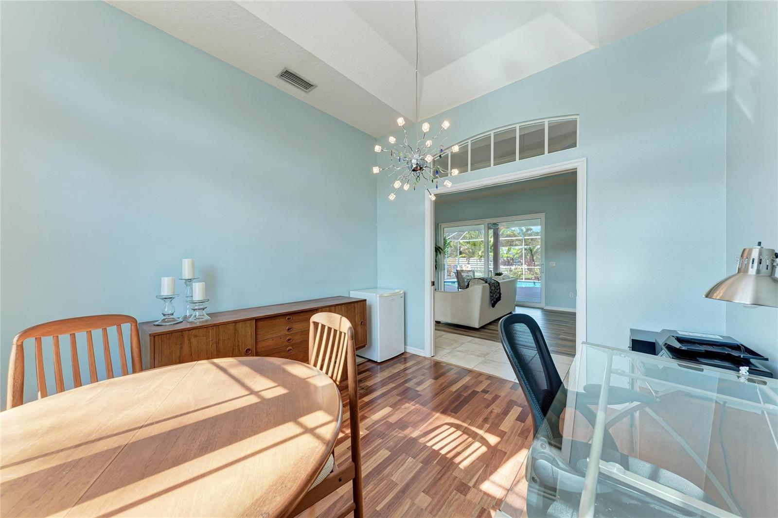 Welcome to an exceptional four bedroom, three bath plus an office POOL home. Located in an "A rated" school district this home offers an ideal layout for entertaining and family living. Two guestrooms share a well appointed bathroom with a pocket door for added privacy. The primary suite features direct access to the pool and a spa-like, en-suite bath with dual sinks, a walk in shower and a garden tub. The updated kitchen features a large breakfast bar, granite counter tops, solid wood cabinetry and a dining nook overlooking the sparkling pool. This home also features a newer tile roof from 2016, impact windows, doors and sliders! Additional features include a private office with French doors, a two car garage with a work bench, a laundry room with a sink and a window and a large screened lanai enclosing your heated pool. McIntosh Lake is a well maintained community with low HOA dues and friendly neighbors. Make an appointment today!