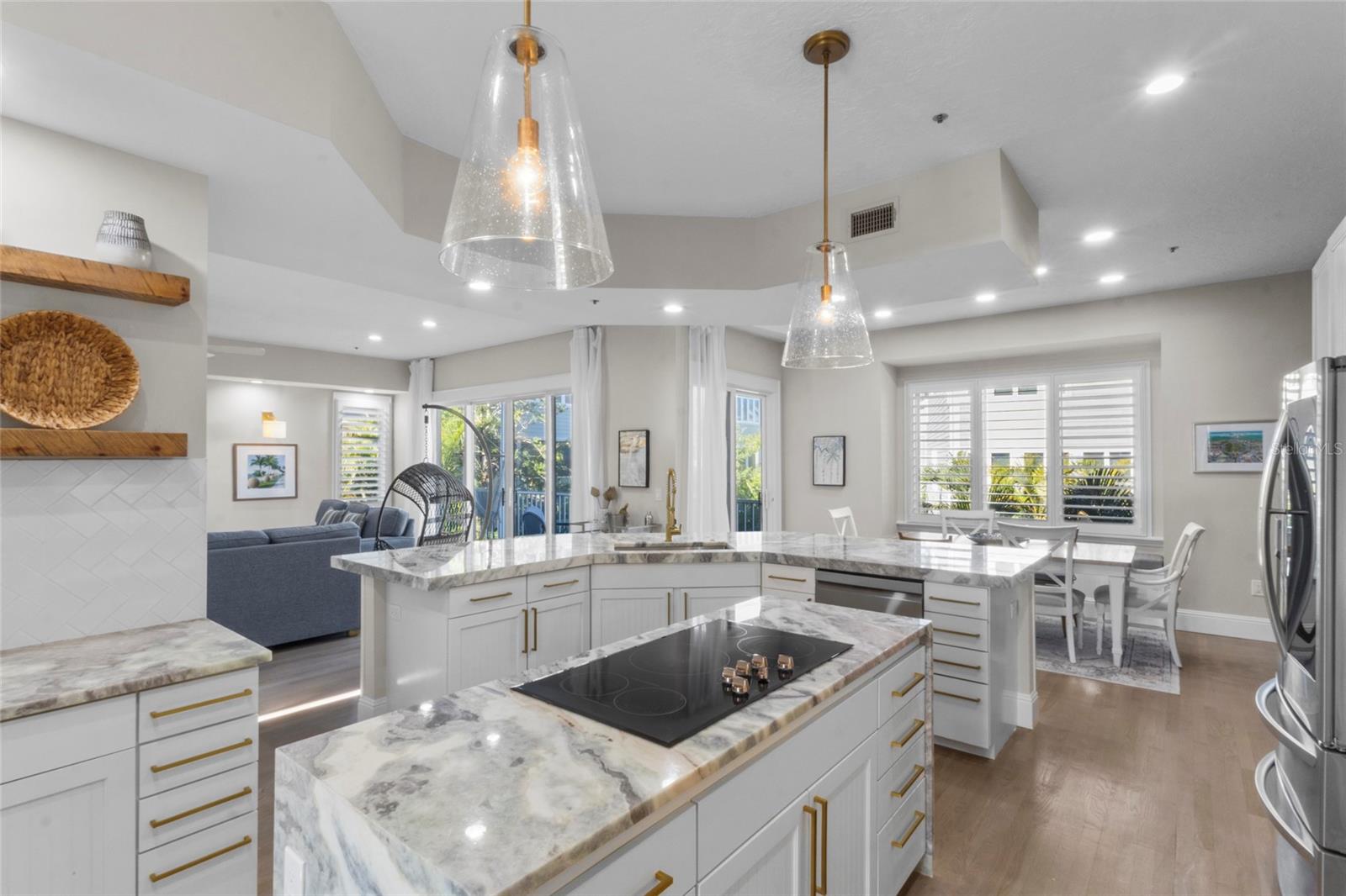 Experience the ultimate island lifestyle in this masterfully renovated 2,880 sqft living space / 4 Bed/ 3 Bath / 3 Car Garage Elevated sanctuary on the tranquil north end of Longboat Key. Offering the expansive feel of a single-family residence with the effortless "lock-and-leave" ease of being in the beautiful condo community of Cedars Tennis Resortand Club. This esquist 4BR/3BA retreat defines coastal chic. A private elevator serves all three levels, opening into a sun-drenched great room with soaring ceilings, a fireplace, and a gourmet kitchen featuring dual islands and designer finishes. The refined dining room opens right off of this space with its custom built-in cabinetry and dry bar, ideal for any social gathering. Relax on your private, screened lanais overlooking lush tropical foliage and serene ponds, with peek-a-boo views of the Gulf. There is one on each living level. Rounding out the main living area is a versatile den/office (currently used as the 4th bedroom), a full third bathroom, beautiful hardwood floors throughout and a dedicated laundry room. The primary suite is a true oasis with a spa-inspired sunken bath, large walk-in shower and dual vanities and walk-in closets. Upstairs beyond the oasis of a primary there are two additional oversized guest bedrooms and a beautifully renovated guest bathroom with walk-in shower. Recent updates beyond the full renovation of the interior include 2026 Garage door replacements, 2024 roof and AC replacement. Hardi- Board siding on exterior and Pella high-impact windows. The split 3-car garage provides total peace of mind and the rare abundance of space and storage. Nestled in the 66-acre village-like townhome community that is enveloped by nature, providing effortless access to both the beach and the bay on the beautiful north end of Longboat Key. The spacious and tropical community features lit boardwalks winding through mangroves, leading to an array of exceptional amenities including a heated Jr. Olympic Size Pool, nine Har-Tru Tennis Courts, three Pickleball courts, a Clubhouse with a Pro-Shop, a 24-hour Fitness Center, a Tiki bar, a restaurant, a fishing pier, and a kayak launch. Please note that some amenities require an additional club membership. The property is within walking distance to a variety of local attractions, such as Harry's Deli & Continental Kitchen, the true island gem that is Joan Durante Park, Euphemia Haye Restaurant & The Haye Loft, and, of course, Longboat Key's globally renowned sugary white sand beaches. Furthermore, it offers convenient proximity to other major attractions and cultural venues, including St. Armand's Circle, Mote Aquarium, the Asolo Repertory Theatre, Van Zel Performing Arts Center, Marie Selby Gardens, Anna Maria Island, the Ringling Museum complex, and numerous dining options on Longboat Key and in downtown Sarasota. Cedars East is the rare community on LBK that offers shorter term rental allowance with its 2 week minimum allowance it's the perfect balance of offset cost when not in use while not living in a hotel community. Exceptional onsite management in place if desired. Fantastic residence, rare opportunity, come take a look today