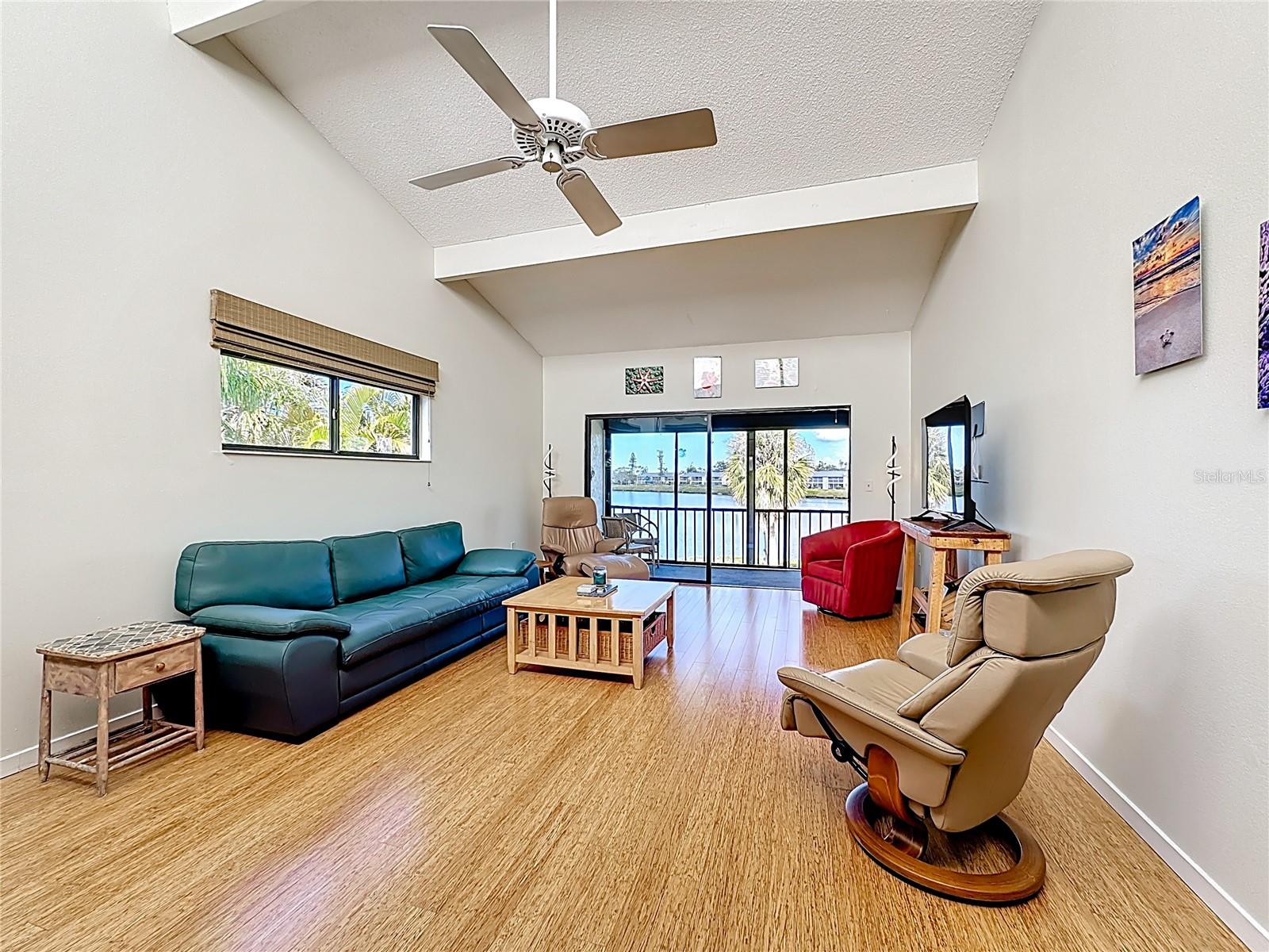 Welcome to Pelican Cove THEEE premier condominium association in South Sarasota. Your new condo is and END UNIT. This condo is Drenched in sunlight with cathedral ceilings and clerestory windows...plus stunning views of Pelican Cove Bay. It's truly amazing to see the Pelicans, Osprey and Eagles bombing for fish...just spectacular! Phenomenal views both day and night. The main bedroom is off the lanai, with walk-in closet and walk-in shower. The guest bedroom has built-in closet with tub / shower. The Kitchen wall has been removed for an open plan to dining room and living room. Pelican Cove is a 75-acre, gated, vibrant-waterfront community nestled among manicured tropical foliage. Truly offering something for everyone. Abundant amenities include the 86-slip boat harbor with excellent rates & a launch dock for kayaks and canoes, 6 heated swimming pools, hot-tub, 3 clubhouses, 4 lighted tennis courts, shuffleboard, basketball, dog walk area, walking trails and boardwalks, as well as fishing gazebos, water exercise classes, exercise facility, 2 art studios and a pottery classroom. Take classes at Pelican Cove University or join one of the more than 37 clubs for photography, fiber art, bike riding, culinary arts and card clubs. Woodworking, sculpting, and evening jazz & classical music concerts round out the active lifestyle. Come and see what you have been waiting for.