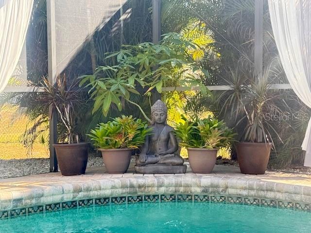 Come to your move-in ready private oasis in the desirable Deep Creek community of Punta Gorda! Located on a quiet dead-end street yet approximately 7 miles from downtown Charlotte Harbor shopping and dining and a short drive to Gulf Coast beaches. This 3-bedroom, 2-bath pool home features a spacious open-concept kitchen and living area with countertop bar seating and fireplace ideal for entertaining; formal dining room; sitting room; laundry room; and a generous primary suite with private bath and two walk-in closets; a thoughtfully designed private guest wing offers two bedrooms (one with a pull-down Murphy bed) and a full bath with its own pool entrance, separated by a pocket door for added privacy and perfect for family and friends visits as well as short-term rentals. Outdoor living shines with a screened lanai and newly finished pool showcasing new tile, coping, pavers, multi-color LED lighting and filter (2025), surrounded by mature areca palms for privacy. Additional highlights include NO FLOOD ZONE, standing seam metal roof (2023), gutters and rain shields (2023), hurricane accordion shutters on all openings, fenced yard, separate well for irrigation and pool in addition to city water, fresh low-maintenance landscaping, plantation shutters (2023), and a beautifully remodeled living area with fireplace, roll-out bar and built-ins with hidden storage. Appliances included are washer, dryer, refrigerator, stove, microwave, dishwasher and wall-mounted TVs, with additional furniture negotiable. Ideally located approximately 12 miles to Punta Gorda Airport (PGD) and 37 miles to Southwest Florida International Airport (RSW). Baseball fans will enjoy proximity to Charlotte Sports Park, the Spring Training home of the Tampa Bay Rays. Golf enthusiasts can take advantage of two of the area's best public courses, Deep Creek Golf Club and Burnt Store Marina Country Club, both within roughly 10 miles