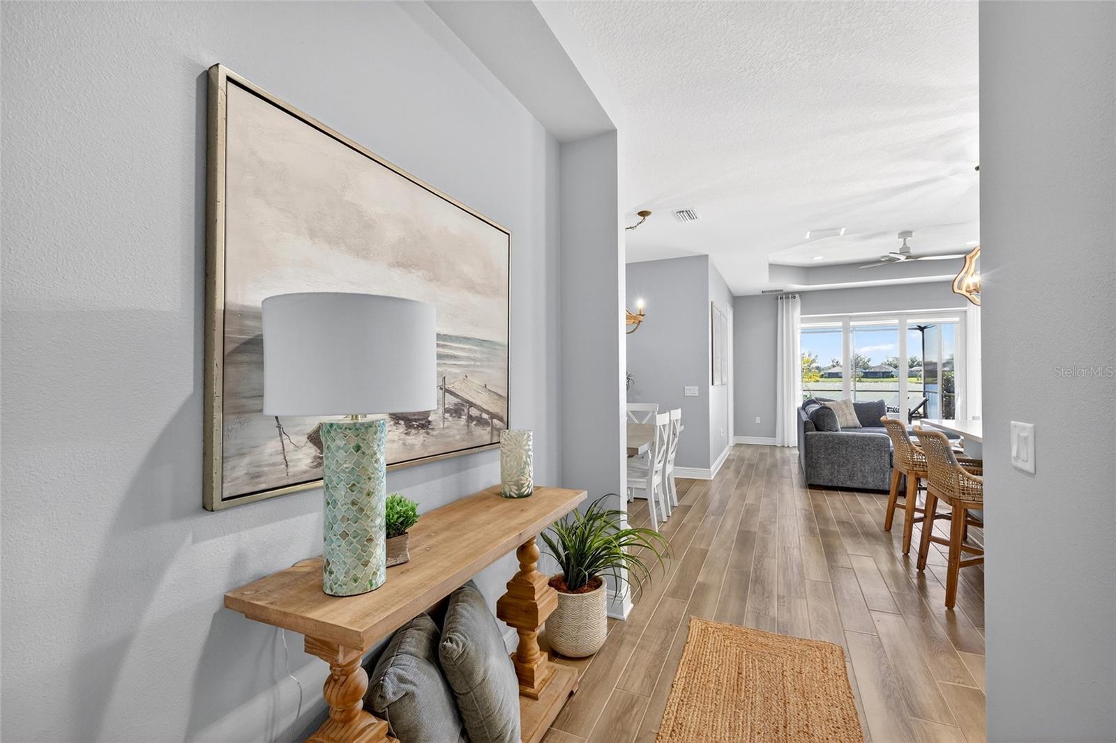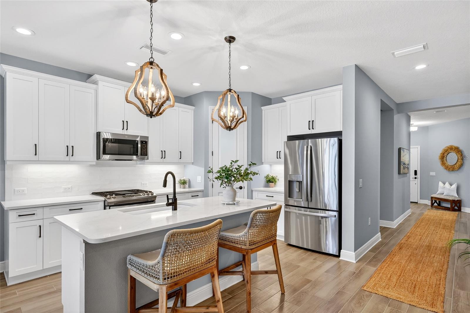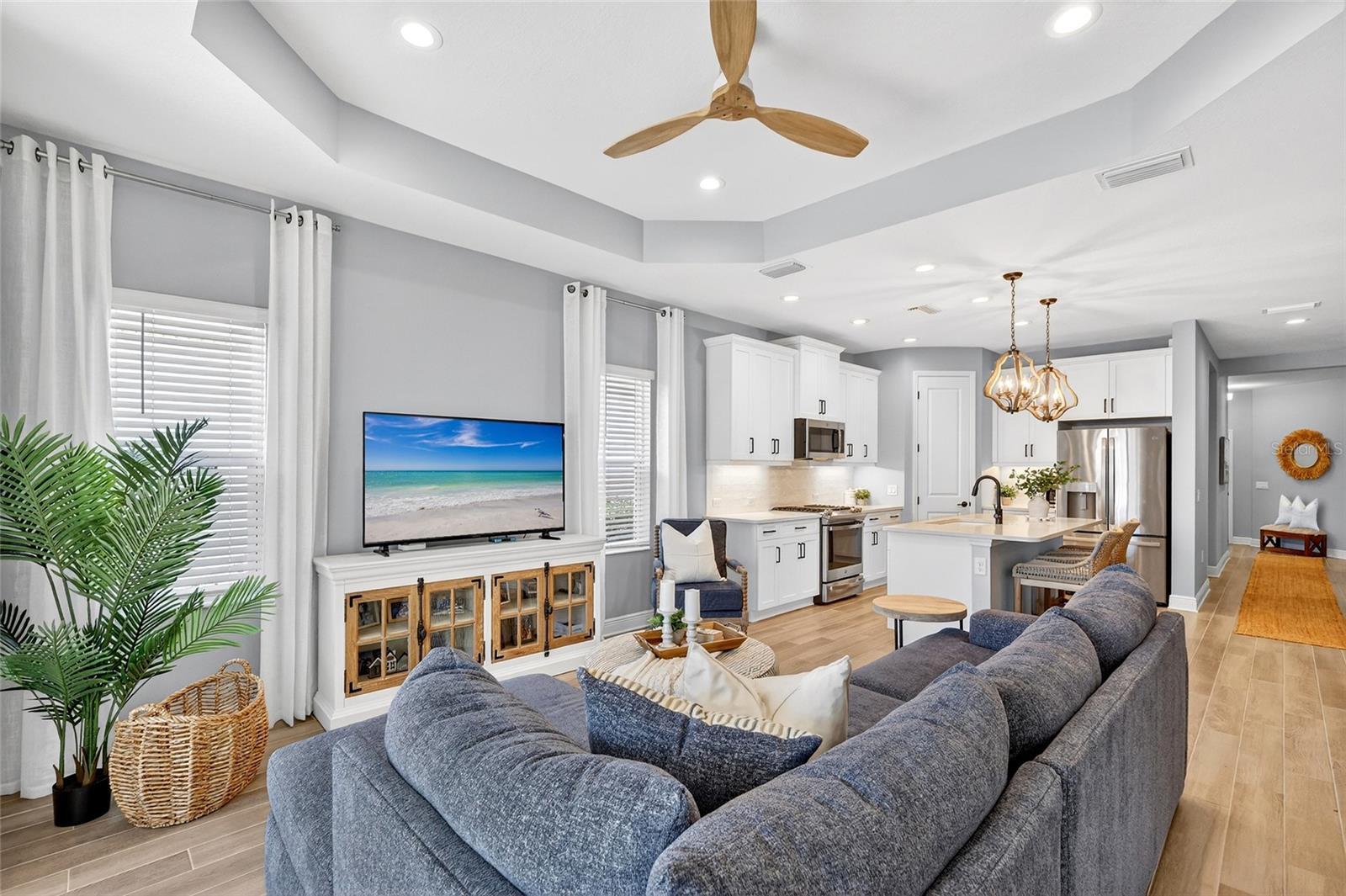 This 3-bedroom, 2-bath home with a den offers a pool, a water view, and standout storm protection with impact windows and doors plus automated hurricane screens on the covered lanai. Enjoy an easy indoor-outdoor layout with a pocket sliding door that opens wide to the lanai and view.The kitchen is finished with quartz countertops, stainless appliances, an island, a single-basin undermount sink, upgraded pendants and chandelier, and a custom pantry. Inside, wood-look tile flooring pairs with tray ceiling detail, quartz countertops throughout, and upgraded carpet in the bedrooms. The primary suite includes a barn door and a custom walk-in closet. Comfort and efficiency upgrades include a smart thermostat, UV light in the furnace, and spray foam insulation. Outdoors, the pavered lanai is set up for an outdoor kitchen with pre-plumb, complemented by the pool and water view, plus a Google Nest doorbell. The laundry room includes added cabinetry, and the garage features epoxy floors.HOA COVERS: Lawn care, Swimming Pool and Spa, Fitness Center, Clubhouse with Catering Kitchen, PickleBall, Bocce Ball, Manager, Onsite Activities Director, Security Gates. LOCATION: Centrally located. Just outside the gates are A+ schools, Gullett Elementary, Lakewood Ranch High School, and Mona Jain Middle School, LECOM, & Manatee Tech East Campus. Minutes to shopping, restaurants, gyms, salons, bars, etc. Minutes to downtown, Sarasota International Airport, the top rated beaches in the country, UTC Shopping.