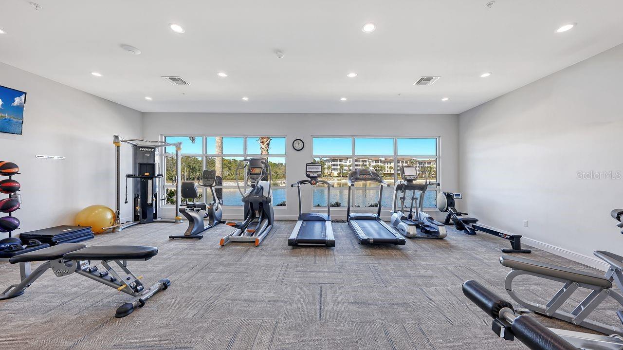 Step inside this 5th-floor Cayman floorplan in Building One, offering privacy, water views, and walkable access to Lakewood Ranch Main Street within the gated Waterfront at Main Street community. The three-bedroom, two-bath layout features an open and functional design with quality upgrades throughout.The kitchen is well-appointed with upgraded cabinetry, quartz countertops, and premium appliances, opening seamlessly to the main living and dining areas. The dining area is enhanced by a bay window that brings in natural light and adds architectural interest to the space.Large-format tile flooring, coffered ceilings in the living area, tray ceilings in the bedrooms, crown molding, and updated lighting fixtures enhance the home's polished feel, reflecting a clean, contemporary design. Storm-rated impact windows provide peace of mind, complemented by plantation shutters and custom Hunter Douglas shades incorporated throughout the home.The primary suite captures tranquil views and includes custom built-ins and a well-designed en-suite bath. Two additional bedrooms offer flexibility for guests, a home office, or additional living space, with designer finishes carried consistently throughout.Enjoy expansive views of Legacy Golf Course and Lake Uihlein from the living area and screened balcony--ideal for morning coffee or unwinding at the end of the day. A private storage unit conveys with the property, providing valuable additional space.Residents enjoy gated access and resort-style amenities including a heated saltwater pool and spa, clubhouse, fitness center, kayak launch, outdoor grilling area, and firepit. The location offers walkable access to Lakewood Ranch Main Street, convenient access to I-75, and a short drive to Waterside Place, UTC Mall, and surrounding Sarasota and Lakewood Ranch amenities.
