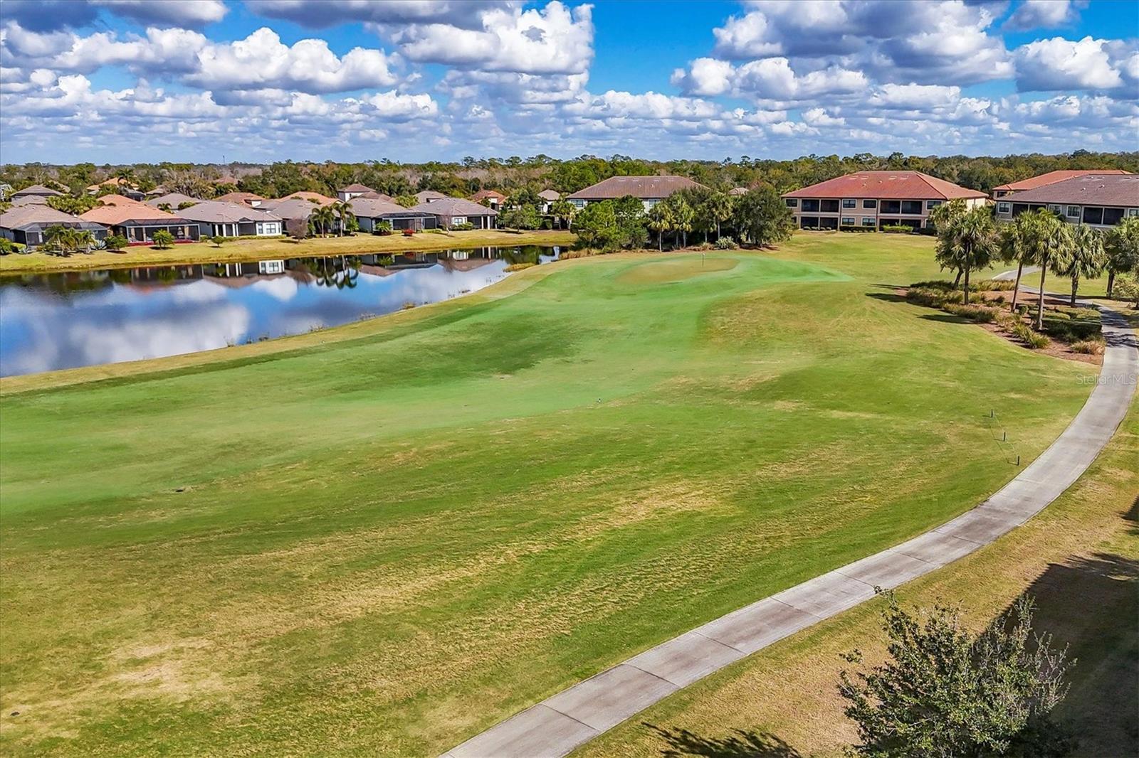 TURNKEY FURNISHED WITH DEEDED GOLF MEMBERSHIP AND STELLAR VIEWS! This tastefully decorated, well-maintained second-floor two-bedroom plus den, two-bath condo with vaulted ceilings and a one-car garage in Esplanade Golf and Country Club of Lakewood Ranch is move-in ready. Just bring your clubs and suitcase! The well-appointed kitchen features tall wood cabinetry, stainless steel appliances, granite countertops, upgraded faucets and fans, and an eating area up front. The spacious open floor plan includes a dining room/great room combination and a den, all with sensational lake and golf course views. Triple sliders lead to your screened-in covered lanai with one of the most magnificent views in the community. The primary suite shares this stunning view and includes a king-sized bed, ensuite bath with dual sinks, granite countertops, wood cabinetry, separate shower stall, private commode, and two large walk-in closets. The guest room is split from the primary for privacy and located near the second full bath with a tub/shower combo and matching finishes. Laundry/utility room has a newer washer and dryer. Esplanade is one of the most amenity-rich established communities in Lakewood Ranch, offering a resort lifestyle that rivals top vacation destinations. The community blends Tuscan-inspired architecture with lush landscaping and sweeping golf vistas. Enjoy world-class golf on a championship course that hosts tournaments throughout the year, with top-tier practice facilities designed for serious play and casual enjoyment alike. This active lifestyle community offers a lagoon-style heated pool and spa with cabanas, several tropical satellite pools (one just steps away), two 24-hour gyms, group fitness classes, personal training, full service spa, lit tennis courts, pickleball, bocce ball, dog parks, Bahama-style poolside tiki bar, and full-service dining at the Barrel House Bistro. The full-time Lifestyle Director coordinates standout events, including live music, wine dinners, trivia nights, and seasonal celebrations. Resident-led groups include weekly golf outings, poker nights, and ladies' luncheons. Check the community calendar, there's always something happening! Lakewood Ranch is an award-winning master-planned community with glorious weather, top-rated schools, and a perfect inland location. Enjoy proximity to world-renowned beaches (Siesta Key, Lido, Longboat, and Anna Maria), boating, fishing, biking, walking trails, UTC Mall, and countless restaurants. Downtown Sarasota and Bradenton offer vibrant dining, rooftop bars, arts, and cultural venues. Multiple international airports within an hour. Welcome to the Gulf Coast lifestyle!