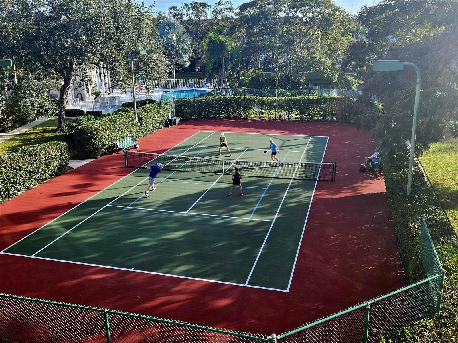 Exterior: Courtyard, Lighting, Outdoor Grill, Outdoor Shower, Sidewalk, Sliding Doors, Sprinkler Metered, Tennis Court(s)