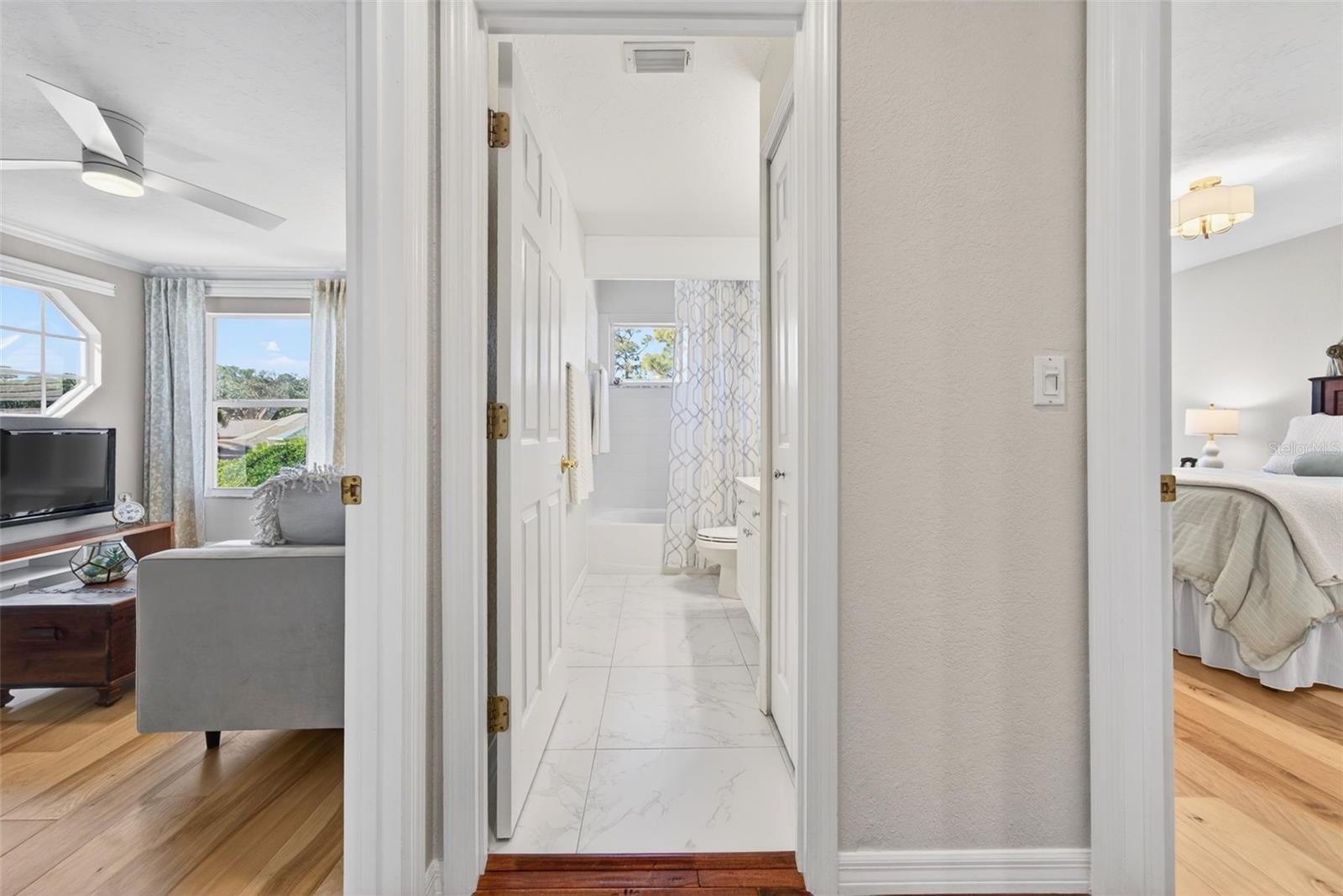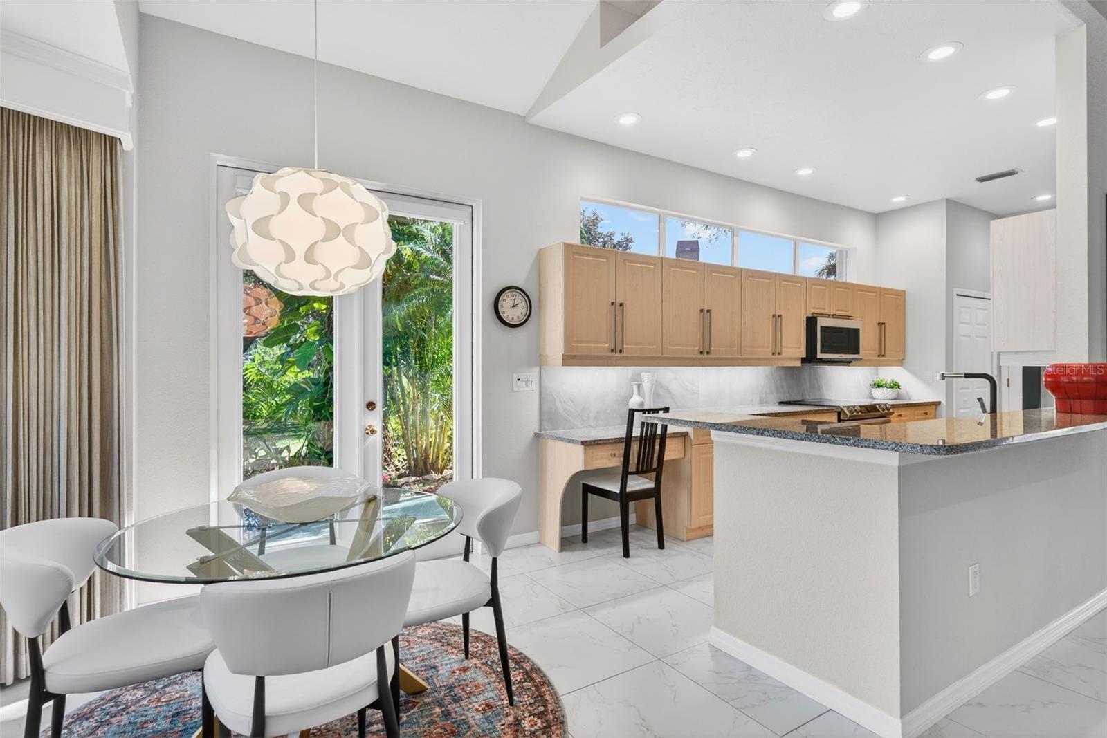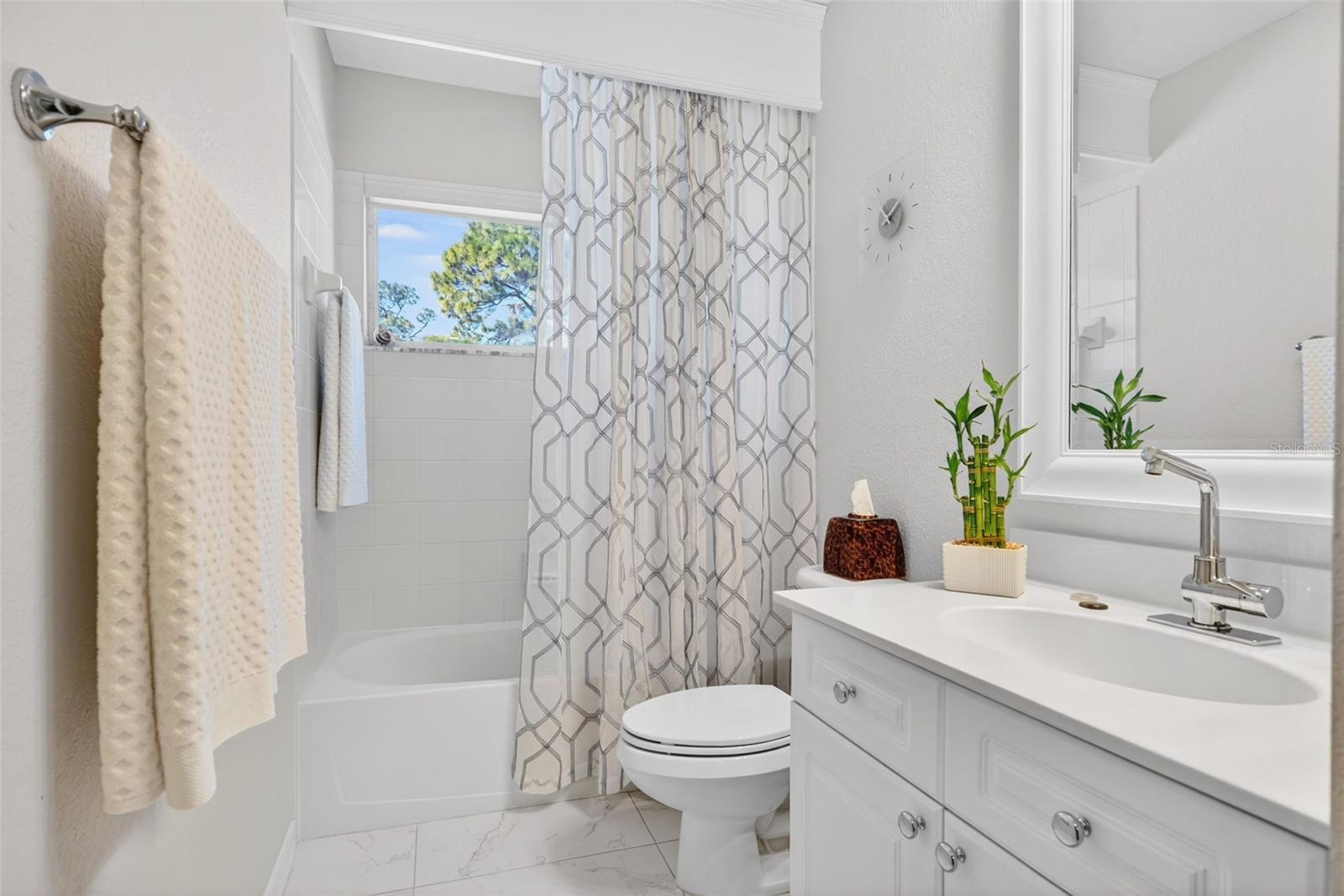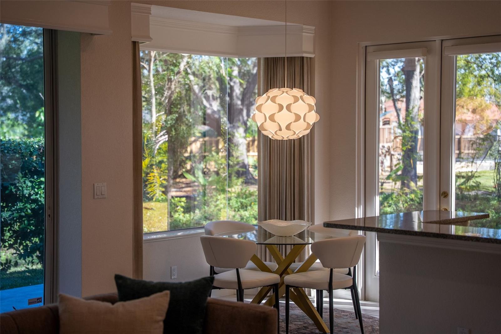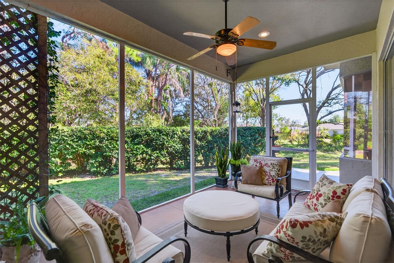 Welcome to this beautifully updated 4-bedroom residence in Palm Aire Country Club, one of the community's newer and more sought-after neighborhoods. Tucked away on a quiet, wooded street of just 20 homes, this professionally curated property offers exceptional privacy and a serene, lush setting, mere steps from the 55-acre Conservatory Park and its scenic walking trails. This impeccably maintained two-story home is fully move-in ready and showcases a renovated kitchen and recently completed flooring throughout along with a roof (2021), and an air-conditioning system (2024). The grand living room is defined by soaring 22-foot ceilings with tons of natural light and a decorative fireplace, while the kitchen's signature aquarium window frames tranquil wooded views. Elegant white tile flows through the main living spaces, complemented by rich hardwood flooring in the bedrooms. The primary suite, privately positioned on the main level, features double walk-in closets, a 10' tray ceiling, direct access to the screened lanai, and a recently renovated spa-inspired ensuite bath with dual vanities, soaking tub, and separate shower. An additional bedroom and half bath, along with a laundry room featuring a sink, complete the first floor. Upstairs, two private bedrooms and a full bath provide ideal accommodations for guests, family or an office space. Low annual HOA fees and no CDD fees. Located within Palm Aire Country Club, where optional membership is available, offering an exceptional lineup of amenities including two 18-hole championship golf courses, a fitness center, junior Olympic-size heated pool, tennis and pickleball courts, and an elegant clubhouse with dining. Ideally situated for both lifestyle and convenience--just minutes from UTC Mall, Whole Foods, Trader Joe's, Sarasota-Bradenton International Airport, and the University Parkway shopping and dining corridor. Top-rated hospitals, Downtown Sarasota, and the renowned beaches of Siesta Key and Lido Key are all in close proximity, with quick access to I-75. This exceptional residence offers a rare blend of privacy, elegance, and effortless Florida living.
