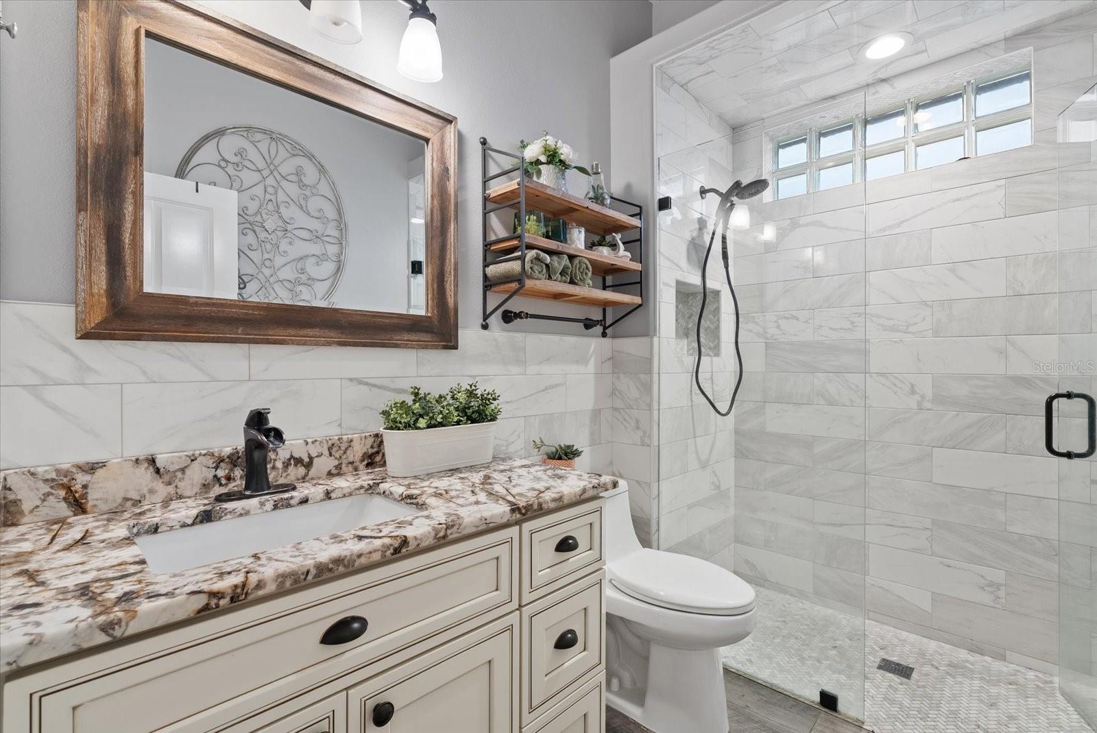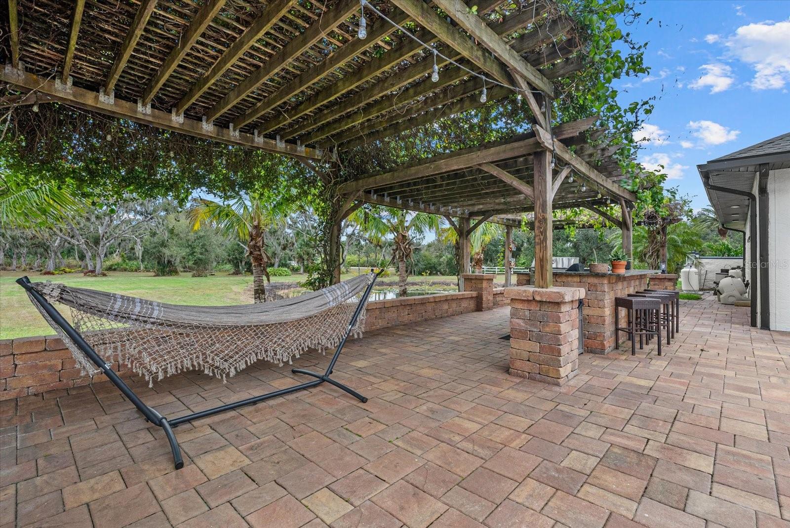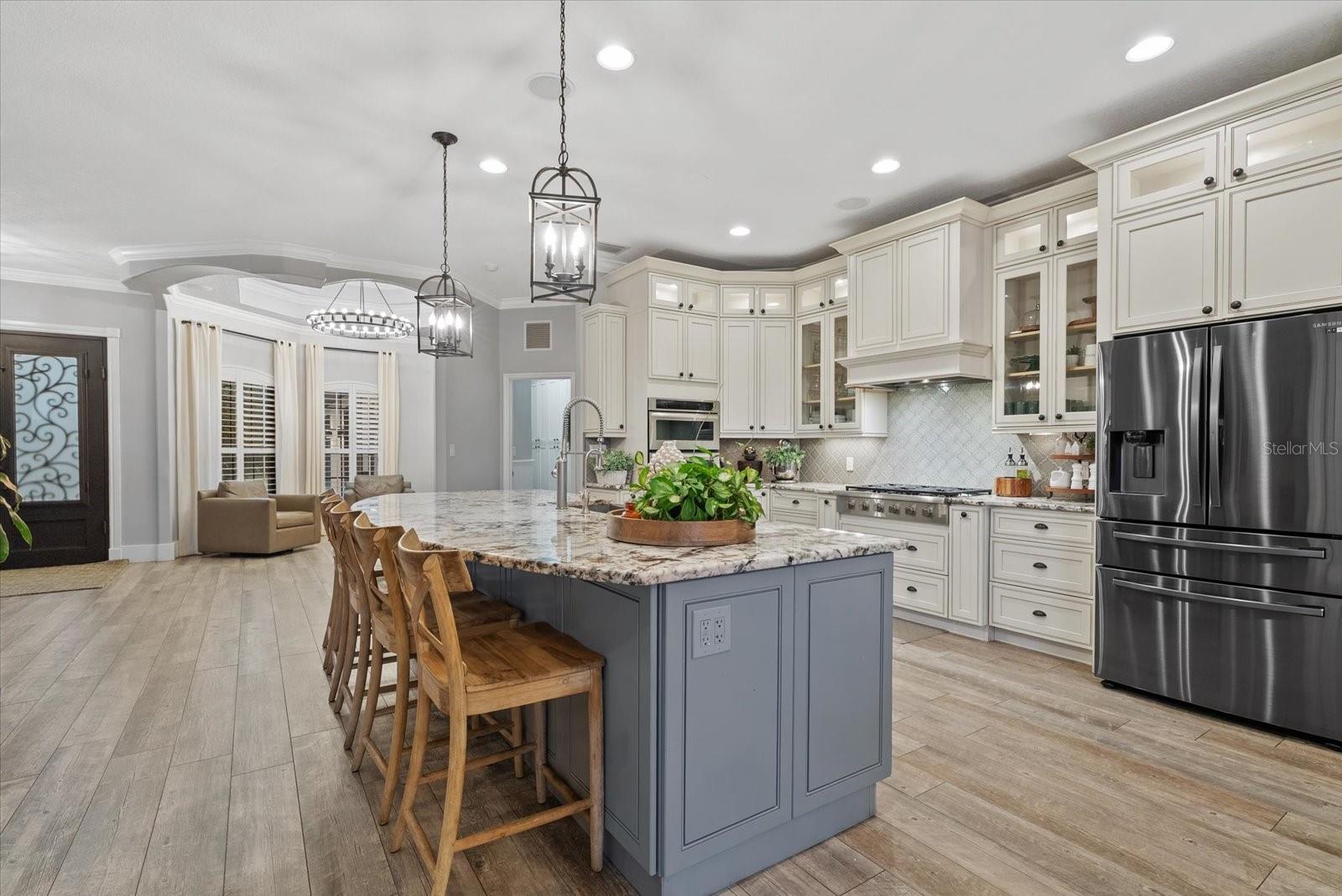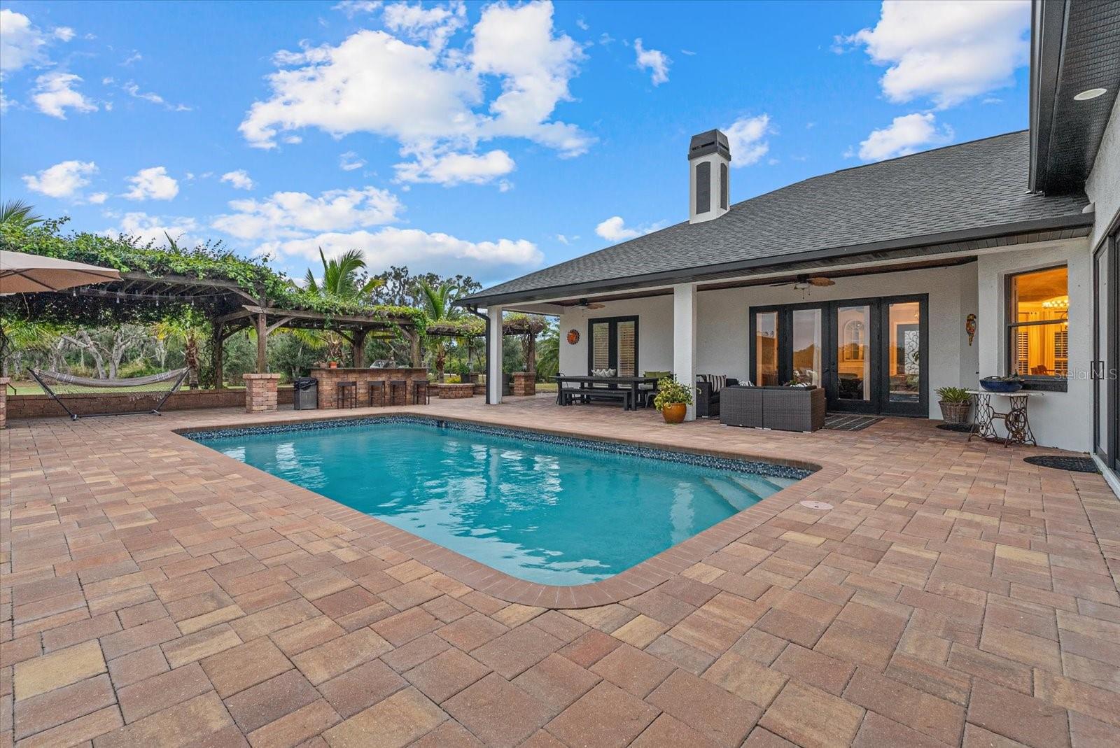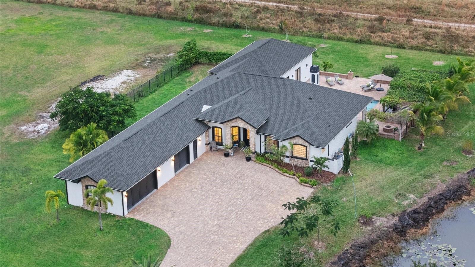 Set on 6.34 private acres within the gated equestrian community of Saddle Oak Estates, this fully renovated estate has been reimagined for modern luxury living while preserving the rare sense of space and tranquility that defines the neighborhood. A long, impressive paver driveway introduces the nearly 4,000-square-foot residence, where estate privacy meets refined design just minutes from Sarasota's everyday conveniences. Inside, wood-look tile flows seamlessly throughout the entire home, anchoring an open-concept layout designed for effortless indoor-outdoor living. The living room makes a striking first impression with a custom stone accent wall, fireplace, and built-ins that create a warm focal point for gathering. At the heart of the home, the chef's kitchen is both elegant and functional, featuring a beautiful cabinetry with lighted upper cabinets, large island, gas range, stainless farmhouse sink, dine-in area, and a butler's pantry that adds exceptional storage and prep space. A sunlit oversized dining room with custom cabinetry and high tray ceilings was designed for large family celebrations and entertaining. Walls of glass open directly to the pool terrace, blurring the line between inside and out. This impressive space is equally suited to function as a great room or media lounge, with the formal dining room positioned at the front of the home -- currently styled as an inviting sitting area. A half bath is conveniently positioned here, and the second primary suite is located on this wing, creating the ideal setup for a private guest retreat or multigenerational living. The home offers two spacious primary suites, each with updated spa-inspired baths that feel like personal retreats. One suite includes a flexible den -- perfect as a home office, gym, nursery or even a 5th bedroom. Two additional bedrooms and a full bath provide comfortable accommodations for family or guests. Thoughtful storage is built into every corner, including a cabinet-lined hallway leading to the oversized laundry room complete with granite counters, cabinetry, and utility sink. Plantation shutters, crown molding, and designer lighting elevate the interiors, adding warmth and sophistication throughout. Step outside to a true backyard oasis. The expansive paver patio surrounds a sparkling pool and flows into a large covered area with a wood-accent ceiling designed for lounging and outdoor dining. A pergola grilling area invites relaxed evenings entertaining under the stars, while a fenced dog run offers space for pets to roam. With flexible living spaces that adapt to your needs, expansive acreage, and the serenity of Saddle Oak Estates, this property delivers the rare combination of estate privacy and modern luxury, just minutes from Sarasota's dining, shopping, and beaches.