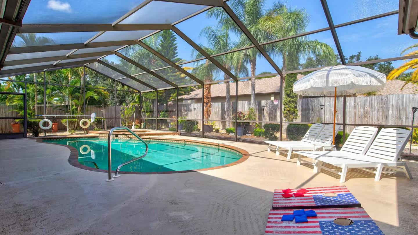 **TURNKEY FURNISHED** Welcome to this absolute must-see home, ideally located in the heart of Northwest Bradenton. Enjoy a prime location within walking distance to Stewart Elementary and King Middle School.This well-appointed residence features four bedrooms, three bathrooms, and a convenient inside laundry room. The spacious primary suite boasts a large walk-in closet with ample storage. Additional highlights include crown molding throughout, a tankless water heater, and a gorgeous wood-burning fireplace.Step outside to beautifully landscaped grounds, a fully fenced backyard, and a stunning screened-in pool and spa, complemented by a large covered patio--perfect for outdoor dining and entertaining.Major updates include a newer roof (2018), Newer AC and the home has been freshly painted inside and out. Conveniently located near Manatee Avenue, offering quick access to Highway 41 and the beaches.Schedule your private showing today--this exceptional home won't last long!
