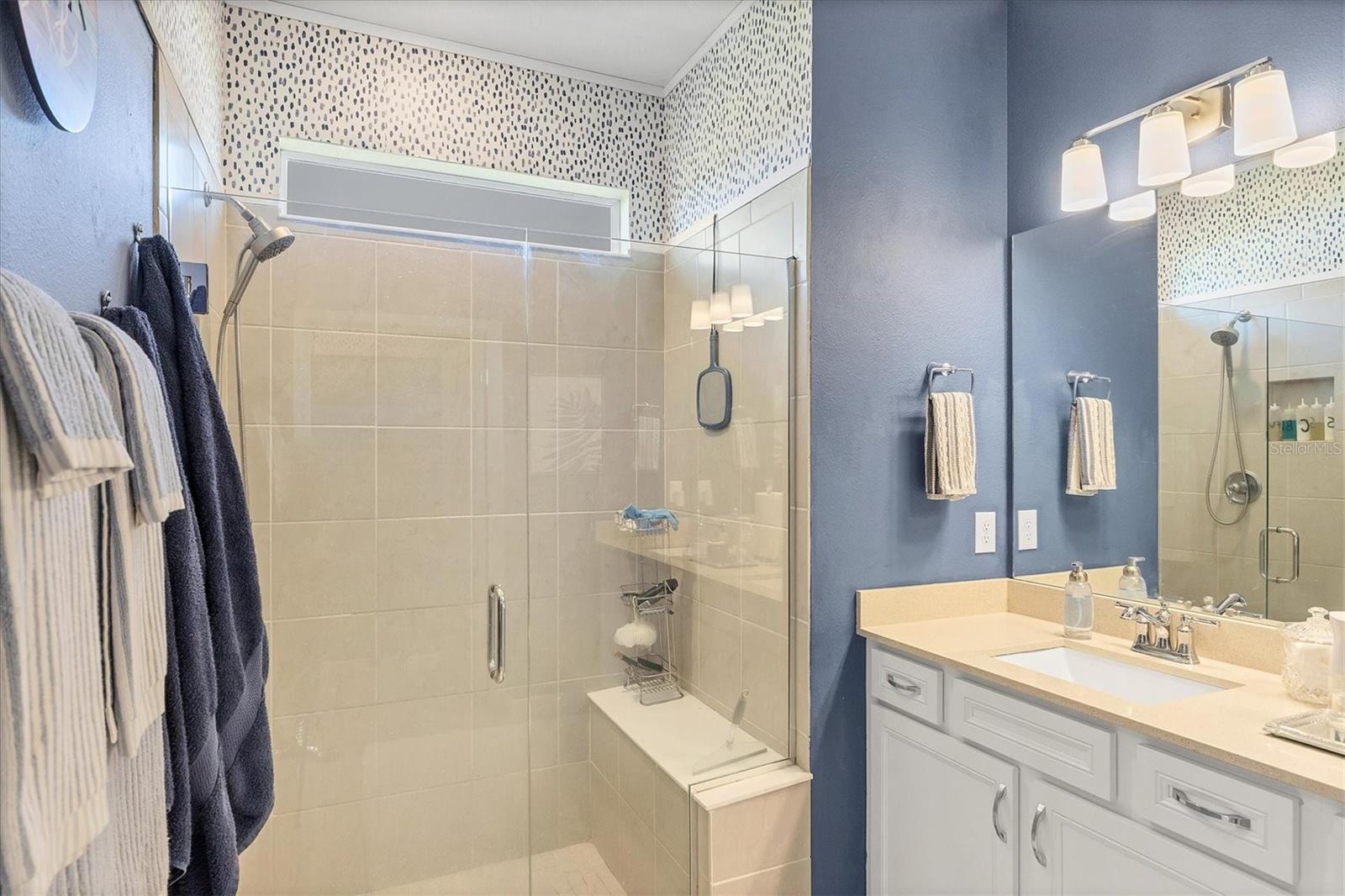 This Hallmark floorplan shows beautifully and much better than a model home. It's a cottage for lovers of blue (not your vibe? Sellers will have the interior painted in a tone of your choosing). There are many smart, personalized touches everywhere. There is only ONE reason the sellers are looking to move WITHIN the community- The Steinway needs more space. The home has been filled with love as the sellers only live here seasonally. There is a 4ft EXTENDED GARAGE, allowing for parking of two cars and a workshop. Inside, two bedrooms, two baths, and the flex space currently used as a music room, plus lots of storage. This home is in pristine condition. Sellers can move quickly as they have found a bigger home. Del Webb Bay View presents a very active lifestyle where you can be as busy as you want to be. Bocce, Pickleball, and Tennis in this very active sports-minded community are both welcoming and competitive. Community gardens, two dog parks, a fitness center, shuffleboard, and an onsite Bar-n-grill. Golf cart friendly. Easy access to Tampa, St Pete and Sarasota airports, world-class shopping and beaches plus some really fun waterside bars. HOA includes tree and grounds maintenance and TV and internet. CDD fee is included in the taxes shown. No Flood zone