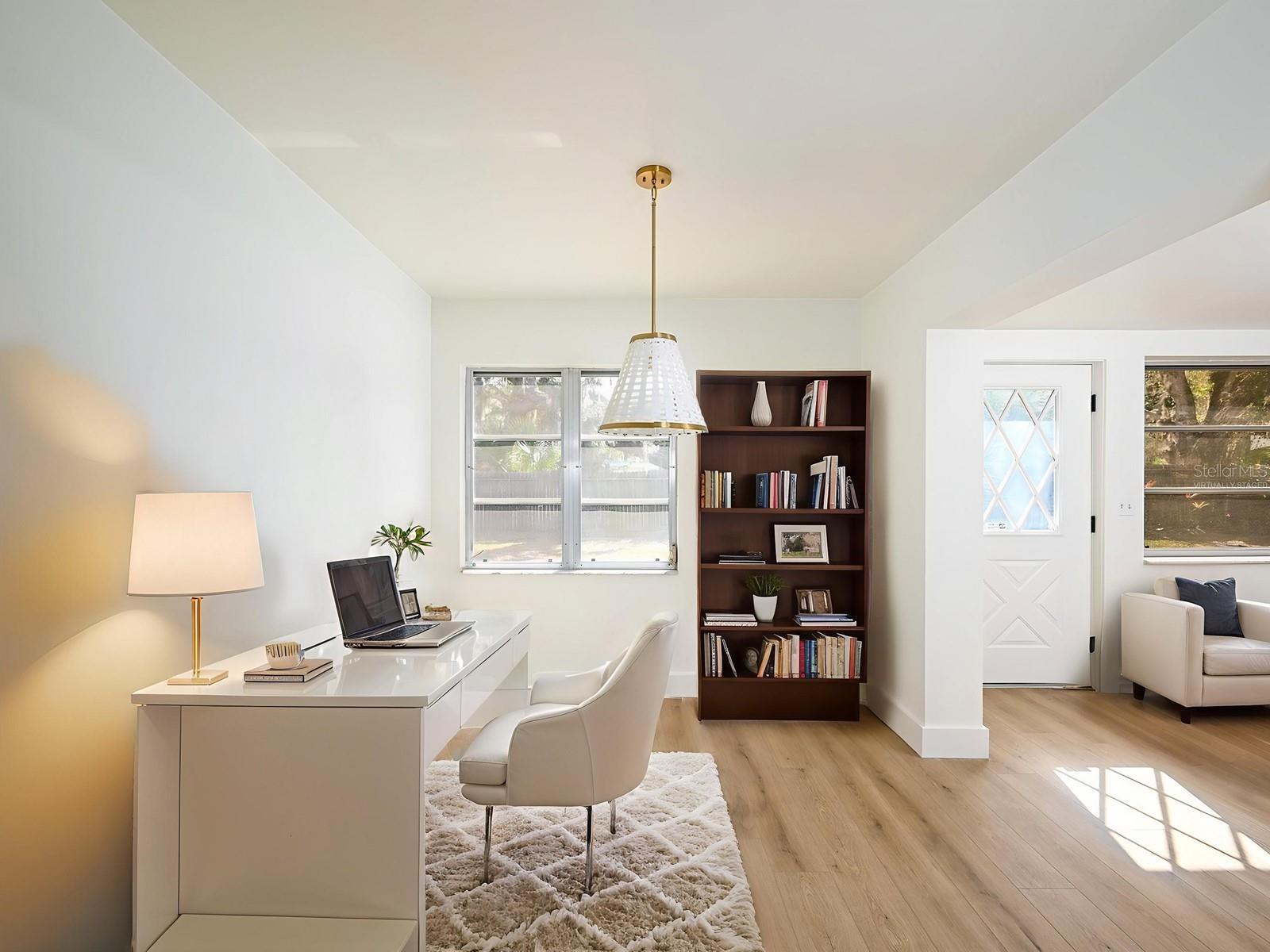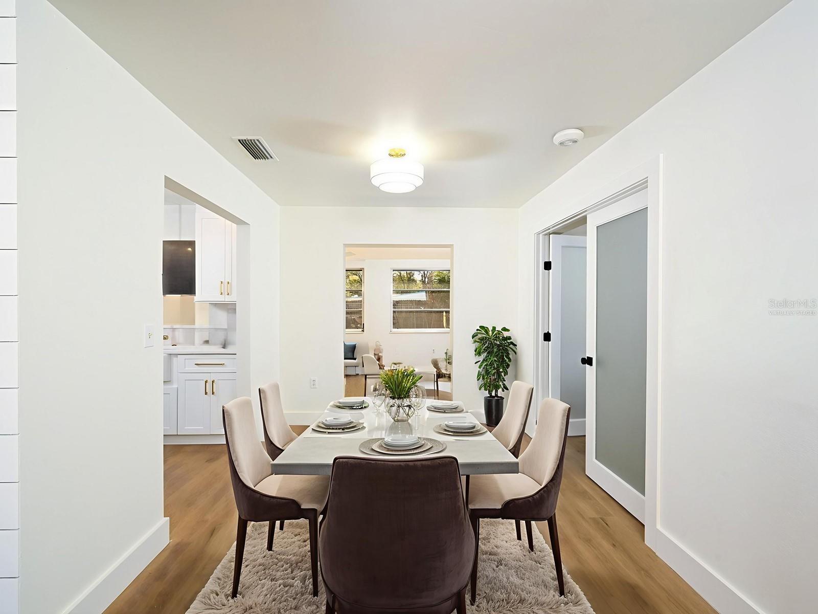One or more photo(s) has been virtually staged. A Remarkably Spacious Home on a Private Oversized Lot - Fully Renovated and Ready for You! You'll be delighted by the impressive remodel, which has expanded the home's footprint, adding square footage and functional rooms. Come and explore this exquisitely renovated eat-in kitchen, featuring stunning quartz countertops. It's an amazing blend of modern functionality and stylish design that you'll absolutely love. With its brand-new white cabinetry, elegant gold hardware, and eye-catching drop lighting, this space is both inviting and refined. It features a pass-through to the family room, allowing light to flow between the spaces. Imagine cooking with quality stainless steel appliances, a stunning tiled backsplash, and a built-in pantry! Plus, there's a dining nook, perfect for enjoying casual meals or your morning coffee. This lovely home features a wonderful primary en suite with an updated personal bath, designed to evoke a retreat-like atmosphere. The bath boasts a new tiled shower surround with custom insets, elegant gold fixtures, and a new glass shower door. Additionally, you'll find two closets and a walk-in, filled with natural light and built-in storage. You'll also find a luxuriously styled guest bath and bedroom, alongside a generous third bedroom that can easily double as a fantastic bonus/game room. This bedroom is conveniently attached to a utility room that includes a laundry area and a flexible space for crafts, exercise, or any purpose you choose. This well-appointed space also has cabinetry, storage, and a sink. Additionally, there is a cozy family room, a den/study perfect for a home office, a formal living room, and a designated dining room for entertaining. The beautifully updated home features an array of modern upgrades. Discover new luxury vinyl plank flooring that flows seamlessly throughout the entire space, providing both style and durability. The smooth ceilings, free of popcorn texture, create an airy ambiance, further enhanced by fresh interior paint that brightens every room. Elegant quartz surfaces add a touch of sophistication to the design. Additionally, new interior doors, including pocket and double doors, doorknobs, and hinges, contribute to a polished finish, complemented by wide baseboards that subtly enhance the overall look. As a bonus, the plumbing has been refurbished both underground and above, and a new water heater has been installed. Nestled on a quiet street, this home boasts curb appeal, a double-car carport, newly updated landscaping, fresh exterior paint, a tile roof, and a fenced backyard. This is a non-deed-restricted community that allows you to bring your boat or RV without any hassle, and there is plenty of room for a pool as well. It's perfect for those seeking a move-in-ready opportunity, and its prime location adds to its charm. Ideally situated near championship golf courses and recreational areas such as Longwood Park and Nathan Benderson Park, residents enjoy proximity to the University Town Center mall and diverse shopping and dining options. The exciting new Mote Marine Aquarium further enhances the area, offering a wide range of entertainment and recreational options. With easy access to I-75 and a short drive to the international airport, Downtown Sarasota, and beautiful beaches, this neighborhood promises an exceptional lifestyle marked by social opportunities and unmatched convenience.