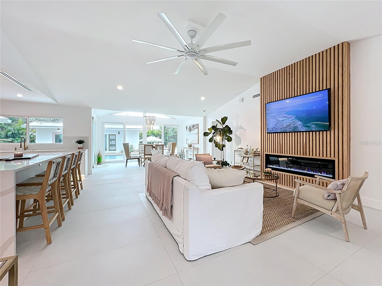 Fireplace: Circulating, Electric, Living Room, Non Wood Burning