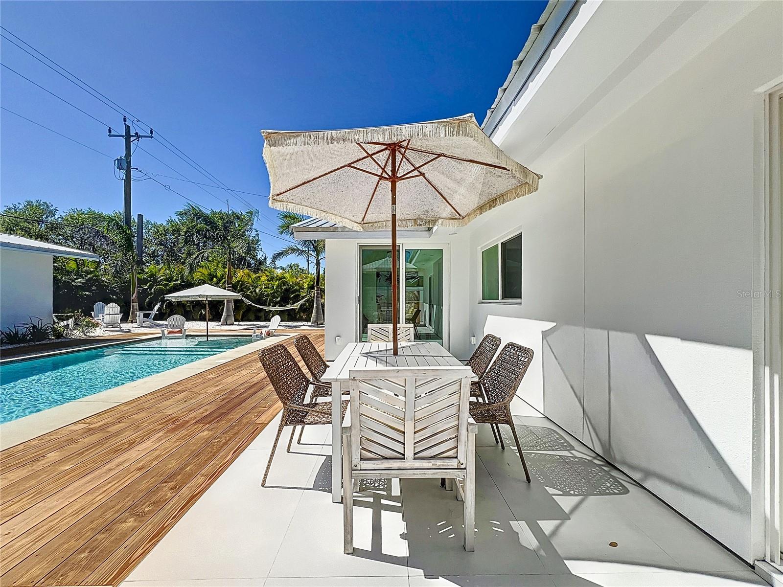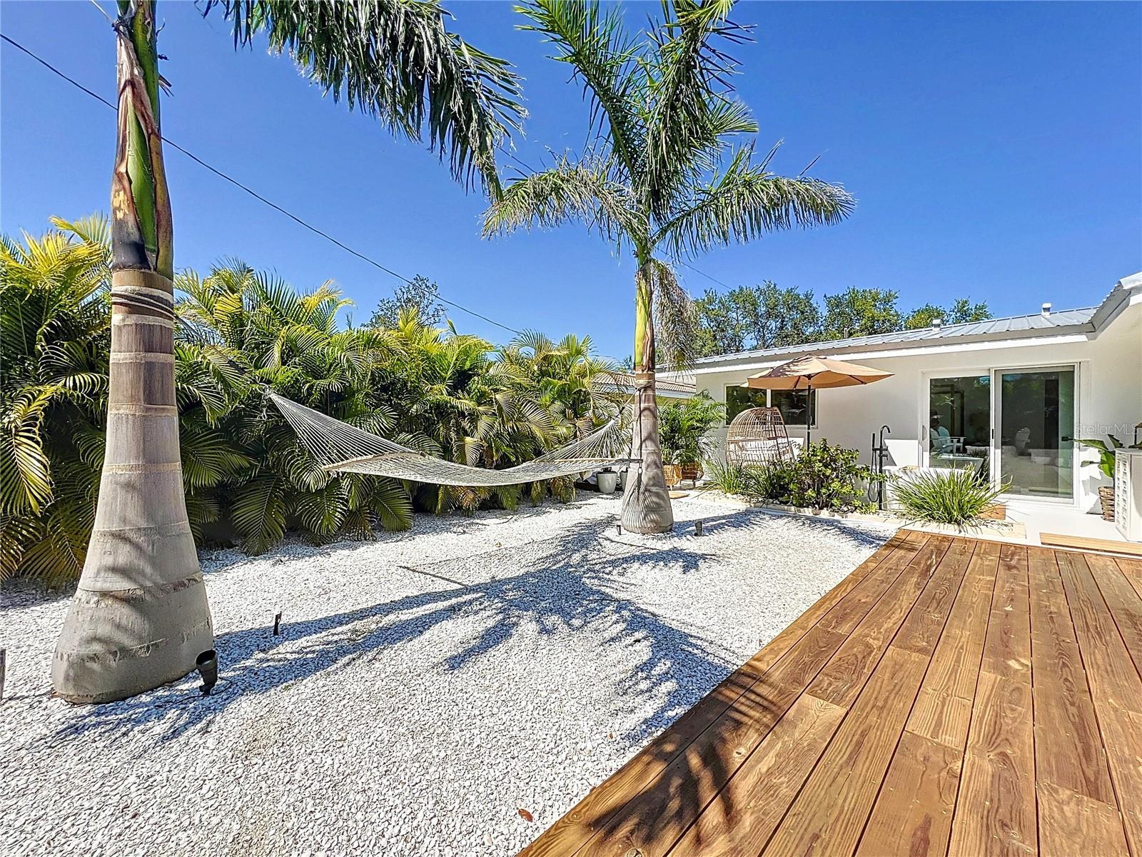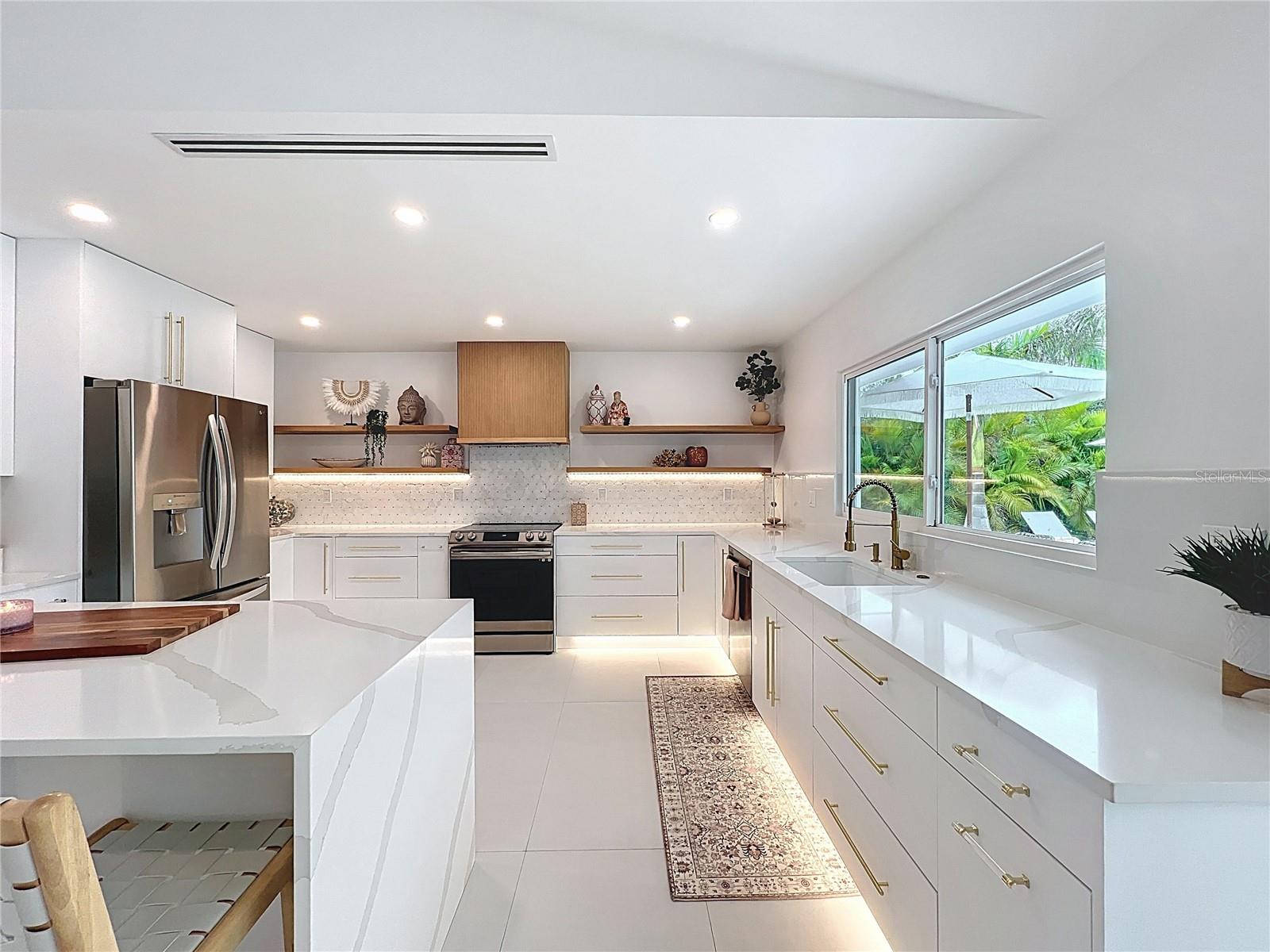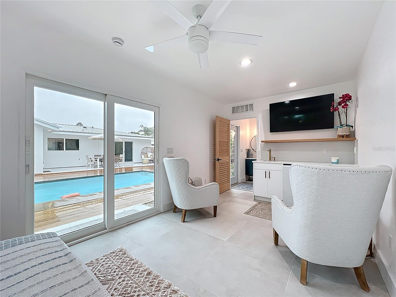 Guest House Home blends modern design with refined luxury, perfectly capturing Sarasota's vibrant work-and-play lifestyle. Located on a desirable South Gate street just minutes from downtown Sarasota and world-famous, top-ranked Siesta Beach, this 3-bedroom, 3.5-bath Modern Main house and Guest house with Studio bedroom , living combo with Full bath is rich in artistic detail and upscale finishes. This Fully Rebuilt home welcomes you with an open-concept floor plan featuring soaring Vaulted ceilings and sleek porcelain tile floors. Walls of glass frame views of the Pool and lushly landscaped backyard, creating seamless indoor-outdoor living. The private outdoor oasis includes a heated pool with LED color lighting and a salt chlorine generator, expansive entertaining space. The tropical backyard is finished with low-maintenance Fully Landscaped with Mature Tropical Plantings, irrigation and lighting. The gourmet kitchen is a showstopper, featuring stainless steel appliances, a dramatic waterfall quartz island, and contemporary custom cabinetry--perfect for entertaining or everyday living. The primary retreat offers a spacious walk-in custom closet and a spa-like ensuite bath. Step out through sliding glass doors onto your private outdoor Soaking tub overlooking the pool and enjoy the beautifully illuminated night scape. Recent Renovations down to the studs with additions and complete home replacement of impact-rated Window and sliders, New Plumbing fixtures and lines,Tankless Water heaters, All new electrical with panel, New framing, Dry wall , Split air systems, Stucco, Salt water pool& Heater , New Tropical Zero maintenance Landscaping, irrigation & Lighting, completed in 2024. Centrally located near A-rated schools, shopping, downtown Sarasota, and Siesta Key Beach, this exceptional home truly has it all. No Hurricane Damage and not in flood Zone. 4 Point inspection done pre sale for pice of mind!Don't miss this opportunity--schedule your private showing today.