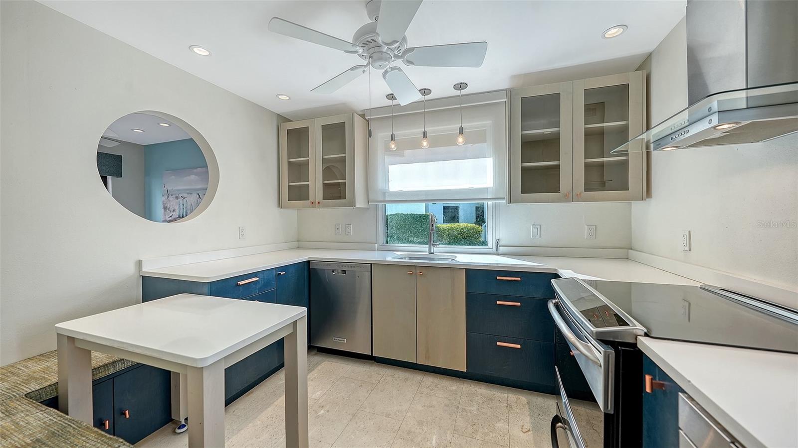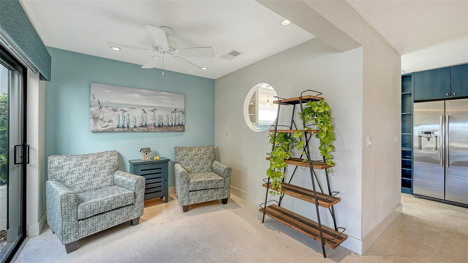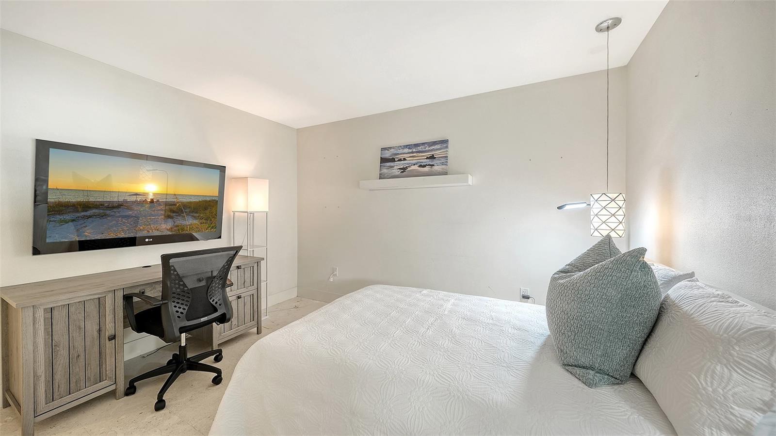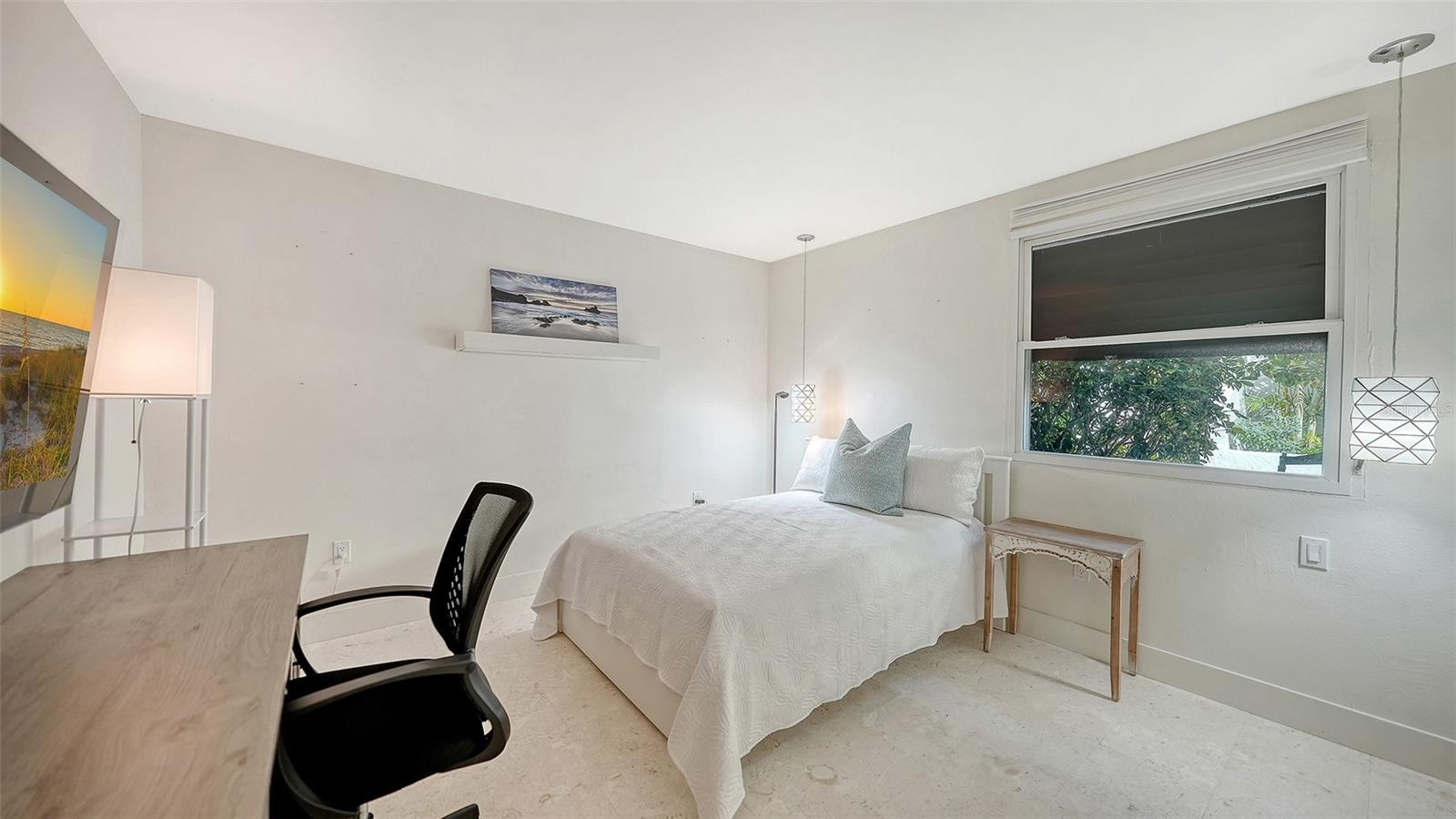 This beautifully reimagined first floor end-unit condominium in The Meadows offers serene lake and golf course views and a thoughtfully designed layout that lives like a private retreat. With two bedrooms, a den, and a carport, the residence is filled with natural light and enhanced by multiple outdoor spaces, including a screened lanai overlooking open vistas, a charming courtyard ideal for gardening or pets, and a paver patio accessible from the primary suite. The interior has been fully renovated with a clean, modern aesthetic and exceptional attention to detail. Cool, smooth crushed-shell flooring runs throughout, complemented by custom cabinetry, white quartz countertops, under-mount sinks with touch-activated faucets, and a suite of stainless steel appliances, including an induction/convection range. Subtle luxury touches such as re-surfaced smooth ceiling texture, recessed lighting, electronic shades, and dimmer switches add both comfort and convenience. Both bathrooms are finished to spa standards, featuring elegant European-style design, a rain shower, and refined fixtures. The primary bedroom is bright and welcoming, with a generously sized walk-in closet. The kitchen is supported by an oversized walk-in pantry that also houses a stackable front-load washer and dryer and the water heater. Major system updates include a full repipe in 2014, water heater in 2014, air conditioning in 2020, and new community roofs completed in 2022. The Heronmere condo community has its own pool that is included in the condo fee. Residents can also enjoy access to The Meadows Golf Course, the newly enhanced Fitness and Wellness Center, personal training, Junior Olympic lap pool, tennis, and pickleball with flexible membership options and a la carte pricing. Located just steps from The Meadows Village Center with shopping and dining, this home is part of a vibrant resort-style community known for mature Oaks and lush greenery, a picturesque setting, and miles of walking trails, yet only minutes from downtown, UTC Mall, Benderson Park, and year-round outdoor activities. Furnishings negotiable.