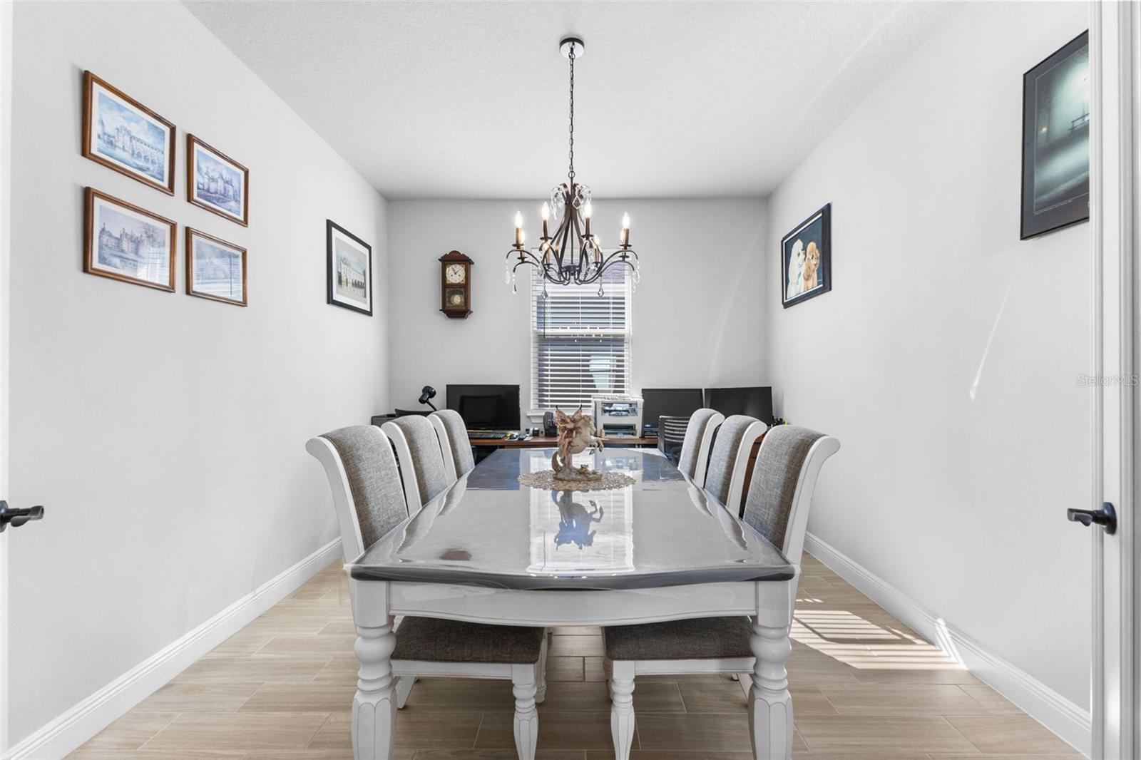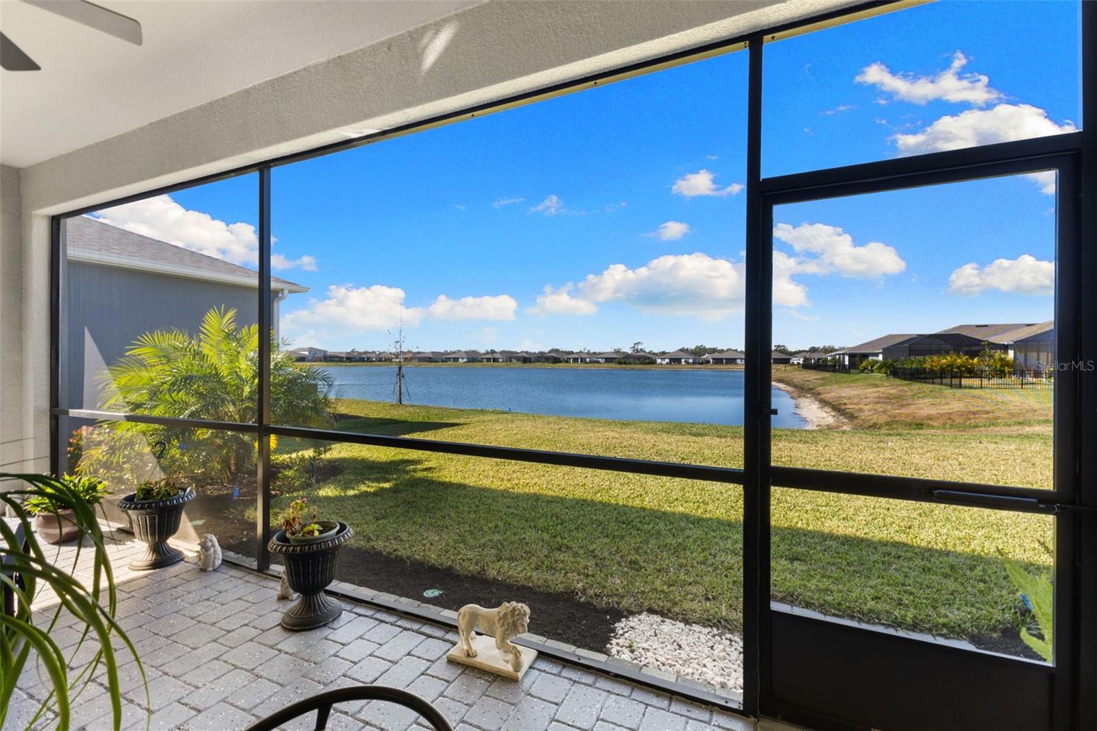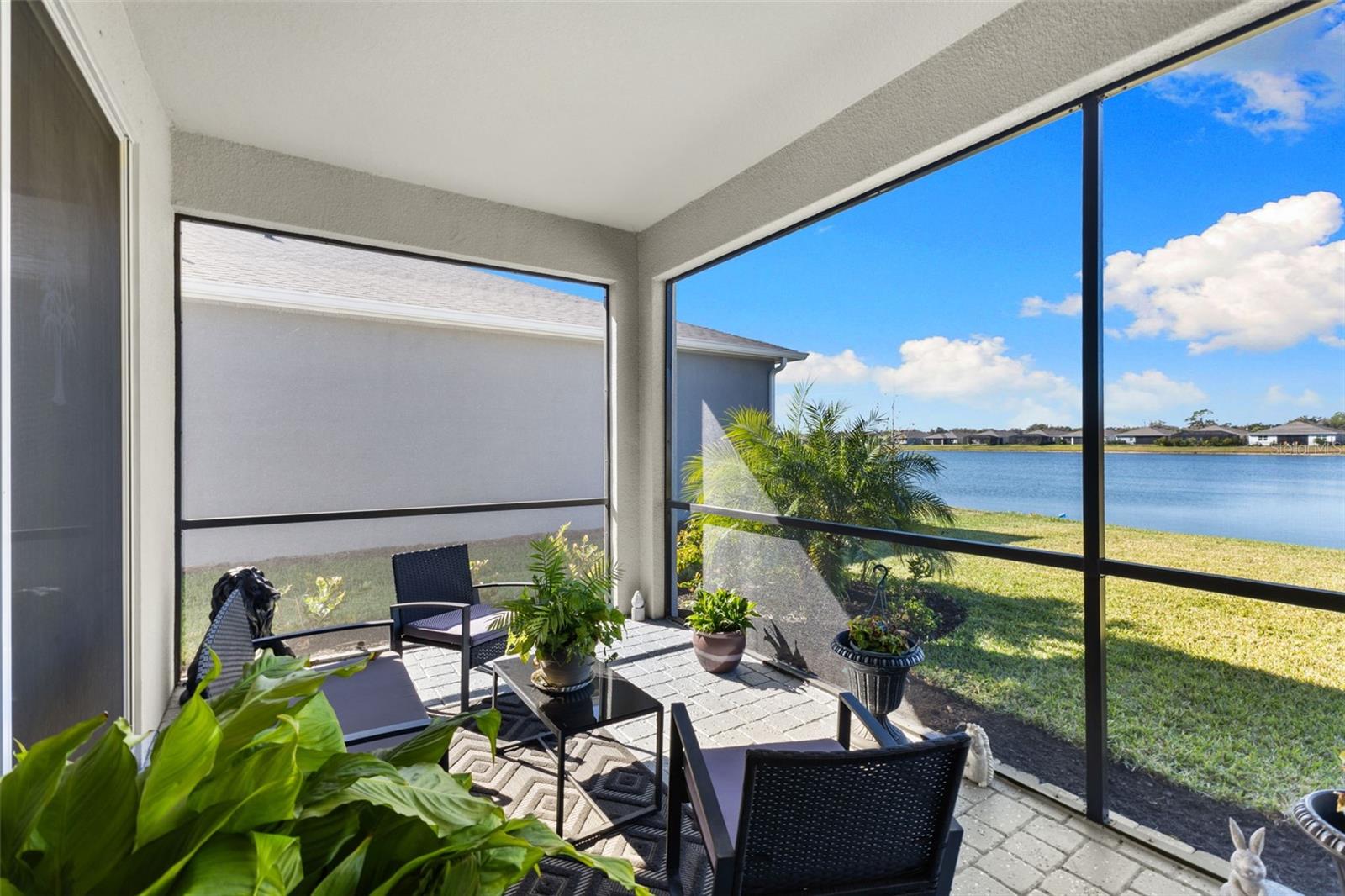 Move-in ready and only one year old, this beautifully maintained home is located in the gated community of Windwater in Parrish, perfectly positioned between Lakewood Ranch and the rapidly growing Parrish area with new shopping, dining, and everyday conveniences close by. Offering 2,005 square feet of thoughtfully designed living space, the home features 3 bedrooms, 3 bathrooms, a dedicated study, and a 2-car garage. The open floor plan is enhanced by wood-look tile throughout the main living areas and flex space, creating a cohesive and inviting feel. The kitchen features 42" painted cabinetry, quartz countertops, ample storage, and flows seamlessly into the main living and dining areas, ideal for both everyday living and entertaining.The primary suite provides a private retreat with dual sinks and a glass-enclosed shower, while the additional bedrooms offer comfort and privacy for guests or family. Since purchase, the owner has thoughtfully enhanced the home with numerous upgrades including ceiling fans in every room, upgraded lighting throughout with pendant lights in the kitchen and chandeliers, custom blinds, and additional storage solutions. The laundry room has been upgraded with a utility sink, while the garage features overhead storage and an epoxy-coated floor. Bathroom enhancements include upgraded lighting, added storage, tile accents, motion-activated switches, and a jetted tub in the guest bath.Enjoy outdoor living on the large covered and screened lanai overlooking a peaceful pond. With gated access, a prime location, no CDD fees, and modern finishes throughout, this home offers the benefits of new construction without the wait.