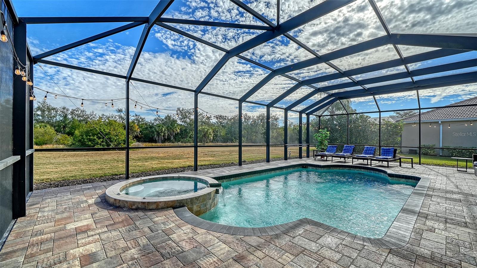 Experience River Strand Country Club, a premier Arthur Hills-designed championship golf community where luxury and resort-style amenities combine to set the tone for inspired everyday living. Where can you find FULL GOLF MEMBERSHIP with fees as reasonable as these? Located on a quiet cul-de-sac, this expansive two-story, 5-bedroom, 3 full and 1 half bath home offers an impressive 2,603 sqft of updated living space, delivering exceptional value at this price point. Recent upgrades include $72,000 in hurricane-impact windows and sliders, renovated kitchen, new exterior paint, new lanai pavers and stylish luxury vinyl flooring throughout the first floor. Soaring 20-foot ceilings and abundant natural light create an open, airy feel upon entry. The dining area is ideal for gatherings and holidays, while the adjacent flexible space easily serves as a home office, playroom, or formal living area--perfect for today's lifestyles. At the heart of the home is the 2024 renovated GOURMET KITCHEN, featuring crisp white cabinetry, Quartz countertops, a large center island, new appliances, pot filler, designer blue tile backsplash, and abundant storage with full sized pantry. The kitchen flows seamlessly into the living area, creating an inviting space for everyday living and entertaining--all with beautiful views of the quite large heated pool and spa. Step onto the spacious covered lanai and enjoy peaceful preserve views and spectacular sunrises, with frequent wildlife sightings including deer, owls, and native birds--offering a rare sense of privacy and serenity. It is truly magical and sets this home apart from the others. The first floor includes a private guest bedroom, full bath, half bath, and a separate laundry room--ideal for visitors or multigenerational living. Upstairs, the primary suite is a true retreat with a generous walk-in closet and en suite bath, with separate shower and soaking tub. Three additional bedrooms share a full bath. Plush carpeting upstairs adds comfort, and the 2-car garage with epoxy flooring completes the home. Grand Preserve residents enjoy an unmatched lifestyle with a 27-hole championship golf course, tennis and pickleball courts, fitness center and classes, resort-style pools, and a vibrant social calendar. Casual dining and cocktails are available at the Shank Shack and Tiki Bar, with an $8.5 million clubhouse restaurant renovation underway--further elevating the community experience. With modern upgrades, generous square footage, tranquil preserve views, and world-class amenities, this move-in-ready home offers a rare opportunity to enjoy the best of River Strand living--where every day feels like a vacation.