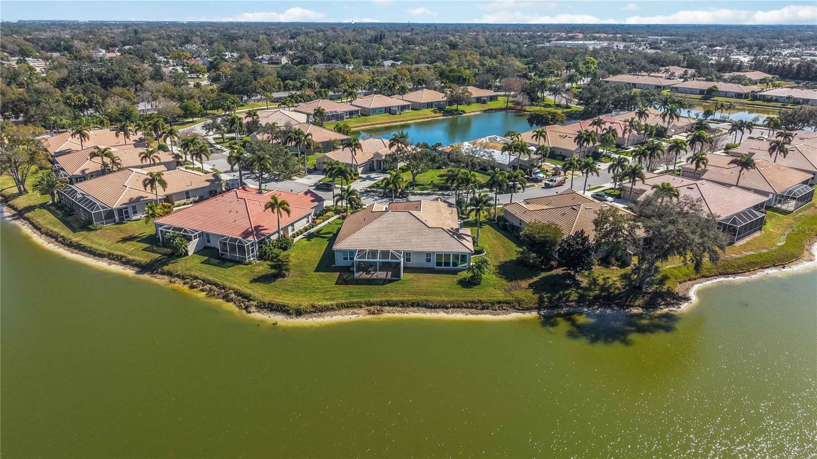 One or more photo(s) has been virtually staged. Welcome home to comfort, confidence, and truly worry-free living in this 2 Bedroom plus Den, 2 Bathroom, 2 Car Garage paired Villa. This thoughtfully upgraded home has been meticulously maintained with long-term peace of mind in mind, offering the perfect blend of safety, efficiency, and everyday ease. Major improvements include a NEW ROOF (2025), wind mitigation (2025), HURRICANE-IMPACT WINDOWS, REINFORCED GARAGE DOOR, and a WHOLE-HOUSE GENERATOR--providing security and protection in every season. The Florida room has air conditioning and heat, sunshades, ceiling fan and hurricane doors creating a relaxing, year-round retreat ideal for morning coffee or evening unwinding while enjoying the spectacular lake view. The front lanai is screen enclosed with hurricane shutter.Inside, warm oak flooring flows through the great room and den spaces, complemented by plantation shutters and abundant natural light. The den/office has a built-in desk and storage - perfect for hobbies or a home office.The kitchen is designed for convenience with upgraded cabinetry, pull-out drawers, under-cabinet lighting, and custom-crafted corner cabinets, includes all appliances--making daily living effortless and organized.Home is a split bedroom design offering a spacious en-suite primary bedroom with views of the lake, ceiling fan, carpeting and 2 walk-in closets. Guest bedroom has ceiling fan, carpeting and regular closet. Both bathrooms with accessibility and comfort were clearly prioritized, with beautifully upgraded walk-in showers, grab bars, and comfort-height toilets thoughtfully installed to support ease of movement now and in the future. There are skylights in both bathrooms and the laundry room. Energy efficiency upgrades include additional attic insulation (2024), HEPA and allergen filtration, and LED lighting throughout, helping keep utility costs low and indoor air quality high. Additional highlights include custom closet systems, professional garage storage, motion-activated exterior lighting, landscaped curbing, and transferable home service and A/C maintenance contracts already in place.This is a move-in-ready home designed to simplify life, reduce maintenance concerns, and allow you to fully enjoy the Florida lifestyle.Lakeridge falls is a 24-hour guard gated, 55+ community which includes a state-of-the-art clubhouse with a community heated/cooled lap pool, hot tub, fitness center, grand salon, bocci ball court and card room. Active social calendar with many events including water aerobics, yoga, art league, mahjong, etc. Miles of walking trails, lush landscaping, and pet-friendly sidewalks. HOA covers landscaping maintenance, lakes and sidewalks for stress-free living. The is a one-time $1500 Capital Contribution payable by the buyer at closing. Perfect location close to shopping, Publix, Panera, Starbucks, Detweillers, dining, medical facilities, and the UTC Mall. Easy access to downtown Sarasota, Lido Key, Siesta Key, and Anna Maria Island. Schedule an appointment to make this your perfect Florida retreat!