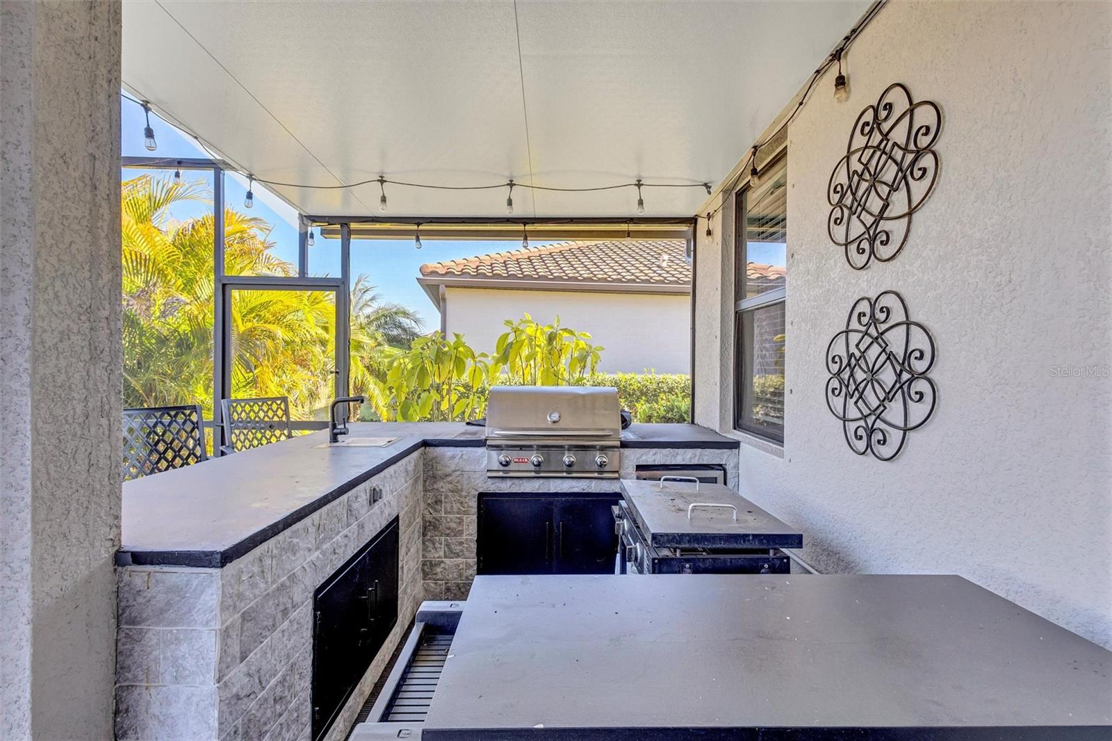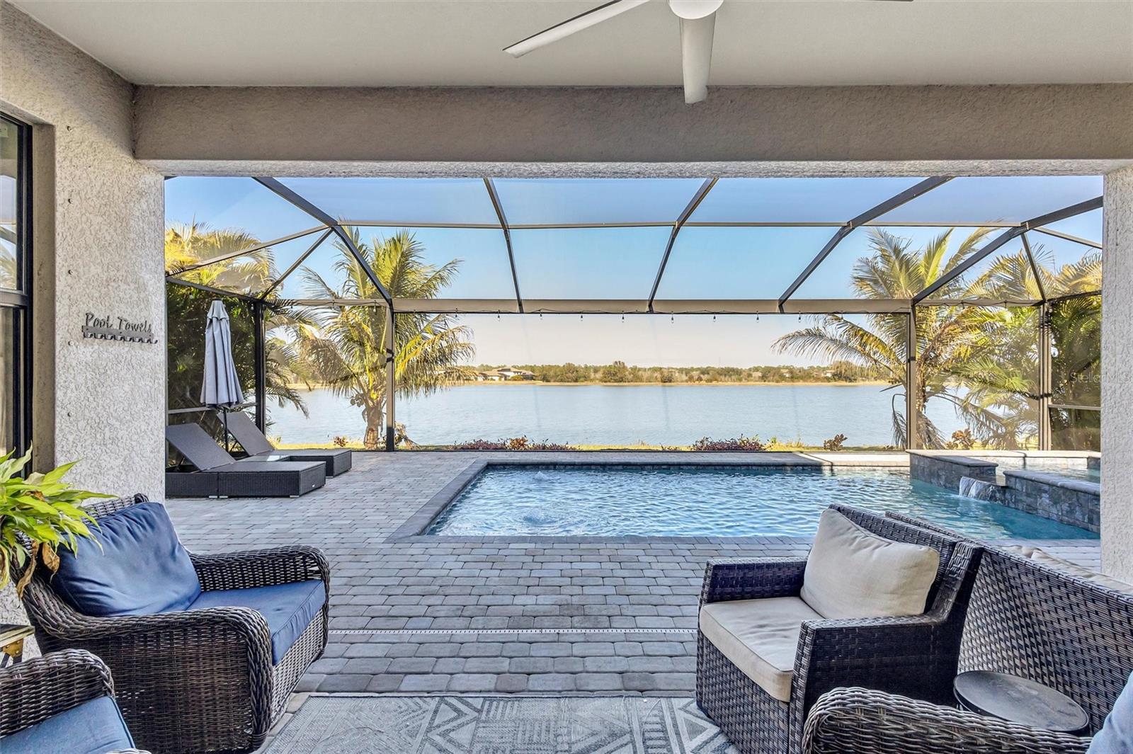 Welcome to an exceptional opportunity in Polo Run one of Lakewood Ranch's most sought-after gated, Solar-Powered, maintenance-free single-family home communities.This extensively upgraded (Main house) 5-bedroom, 3.5-bath pool home offers a rare blend of luxury, flexibility, and long-term value. Designed with modern living in mind, the home features solar power, and a thoughtfully designed floor plan that adapts beautifully to today's lifestyles.A standout feature is the Fully Attached 1-bedroom, 1-bath Apartment, complete with its own kitchen, living area, and private garage--perfect for multigenerational living, long-term guests, or added flexibility for work or extended family.Indoors, the upgrades are both stylish and intentional. The main kitchen showcases a custom backsplash, vent hood, microwave cabinet insert, and a charming custom kitchen nook with chalkboard table. Living spaces are elevated with a shiplap fireplace, board-and-batten entryway mud area, and plantation shutters throughout the den, kitchen, dining room, primary bedroom, primary bath, and stairway window. Flooring upgrades include laminate in the downstairs in-law bedroom, upstairs den, and primary bedroom, along with hardwood stairs.The primary suite offers its own cozy fireplace, while the upstairs bonus room featuring a striking accent wall with paneling and sconces, complemented by additional wood paneling accents in an upstairs bedroom. Practical upgrades include a mechanical interlock for generator hookup and overhead garage storage.The showstopper...Step outside to a private backyard retreat featuring a heated saltwater pool and spa, infinity screen enclosure, and an outdoor kitchen with natural gas hookup--ideal for entertaining or unwinding year-round. Located in Polo Run, residents enjoy resort-style amenities and a prime Lakewood Ranch location close to shopping, dining, medical facilities, and everyday conveniences. This home delivers the perfect balance of comfort, efficiency, and upscale Florida living--inside and out.