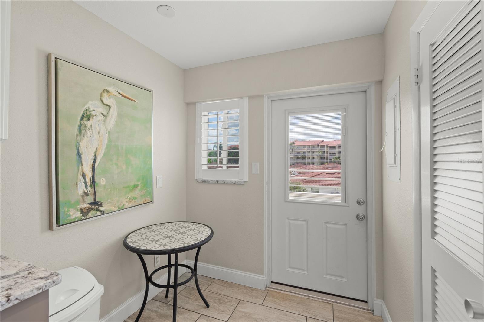Exterior: Courtyard, Lighting, Outdoor Grill, Private Mailbox, Sidewalk, Sliding Doors