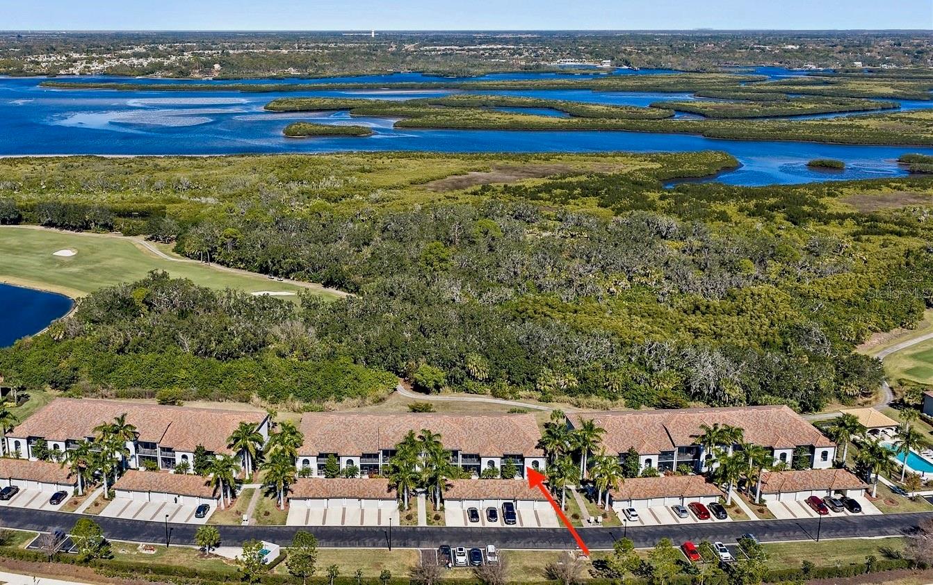 GOLF DEEDED, TOP-FLOOR END-UNIT ABBEY model, offered COMPLETELY FURNISHED for effortless ownership and enhanced privacy. Just bring your personal items and enjoy! The property is designed for buyers seeking elegance, convenience, and investment flexibility, this light-filled residence delivers a low-maintenance lifestyle within River Strand Golf & Country Club. Positioned as a PRIVATE END UNIT with no direct rear neighbors, this residence enjoys added tranquility and abundant natural light. TWO private SCREENED LANAI's that create an inviting space's for morning coffee, afternoon relaxation, and evening entertaining. The back lanai has a peaceful view of the golf cart pathway, and a nature preserve. Inside, the thoughtfully designed interior showcases Crown Molding, Granite countertops, Solid Wood Cabinetry, stainless steel appliances, that enhances both flow and visual appeal. The spacious Owner's Suite offers DUAL WALK_IN Closets and a spa-inspired bath featuring double vanities, a soaking tub, and separate walk-in shower. A separate DEN/OFFICE/STUDY with French Doors and a CUSTOM MURPHY BED provides elegant flexibility for guest accommodations or a home office space. Additional Highlights include Elegant Lighting, Ceiling Fans throughout, a Kitchen Nook area perfect for Coffee Bar and Bar Top for additional seating, repainted interior in 2023, a separate dedicated Laundry Room with a Full-Size Washer and Dryer, and a detached garage. You'll enjoy access to 27-hole championship course designed by Arthur Hills, 8 community pools, a fitness center, hot tub, meeting room with kitchen, plus tennis, pickleball and basketball courts. You'll have full access to all resort amenities - including the main clubhouse, on-site restaurant, Terrace bar & grill, resistance pool. The main clubhouse and Terrance bar and grill are getting a new modem update. Terrance bar & grill is scheduled to be completed in February, and the Clubhouse in March. HOA includes lawn & sprinkler maintenance, Spectrum cable & high-speed internet, water, sewer, and trash for added convenience and savings. Memberships are transferable to seasonal renters, positioning this property as both a refined personal retreat and a highly desirable income-producing opportunity Located near the new Bradenton Market Place with Costco, Target, HomeGoods, ALDI, restaurants, and more! Easy access to I-75, Lakewood Ranch, Sarasota, Tampa, St. Pete, and Gulf Coast beaches. This TURNKEY END-UNIT offers true Lock-and-Leave convenience with exceptional lifestyle and investment appeal. It's an outstanding opportunity to secure privacy, luxury, and long-term value in one of Manatee County's most sought-after golf gated communities.