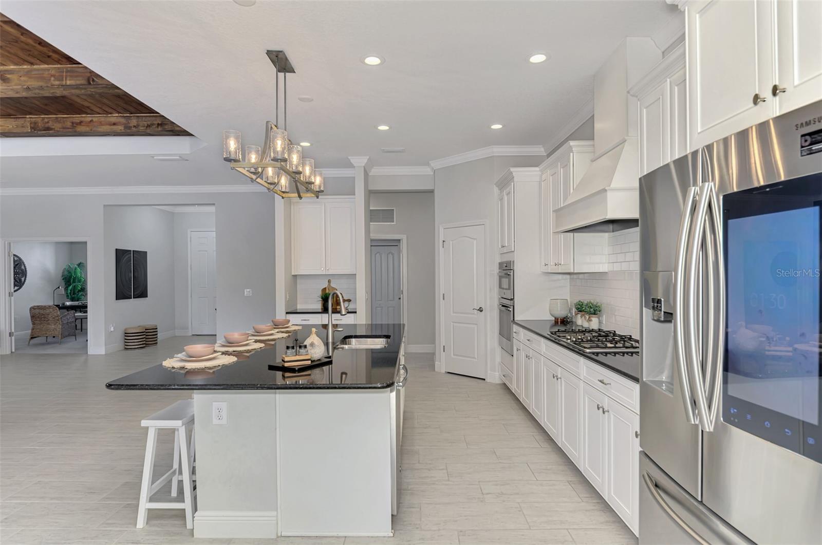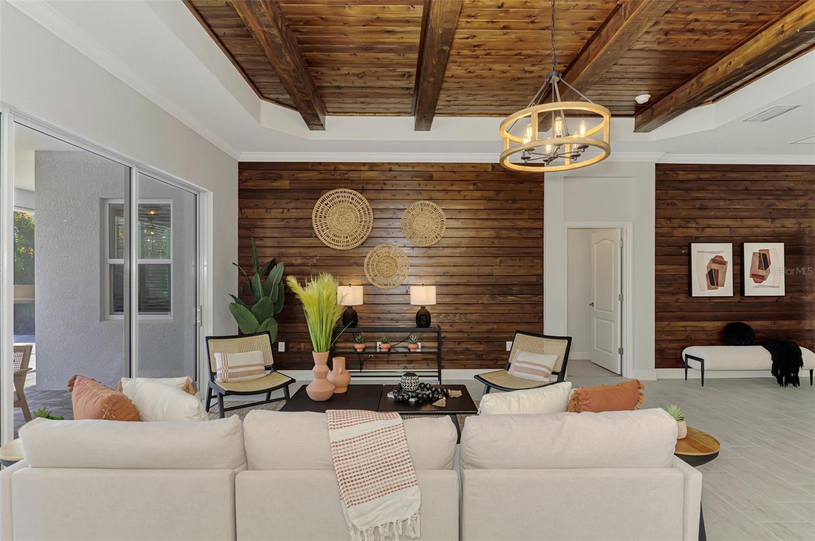 Welcome home to your own piece of paradise in the highly sought-after community of Grand Palm. Tucked away at the end of a private cul-de-sac within the gated Coastal enclave, this exceptional Santa Catalina home offers lush tropical landscaping, tranquil pond views, and a desirable south-facing backyard, creating the perfect setting for both everyday living and unforgettable entertaining.From the moment you arrive, you'll appreciate the incredible privacy and curb appeal, with abundant palm trees and mature landscaping surrounding the home. A deep, covered front entry with a sitting area sets a warm and welcoming tone, creating an inviting first impression.Inside, the open-concept floor plan immediately impresses with beautiful sightlines, abundant natural light, and thoughtful architectural details throughout. The expansive great room draws your eye straight to the stunning outdoor living space and is accented by custom ceiling treatments, wood detailing, and beam accents that bring warmth and character to the home.The kitchen is both functional and inviting, featuring a large center island, ample cabinetry, generous prep space, stainless-steel appliances, and a gas cooktop, ideal for casual meals or entertaining. The dining area flows seamlessly from the kitchen, creating a comfortable and connected living space. A flexible office or den with glass French doors is conveniently located near the main living area, perfect for working from home or a quiet retreat.The primary suite is thoughtfully positioned on the main level and offers a peaceful escape with architectural ceiling detail, serene pond views, and a calming ambiance. The spa-like primary bathroom includes dual vanities, a soaking tub, a large walk-in shower, abundant storage, and a dream walk-in closet customized with built-ins.Additional main-level bedrooms are well-appointed, including Bedroom #2 with a custom closet with built-ins, and access to a Jack-and-Jill bathroom with dual sinks and a private shower and toilet area. Bedroom #3 features a charming barn door leading to a custom built-in closet. A spacious laundry room with custom shelving and a functional drop zone with built-ins just off the garage add everyday convenience.Upstairs, you'll find a large bonus room offering a blank canvas for your own design, complete with recessed lighting and crown molding. Bedroom #5 enjoys abundant natural light, crown molding, and peaceful pond views, while an additional upstairs bathroom includes ample storage and a private shower and toilet area.Outdoor living is truly a highlight of this home. The expansive screened-in lanai features an oversized covered area with a built-in outdoor kitchen, bar seating, and stone countertops, perfectly paired with a private pool and expansive deck, all surrounded by lush tropical views.Perfectly located within this amenity-rich community, enjoy a short bike ride to Exploration Park, The Social Club with a full-time lifestyle director, state-of-the-art fitness center, three heated pools, splash park, tennis, bocce, volleyball, and a private island with fishing piers and scenic walking trails and so much more.This is more than a home, it's a lifestyle. Schedule your private showing today.
