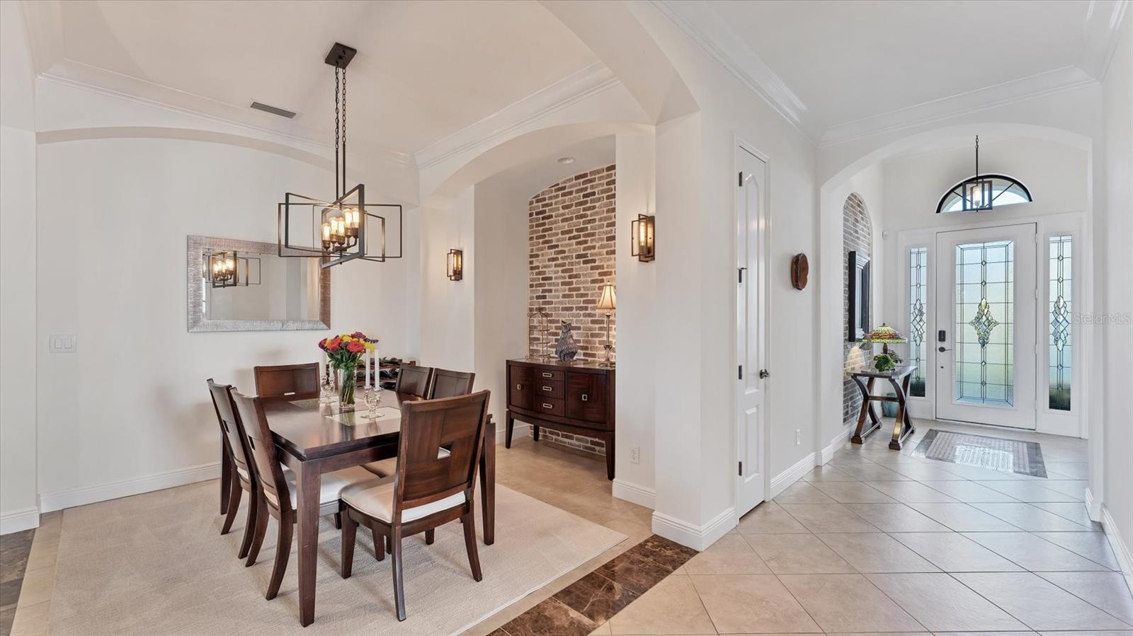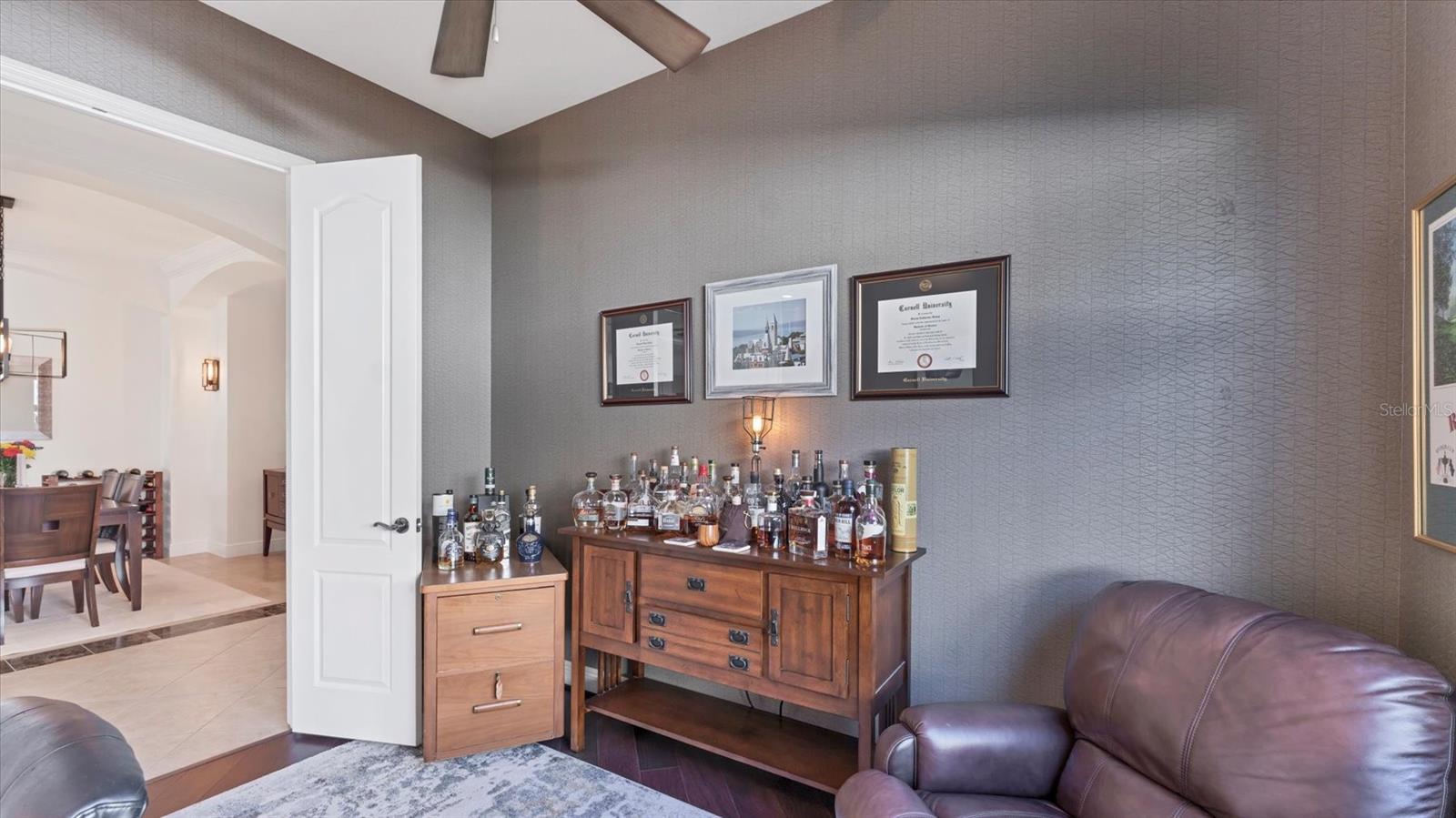 Welcome to this stunning former Lee Wetherington model home, with breathtaking views of a serene lake and lush golf course in Country Club East. This meticulously designed three-bedroom, two-bath home, complete with a den, offers the ideal balance of luxury, privacy and comfort. Decorative features like crown moldings, tasteful arches, neutral paint and subtle wallpaper finishes add elegance throughout. The large great room is an entertainer's dream, with a wood-inlaid tray ceiling, built-in shelving and a decorative brick wall finish that adds warmth and character. The great room opens directly to the expansive paver and brick lanai, which includes a saltwater pool and spa, ideal for relaxing or hosting guests while enjoying the stunning views. Directly off the great room is your kitchen with wood cabinetry, granite countertops, farm-style oversized sink, stainless steel appliances and eat-in dinette area with aquarium windows. The expansive primary suite, at the rear of the home, features a separate sitting area that overlooks the sparkling saltwater pool and spa. The suite also boasts three spacious walk-in closets and a luxurious en-suite bath with dual vanities, a soaking tub and a large walk-in shower. Two additional guest bedrooms at front of the home share a bath, ensuring privacy for all. The den, which features French doors, built-in shelving, and engineered hardwood floors, is ideal for a home office or library. The home also features a three-car garage with plentiful storage space, as well as energy-efficient upgrades, including Icynene attic insulation, Energy Star certification and Greenbuild Certification, contributing to a more sustainable lifestyle. Additional highlights include hurricane-impact sliders and front door, hurricane shutters for other windows and a water softener system for enhanced water quality. Recent upgrades include new pool pump, air-conditioning open free flow system, hurricane impact front door, new electric hot water heater, and updated smoke and carbon monoxide detectors. Country Club East residents enjoy exclusive access to The Retreat, a neighborhood amenity center boasting a resort-style pool, fitness center and billiards room. Additionally, The Residents Club offers another pool, spa, and a volleyball court for residents to indulge in leisure and recreation. For those seeking even more recreational options, just a few streets away lies the Lakewood Ranch Golf & Country Club, featuring 54 holes of golf, 20 Har-Tru tennis courts, multiple pools, and The Lodge bar and restaurant. Residents have the option to avail themselves of these facilities through various membership packages. This home is districted for top A-rated schools and only walking distance to Willis Elementary School and the beautiful Country Club Park, offering both exceptional education and abundant recreation. Discover this gem in Lakewood Ranch, America's top best-selling, planned multigenerational community.