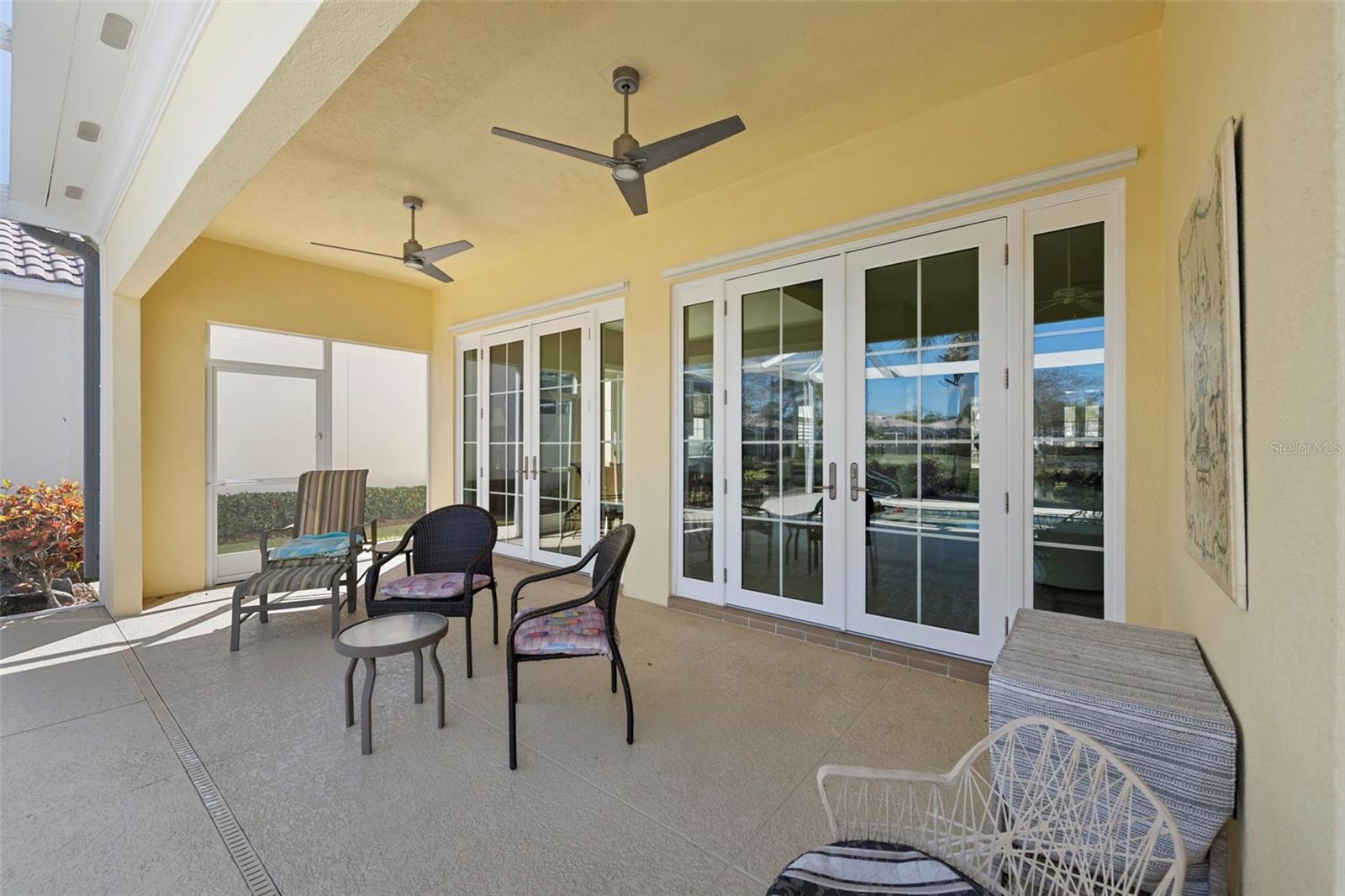 Oakmont Model with Pool & Panoramic Lake Views. Discover the perfect Florida escape in this beautifully maintained Oakmont model, designed for buyers seeking a seasonal or second home with exceptional outdoor living. Enjoy a private resurfaced pool, clear-view lanai enclosure (2019), and sweeping lake views with a charming bridge backdrop--a tranquil setting that feels like a resort yet is easy to lock and leave. Built by DiVosta with poured concrete reinforced construction, this home offers durability, peace of mind, and low-maintenance living. Impact windows and doors add storm protection, while French doors to the lanai invite in natural light and seamless indoor-outdoor flow--perfect for entertaining or relaxing after a day at the beach. The thoughtfully designed floor plan includes three bedrooms, two bathrooms, and a den, ideal for a home office or flex space when hosting guests. Interior upgrades include engineered wood flooring in all bedrooms, a remodeled primary shower, central vacuum, epoxy garage floor, and a well-appointed kitchen with stainless steel appliances, Corian countertops, and a closet pantry. Step outside to the covered lanai and pool area--your private retreat for morning coffee or sunset swims. The clear-view screen preserves the stunning water view while providing year-round comfort. Additional highlights include a/c 2017, resurfaced pool, two guest bedrooms ideal for visiting family, and a den perfect for working remote or hobbies. Whether you're escaping winter or securing a refined second home, this residence delivers the Florida lifestyle snowbirds seek--sun, water views, privacy, and quality construction in a peaceful setting. VillageWalk provides first-class amenities, including six Har-Tru tennis courts, geothermal heated lagoon and lap pools, pickleball courts, bocce ball, basketball courts, and miles of walking and biking trails. The community clubhouse offers a fitness center, meeting space, and a library. The vibrant Town Center includes a restaurant, hair salon, boutique, gas station, Tiki bar and onsite HOA office. An HOA manager and events coordinator keep the community calendar full of activities for residents. Golf carts are welcome, adding to the ease of navigating this well-planned neighborhood. VillageWalk is close to Publix, the Legacy Bike Trail, Costco, Siesta Key Beach, medical facilities, dining, and more. Don't miss the opportunity to own this exceptional home in one of Palmer Ranch's most sought-after communities. Being sold furnished with exclusions.