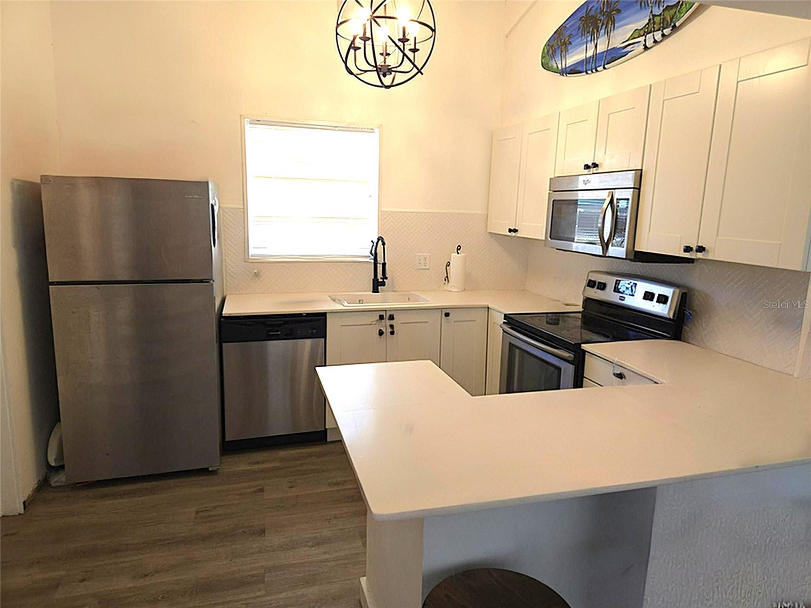One or more photo(s) has been virtually staged. You've been searching for a home with character, not another cookie-cutter layout or HOA-controlled community. A place where architecture matters--where light, space, and design feel intentional. This mid-century-inspired home delivers exactly that. Located on a large corner lot on a quiet dead end street, a solid brick home. With vaulted ceilings with exposed wood beams, expansive windows, and a statement brick fireplace create a warm, open atmosphere that feels both timeless and current. The layout flows naturally, connecting indoor and outdoor living in the way mid-century homes were meant to--simple, functional, and inviting. The master bedroom is a serene retreat, boasting ample space, modern lighting, and a nicely remodeled ensuite bathroom with a double vanity and a stylish walk-in shower. The additional bedrooms are generously sized and share a well-appointed bathroom, ideal for family or guests. A den/office or bonus room space adjacent to the great room provides lots of windows and great views of the private back yard. The home extends its living space outdoors with a 12' x 10' covered screened in patio What makes this home special is that the work is already done. With a new roof in 2022, A/C 2020, new laminate flooring throughout 2022 for an updated modern finish. Beautiful thoughtful upgrades, you get the style you love without the stress of renovations. Just move in and enjoy. And best of all--no HOA. No rules, no fees, no approvals. Just a true single-family home on a generous corner lot where you can live comfortably and independently. If you have pets, this is a great yard for them to run around. Close to UTC shopping, downtown, Ringling Museum, Sara Bay Golf Course and the beautiful Gulf Beaches. This home is ready for you - don't miss it!