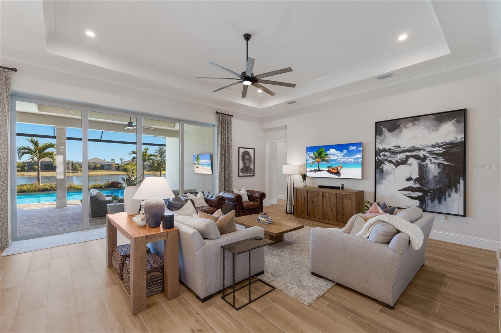 Behind the gates of The Lake Club, this beautifully designed five-bedroom, four-and-a-half-bath residence with a private office, and an upstairs bonus room offers the space, quality, and lifestyle today's buyers expect. Built for both comfort and peace of mind, the home features hurricane impact glass, a whole-house Generac generator, and integrated smart home capabilities. Inside, refined finishes include plantation shutters, tray ceilings with crown molding, quartz countertops, and an open-concept layout centered around a well-appointed kitchen with gas cooktop, built-in oven, large island, and walk-in pantry. An additional flex room provides versatility for formal dining, a second office, music room, or whatever best suits your needs. The living areas flow seamlessly to a panoramic-screened lanai showcasing a gas-heated saltwater pool and spa with sun shelf, along with a fully equipped outdoor kitchen--ideal for year-round entertaining. The primary suite offers private lanai access, customized walk-in closets, and a spacious bath with soaking tub, walk-in shower, and dual vanities. Designed with abundant storage throughout, including generous closets and a spacious laundry room with utility sink and built-in cabinetry, the home also features an oversized three-car garage and a thoughtfully designed second-level retreat with bonus room, guest suite, and full bath--completing this exceptional offering in one of Lakewood Ranch's premier communities.Lakewood Ranch is the number one best-selling, multigenerational community in the country and located near world-class shopping, dining, entertainment of Lakewood Main Street, University Town Center, downtown Sarasota and is minutes to I-75, beaches, great schools and medical facilities. Membership to the Lakewood Ranch Golf and Country Club is optional.