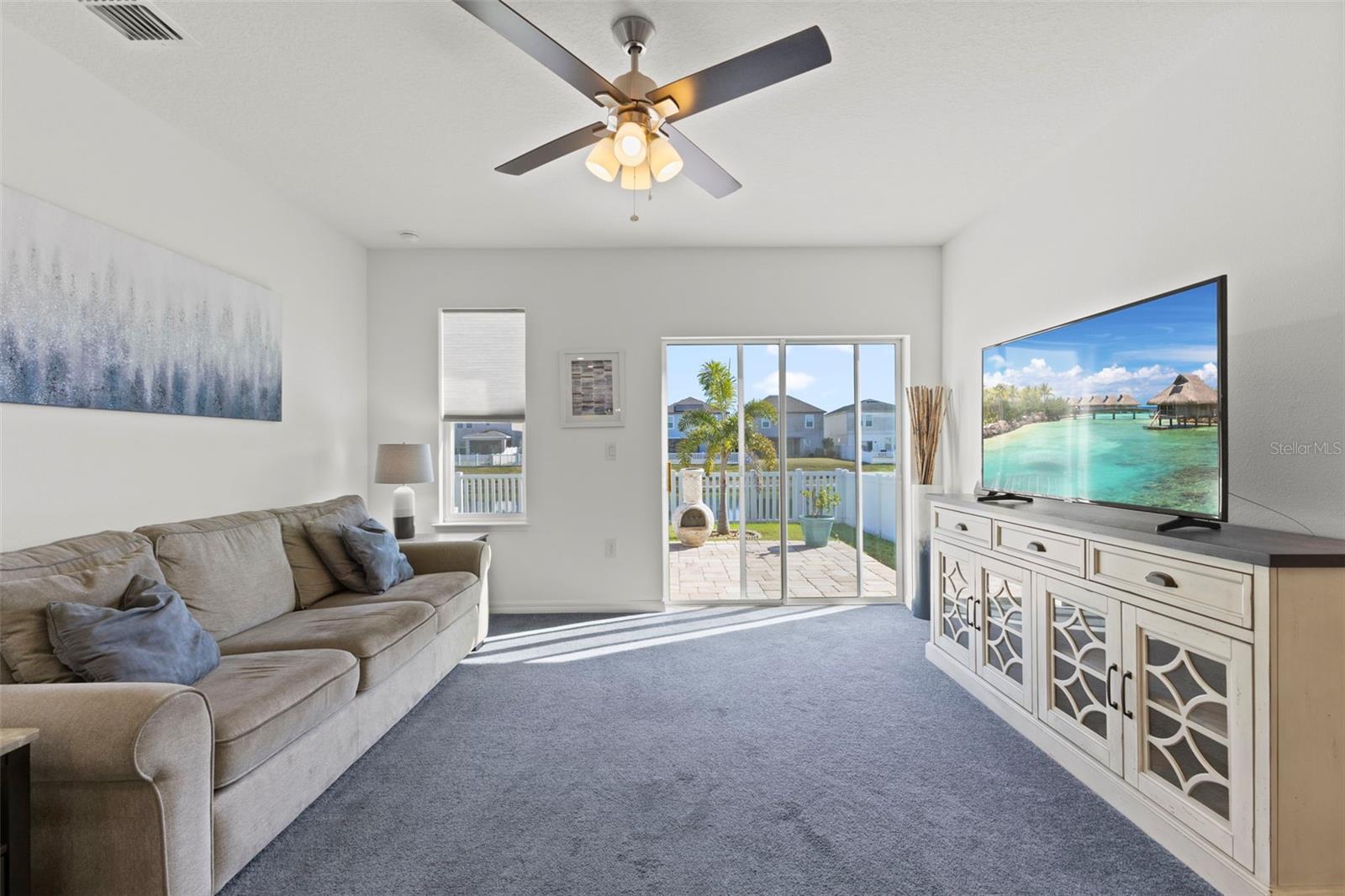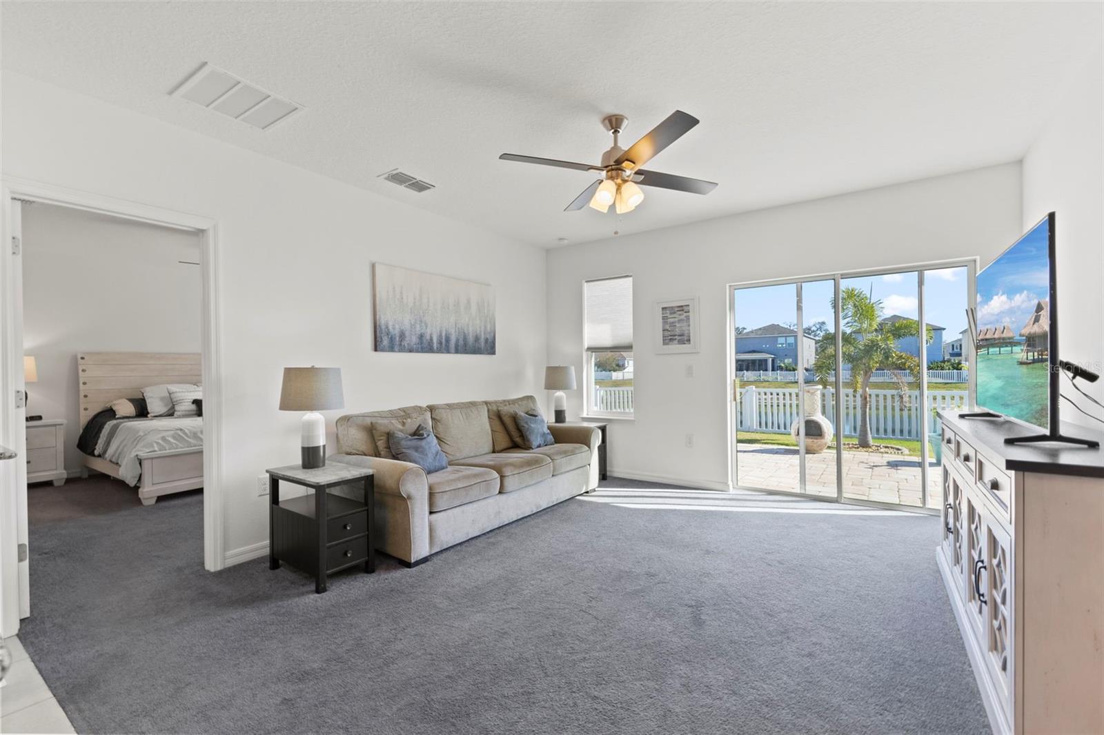 Exterior: Hurricane Shutters, Lighting, Private Entrance, Private Yard, Rain Gutters, Sidewalk, Sliding Doors