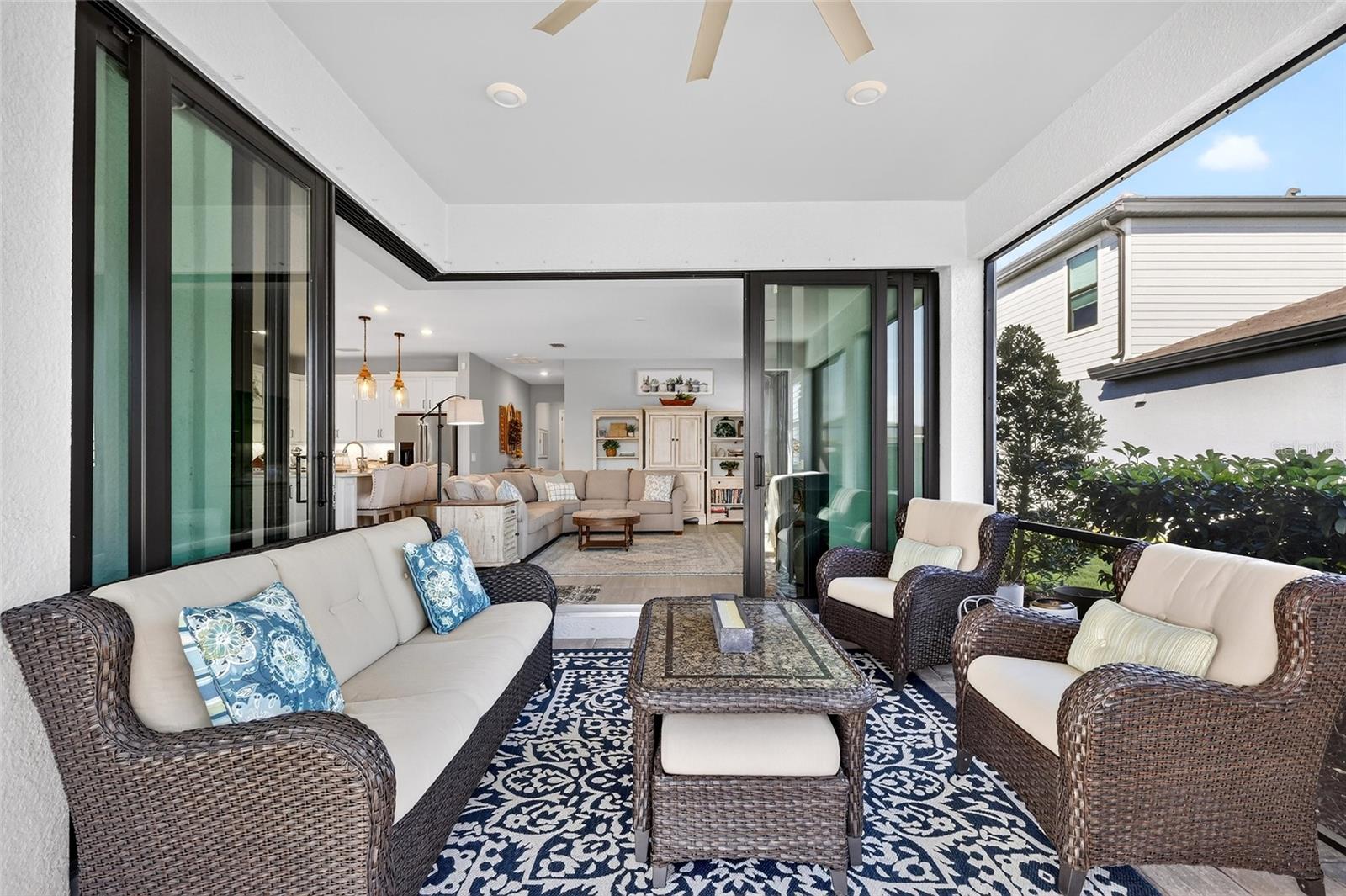 Exterior: Hurricane Shutters, Rain Gutters, Sidewalk, Sliding Doors