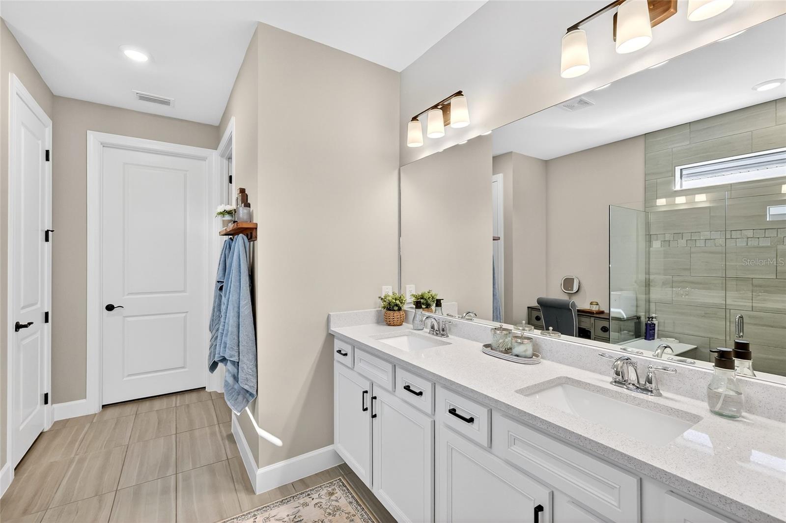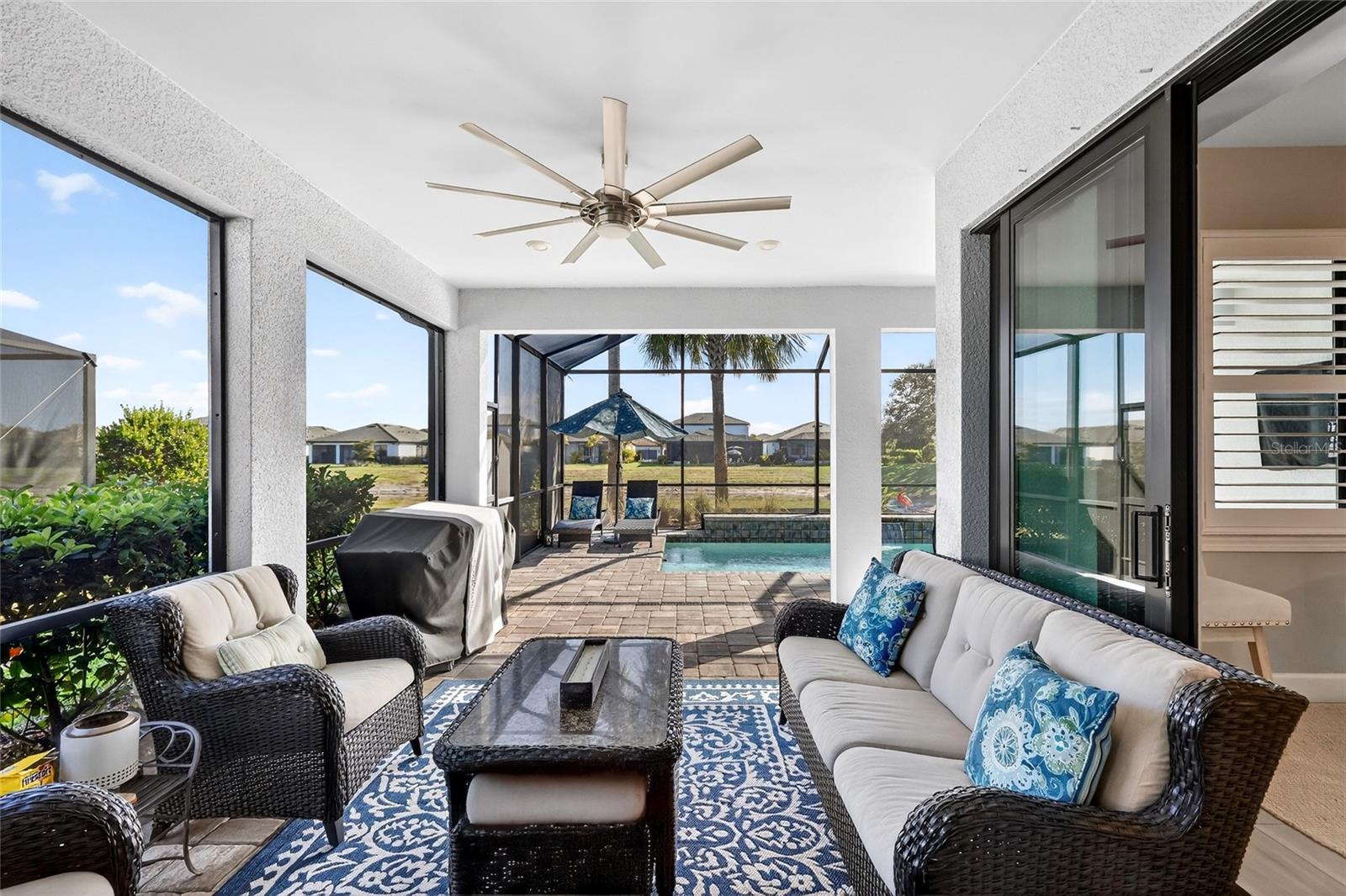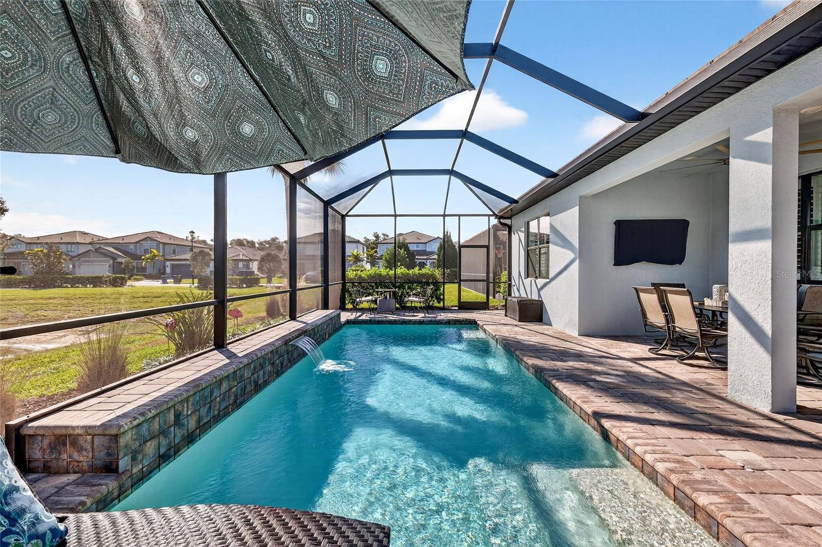 Welcome to this stunning, better-than-new 3-bedroom plus den, 2 bath pool home in the gated community of Magnolia Ranch. Featuring smart home technology, no CDD fees, and low HOA fees, this residence combines modern convenience with exceptional value. Set on a picturesque pond lot with a modern flat tile roof, pavered driveway, and inviting front porch, this home opens to a bright entryway and an airy, open triple-split floorplan designed for both comfort and functionality. Off the hallway, a spacious flex room with double doors offers plenty of privacy and is the perfect space to use as an office, home gym, den, or even a 4th bedroom. Just beyond the flex room is your open concept kitchen and eat-in cafe that overlooks the large Gathering Room. A zero-corner sliding glass door serves as the focal point of the Gathering Room and cafe, creating a seamless transition between indoor & outdoor living. Your beautifully appointed gourmet kitchen is thoughtfully designed with 42" cabinetry topped with crown molding, under-cabinet lighting, quartz countertops, a cooktop with matching hood, soft-close drawers, a deep single-bowl Blanco porcelain sink, timeless herringbone subway tile backsplash, & a dedicated pantry. You will LOVE the top-of-the-line KitchenAid Professional Series stainless appliances, including the double wall oven, making cooking a pleasure in this modern culinary space. Adjacent to the kitchen, the spacious kitchen cafe effortlessly accommodates both everyday dining and upscale gatherings. Step into a lanai designed as a private resort-style sanctuary. At its center is a heated, screened-in smart saltwater pool, upgraded with a NEW salt cell (2025) and a tranquil waterfall, overlooking serene pond views. Best of all, the entire experience is controlled right from your phone via the iAqualink app, allowing for effortless management of your outdoor oasis. Surrounded by tropical palms and privacy hedges, this lush sanctuary is perfect for entertaining or relaxing in the Florida sun. Back inside, the Primary Retreat is a serene, sunlit space with views of the lanai. Its expansive en-suite bath features a floor-to-ceiling tiled walk-in shower, an extended quartz vanity with dual sinks, a private water closet, & a massive walk-in closet. Toward the front of the home, two generous guest bedrooms flank the foyer, sharing a well-appointed full hallway bath. Nearby, the functional laundry room comes complete with a Whirlpool top-loading washer and matching dryer. Additional notable upgrades include Security sensors on all windows & doors; Wi-Fi extender; MyQ garage door opener; Smart Resideo enabled thermostat; Keyless front door lock; 8 foot interior doors; Plantation shutters throughout; Whole home gutters; No-See-Um 20/20 mesh screen pool enclosure; Ceiling fans in all bedrooms & lanai; Premium carpet pad in bedrooms; Hurricane shutters; 5 1/4" baseboards throughout; Garage w/4 foot extension; Epoxy garage floors; & Overhead storage racks in garage. Situated in highly desirable Magnolia Ranch, this quaint master planned gated community is maintenance assisted - so put those lawnmowers and weed whackers away, because this neighborhood includes landscape maintenance for the front, back, and side yards...perfect for those looking for the laid back Florida lifestyle! Just minutes from world-class shopping, dining, entertainment, and Gulf Coast beaches, this home offers the perfect combination of luxury, convenience, and coastal living.