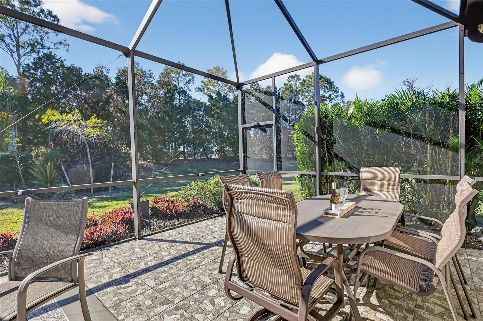 Welcome to this beautifully appointed three-bedroom residence, ideally situated on a premium cul-de-sac homesite offering exceptional privacy, tranquil water views, and the ambiance of a private retreat within a highly desirable country club setting. This thoughtfully designed home features a dedicated office/den and an open-concept floor plan, highlighted by porcelain tile flooring throughout and elegant plantation shutters. The spacious living and dining areas flow seamlessly, creating a bright and inviting space for both everyday living and entertaining. The flexible office/den provides the perfect setting for working from home, unwinding, or creating a personalized relaxation space. The kitchen serves as the heart of the home, showcasing stunning water views, ample storage, and a stylish coffee and bar nook--ideal for daily living and hosting guests. A conveniently located half bath near the living and lanai areas adds comfort and ease for visitors.The oversized primary suite offers a peaceful sanctuary with direct lanai access, dual walk-in closets, dual vanities, and a spacious walk-in shower, providing a true retreat-like atmosphere. Enjoy year-round comfort and peace of mind with a newly updated HVAC system and whole-house generator. Step outside to your private outdoor oasis, complete with a rich dark-toned Pebble-Tec pool, butterfly garden, serene water views, and a rare sense of seclusion within the country club setting. A retractable awning and remote-controlled hurricane shades allow you to relax in comfort in any weather, while accordion-style shutters provide full-home storm protection. The oversized two-car garage features a pebble-style floor finish and extra overhead storage, offering both style and functionality. This exceptional home seamlessly blends elegance, comfort, and privacy--delivering resort-style living in a prime location without sacrificing convenience or luxury. Located in the highly sought-after, gated community of Lakewood Ranch Country Club East, residents enjoy private roads, three community pools, a fitness center, and a clubhouse. Centrally located near shopping, dining, restaurants, major airports, and more. Optional country club membership provides access to four championship golf courses, three restaurants, pickleball, tennis courts, and a full suite of resort-style amenities.
