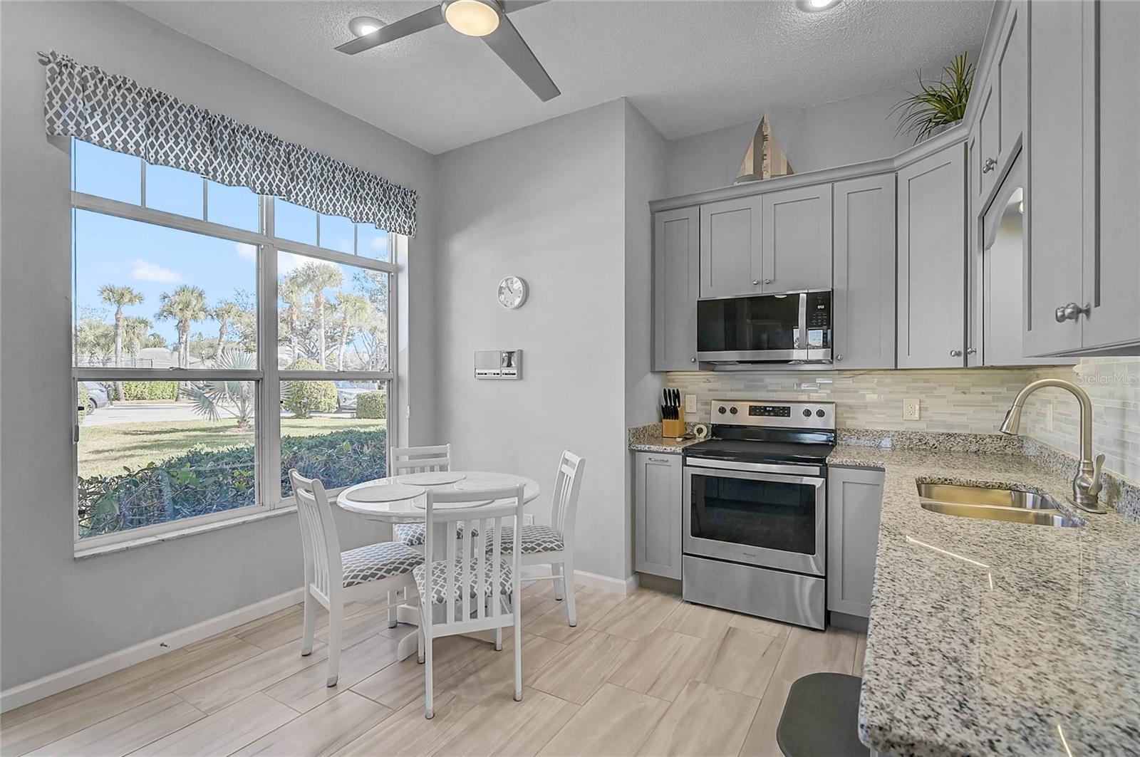 Wake up to peaceful lake views and easy, maintenance-free living in this bright and welcoming two-bedroom, two-bath home with a two-car garage in the highly desirable Isles of Chestnut Creek. Designed for comfort and connection, the open floor plan features soaring volume ceilings, oversized windows that fill the home with natural light, and spacious living and dining areas that flow effortlessly into the Florida room and lanai--perfect for morning coffee, sunset views, or gathering with friends. The split-bedroom layout offers privacy for guests, while the primary suite enjoys tranquil water views, a walk-in closet, and a beautifully updated bath with a refreshed vanity, modern fixtures, and a stylish tiled shower. The kitchen has also been tastefully renovated with granite countertops, updated cabinetry, and newer appliances, creating a clean, modern space that's both functional and inviting. A new roof (2025) adds extra peace of mind, making this home truly move-in ready. Best of all, it's being offered turnkey furnished--just bring your suitcase and start enjoying the Florida lifestyle from day one. Outside your door, enjoy low-maintenance living and wonderful community amenities including a clubhouse, heated pool, pickleball, tennis courts, and shuffleboard. Stroll along tree-lined sidewalks, take in the wildlife around the neighborhood's scenic lakes, or head just minutes away to shopping, dining, Historic Downtown Venice, and the beautiful Gulf beaches. Simply unpack, settle in, and start enjoying the view.
