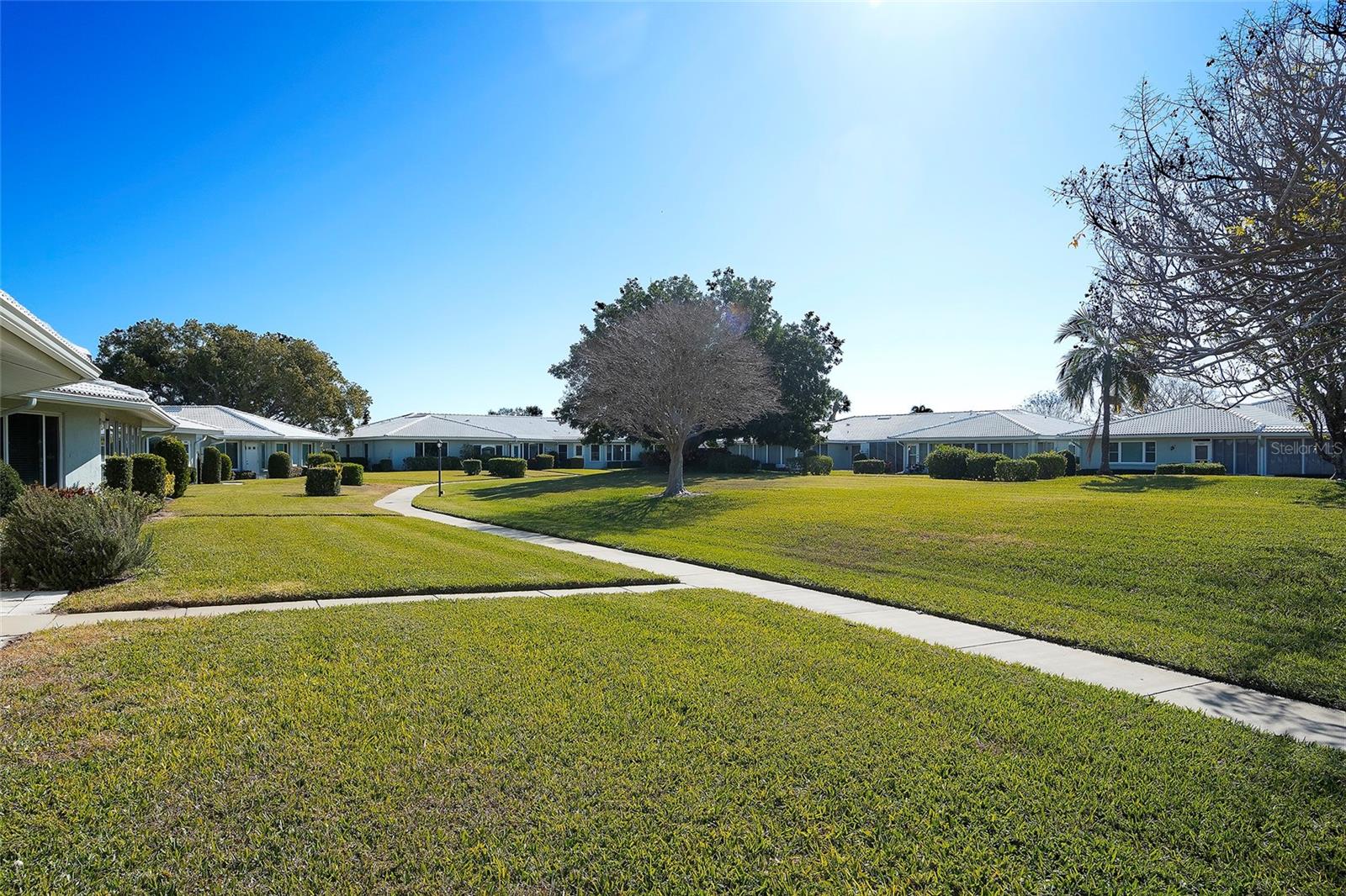 Make this delightful Village Green 2 Bedroom, 2 Bath villa your private sanctuary! Nestled in a quiet, peaceful 55+ neighborhood, this beautiful villa offers both comfort and convenience including a two-car garage. The entire interior has been freshly painted creating a bright and inviting atmosphere throughout. The home features a large living room, perfect for both relaxing and entertaining. The open layout seamlessly connects the living room, kitchen, and dining area, with flexibility of also having a large, air-conditioned Florida room. A dedicated back foyer adds a welcoming touch and place to dry off when you come home from the nearby pool. The home also has an indoor laundry room with lots of storage for added convenience and provides an indoor work area. Ownership includes cable and internet services, and lawn care. The community offers a scenic, peaceful locale and is centrally located in West Bradenton minutes from shopping, restaurants, brand new emergency medical facilities, entertainment, and just a short trip to the gulf beaches of Anna Maria Island. Book your showing today!