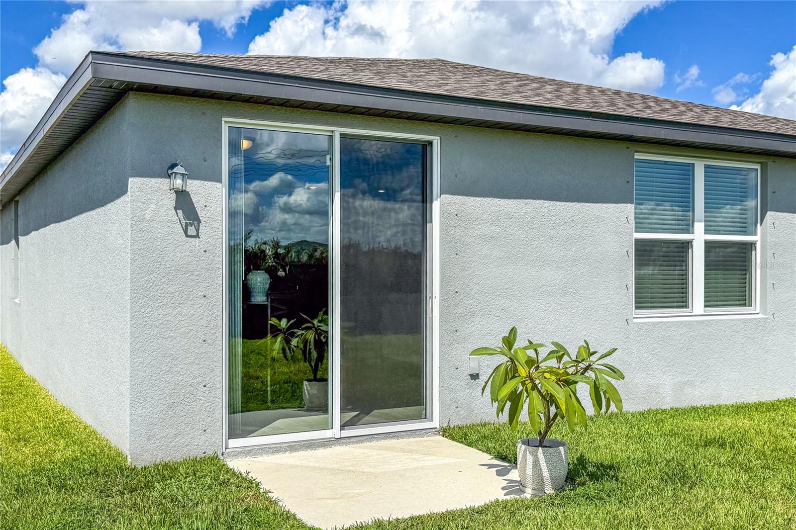Exterior: Hurricane Shutters, Sidewalk, Sliding Doors