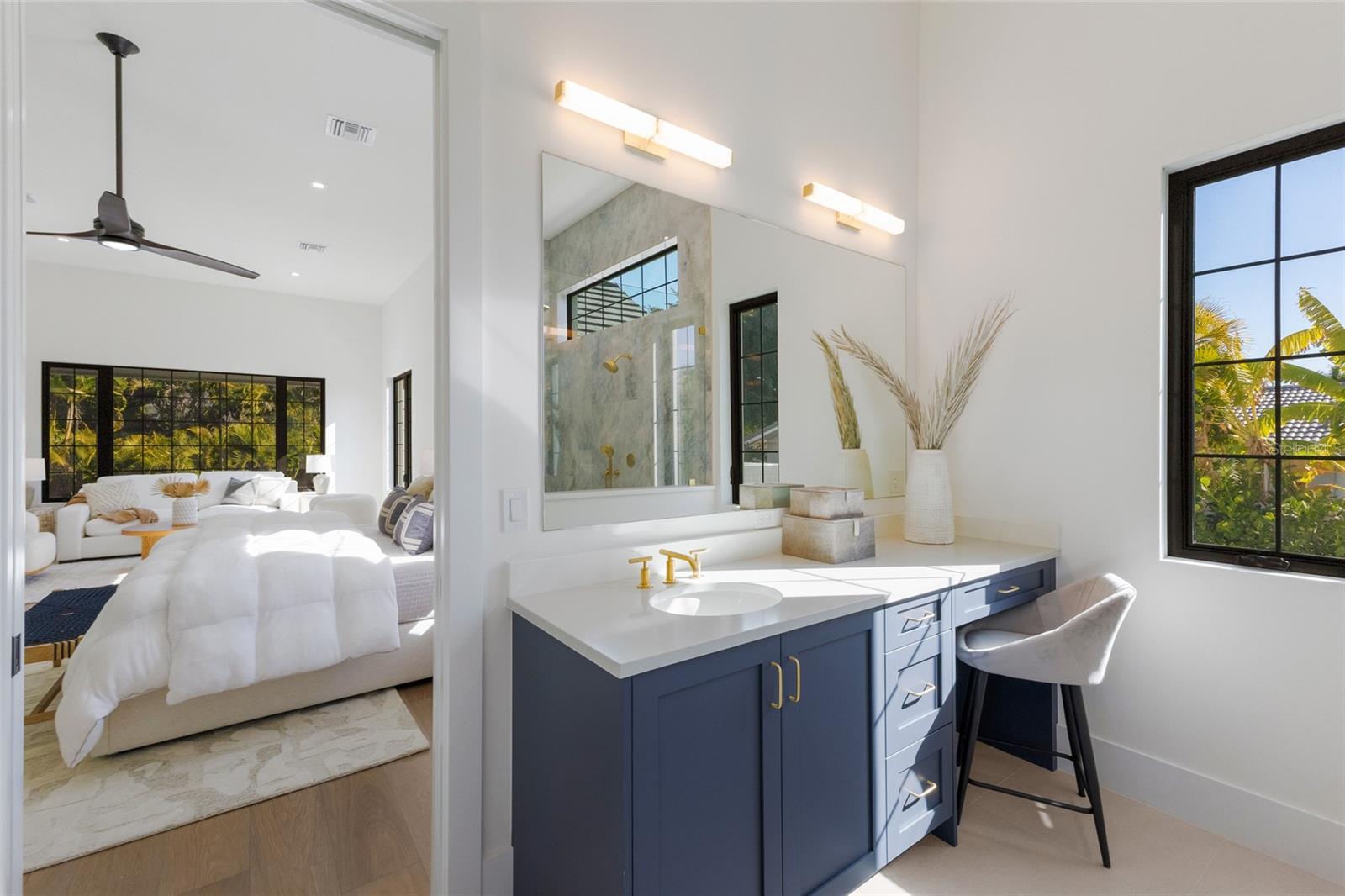 One-Of-A-Kind, New Custom-Built residence on prestigious Bird Key, offering a rare combination of scale, elevation, and thoughtful design. Spanning over 4,900 square feet, this refined contemporary home blends modern architecture with Florida's timeless coastal charm and is carefully planned to maximize privacy, comfort, and functionality. The home features four bedrooms, four-and-half bathrooms, a private office, and a separate guest suite/casita with its own bedroom and living area. A circular driveway leads to a striking double-height entry with oversized glass doors, opening to dramatic ceilings and light-filled interiors. The elegant great room, anchored by a fireplace, flows seamlessly through walls of glass to the covered poolside terrace with tray ceiling. Designed for both everyday living and entertaining, the gourmet kitchen offers a substantial island, high-end finishes, and a generous butler's pantry. The dining area opens to both the terrace and a fully equipped summer kitchen. The first-floor owner's suite is a retreat with direct terrace access and a spa-inspired bathroom. A private two-room casita provides ideal guest accommodations, while two additional en-suite spacious bedrooms are located upstairs. Additional highlights include an elevator servicing four levels, a mezzanine-level bonus room that can be used as a gym or media room, a well-appointed laundry room, and an impressive 33 x 15 ft enclosed pool and spa, creating a substantial extension to the home's indoor living areas. Elevated 11 feet above sea level and positioned on a larger-than-typical lot, this residence stands apart for its unusually generous homesite, allowing for exceptional first-floor living and expansive outdoor spaces rarely found in new construction on Bird Key. Bird Key offers an exceptional location just minutes from downtown Sarasota, the shops and dining of St. Armands Circle, and the beaches of Lido Beach. The Bird Key Yacht Club is currently undergoing a full rebuild and is anticipated to reopen in 2026 as one of Sarasota's premier destinations for boating, dining, tennis, and social events. Please note image of the gym (Bonus Room) has been digitally staged.