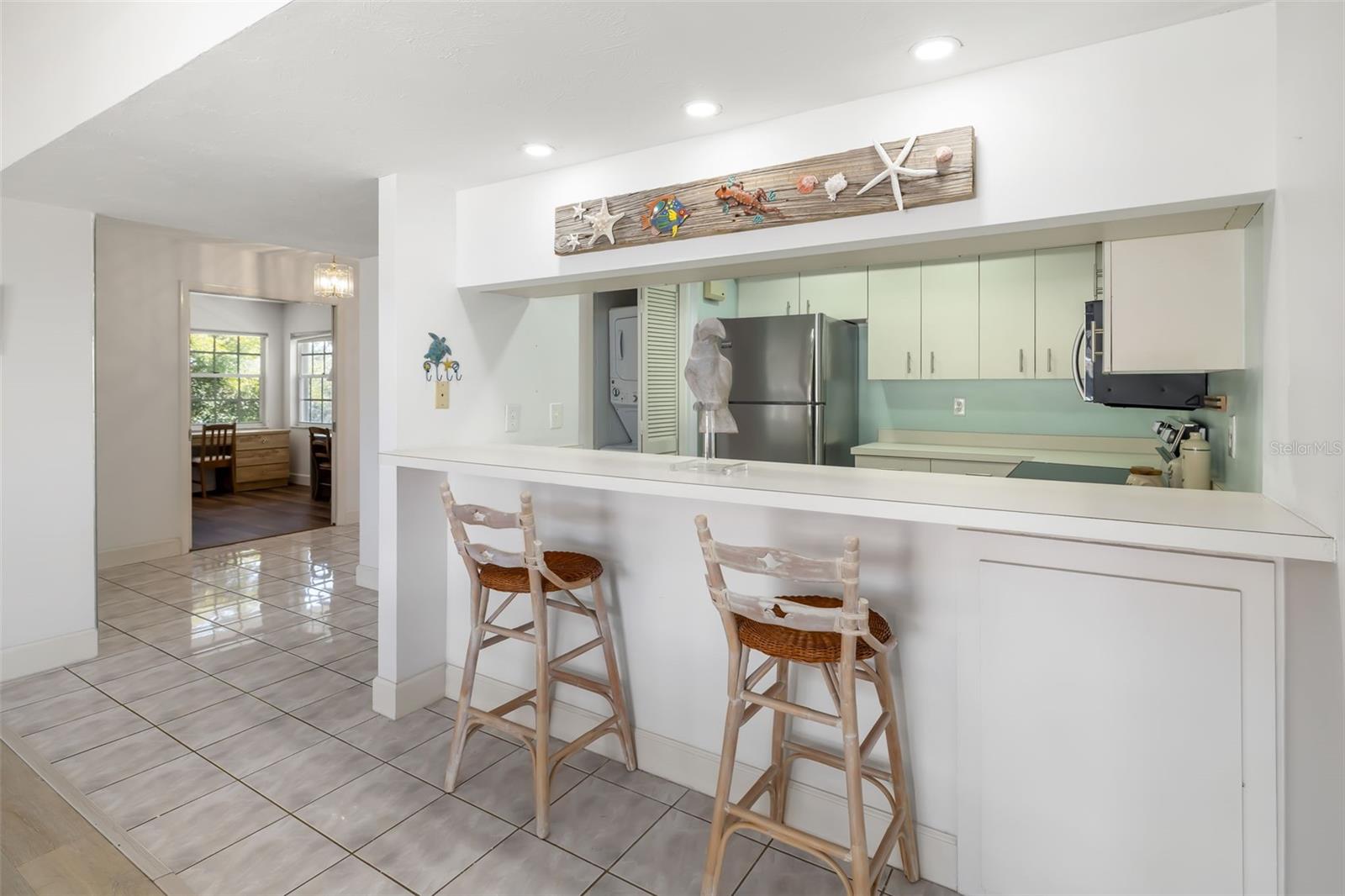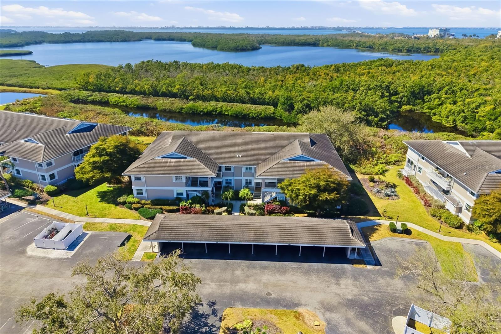 Welcome to Perico Bay Village, where maintenance-free waterfront living, an active social atmosphere, and exceptional amenities come together to create an outstanding Florida lifestyle. You will be 2 miles to the BEST BEACHES of the GULF WATERS of ANNA MARIA ISLAND!This beautifully maintained, furnished condominium offers 1,985 sqft. The glassed-in lanai offering natural light to this 3bedroom, 2 bath is highlighted by the views of the mangroves amongst the water with its wide array of bird watching. As the largest floor plan in Perico Bay Village, this light-filled top-floor corner unit is constructed with cement block from top to bottom, providing both durability and peace of mind. Inside, a split-bedroom layout offers privacy and flexibility, complemented by a vaulted ceiling in the main living area, ceiling fans, and an open living and dining space that feels bright and welcoming. The kitchen features stainless steel appliances and a breakfast bar, flowing naturally into the main living areas for easy everyday living and entertaining.One of the home's standout features is the enclosed Florida room, where you can enjoy your morning coffee, watch birds, or take in peaceful wildlife and sunset views overlooking a small lagoon fed by Tampa Bay. Sliding glass doors allow refreshing coastal breezes to move through the space, creating a relaxing indoor-outdoor atmosphere. Just off the dining area, a screened lanai provides additional outdoor living space--perfect for grilling, relaxing, or enjoying the surrounding scenery.The primary suite offers a walk-in closet and an updated en-suite bath featuring quartz countertops, dual sinks and cabinetry, and a walk-in tile shower with glass enclosure. Two additional bedrooms provide ample space for guests, with a guest bath conveniently located nearby. Additional highlights include interior washer and dryer, an extra walk-in storage closet, and recent updates throughout the home, including a new air conditioning system and ductwork, new kitchen stove/range and microwave, and luxury vinyl flooring.Convenience continues with an assigned covered carport parking space located just outside the front door, along with ample guest parking. Perico Bay Village is gated, Residents enjoy miles of recreational trails, a bird sanctuary, a heated community pool near the unit, an Olympic-size heated pool with lap lanes, an active clubhouse with frequent social events, a fitness center, four lighted tennis courts, pickleball courts, shuffleboard, and direct water access with paddleboard and kayak launch and storage. You can ride your bike or walk the streets in PBC or go to 3 different nearby nature preserves.Condo fees include exterior maintenance, cable, internet, water, sewer, and trash, allowing for true maintenance-free living. There are no age restrictions, and TWO pets are allowed with a combined weight of up to 40 pounds. Ideally located just minutes from Anna Maria Island, this home offers easy access to the area's best beaches, the Sandbar restaurant shopping on Pine Avenue, Visit to the Florida Maritime Museum and entertainment ranges from pier fishing to sunset tiki cruises.With its spacious layout, turnkey furnishings, water views, and access to one of the area's most amenity-rich waterfront communities, this Perico Bay Village residence presents an exceptional opportunity. Contact us today to schedule your private showing and experience this slice of Florida paradise in person.