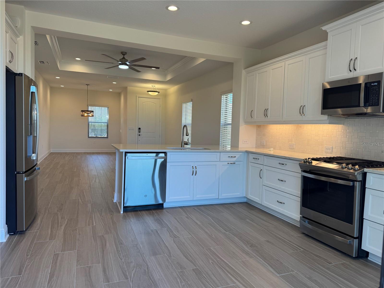 Some photos are virtually staged...MOVE-IN READY. Can close quickly. BEAUTIFUL, 3 Bedroom, 2 bath with double car garage. Exciting NEW GATED COMMUNITY, with wonderful community grounds, amenities and swimming pool. Over sized private lot with preserve views and lots of room between homes. This Gorgeous neighborhood is very quiet, with lots of community extras. Elegant home features new stylish design extra safe hurricane high impact windows and doors, quartz countertops throughout, upgraded stainless steel appliances, Foam insulation in exterior block walslls to keep utilities to a minimum.. Gourmet gas stove, making your cooking a breeze, kitchen under cabinet lighting! Natural Gas plumbed to lanai. Two car extended/oversized garage fitting the largest cars/SUV Trucks. Community features a beautiful swimming pool, plentiful number of pool chairs and tables, community meeting room , dog park, bocce ball courts and walking path. NO CDD FEE!!! Looking for a great home in a great community, you have found it.
