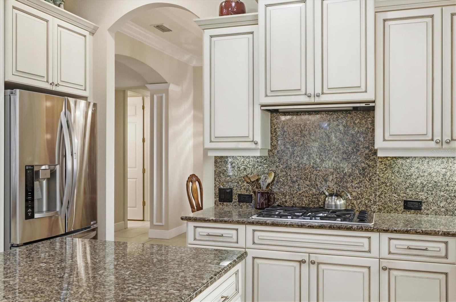 The $678.00 a month consist of $423.00 for country club HOA fees and a separate contract of $255.00 for a private maintenance of lawn, garden and irrigation.This custom Author Rutenburg home is a beautiful Mediterranean design positioned in a very private setting surrounded by conservation woods on three sides. The Tuscan exterior offers real stone architectural details along with a pavor lined driveway leading to an oversized 2.5 car side-entry garage. The double leaded doors enter into an open floor plan with high trey ceilings and a large feature wall of extensive molding with a built-in design. The high end finishes include custom lighting and disappearing glass doors to integrate the outdoors with indoor space. The kitchen offers classic wood cabinets, stone counters, stainless steel appliances, gas cook top and a wet bar. The breakfast area offers a nature lovers view of birds and butterflies in the tropical landscape through the large aquarium window, as well as the solar heated pool that is always warm and ready to enjoy. The primary bedroom is large and bright with a sitting area, walk-in closet and an access door to the pool area. The main bathroom is large with quality fixtures, such as a beautiful ivory Jacuzzi whirlpool bath, double sinks and oversized seemless glass shower surrounded by custom lighting and stone tiles. Two other bedrooms have sizeable closets and a shared bathroom. Additional customized spaces are the built in office desk, arched book case cabinets and nearby half bath. All rooms have ceiling fans and most have crown molding details. Boca Royale offers a newly updated golf course and restaurant with indoor and outdoor seating. Optional golf, tennis and pickle ball memberships (not mandatory) can be customized. Boca also provides many planned activities, entertainment and trips. For dog owners, their are two new parks for families to enjoy. Boca Royale is located within minutes from the Gulf breezes of several beaches, as well as the quaint town of Englewood and it's new Pioneer stage. The maintenance free living and vast social calendar provide an enjoyable and relaxing environment to ultimately call your home. Schedule your private tour today!