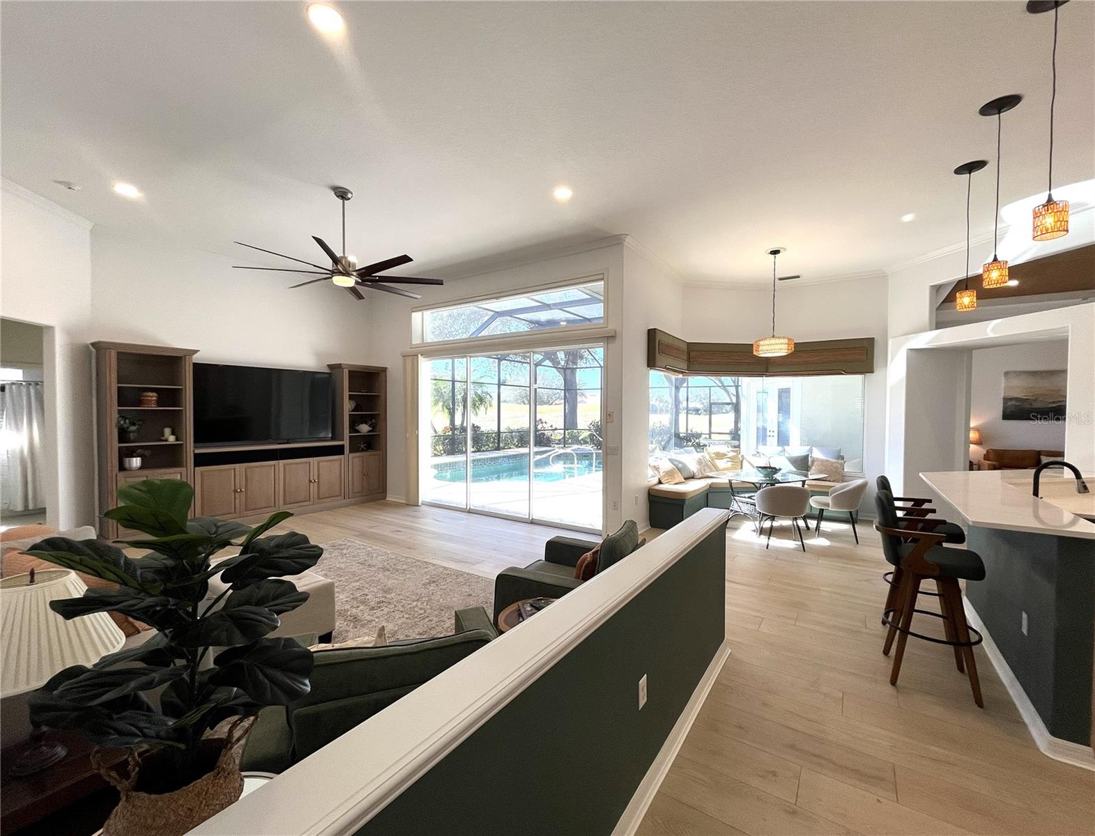 Welcome to your dream home in The Reserve! This newly renovated residence offers 4 bedrooms, a den, and 3,500 square feet of luxurious living space. Nestled on a quiet cul-de-sac and nearly half an acre, this property features sweeping golf course views and an expansive private side yard. Enjoy natural privacy with a portion of the yard planted with native Florida trees and palms, which also helps with drainage during the rainy season. The rest of the lot was elevated prior to construction for enhanced water protection.Inside, you'll find new 9x78 hybrid oak plank flooring in the main living areas, den, and guest bedrooms. The primary bedroom has new neutral textured carpet throughout the bedroom, linen closet, and two walk-in closets. All three bathrooms have been fully updated with porcelain tile floors, contemporary vanities, and modern tiled showers. Fixtures and plumbing are newly updated as well. The expanded pool bath now includes direct pool access, a changing area, and extra storage. The kitchen is a chef's delight with custom white shaker cabinets, cove crown molding, quartz countertops, and an extra-large stainless-steel sink. All appliances are less than 5 years old. Both main living spaces feature disappearing triple sliding doors--perfect for entertaining or soaking in the beautiful surroundings. Fresh paint and new lighting throughout create a bright, modern feel. Step outside to a Pebble Tec inground pool, decorative paver lanai, and brand-new screening. Additional highlights include a new roof (2024), a massive 36x22 garage with closet storage, a 2021 hurricane-rated garage door, and a hot-water-return system for instant hot water. The main house AC and water heater are approximately 5 years old, and irrigation is from a private well. This home is being offered with all furniture and decor pictured for the buyer's convenience, at no additional cost. Sellers are happy to remove all furniture and decor as well, if that is the preference.The Reserve is a highly sought-after gated community known for its beautiful environment and close proximity to golf, shopping, dining, and area beaches. This home is perfect for those seeking space, privacy, and natural surroundings, all while enjoying convenient access to everything the area has to offer.