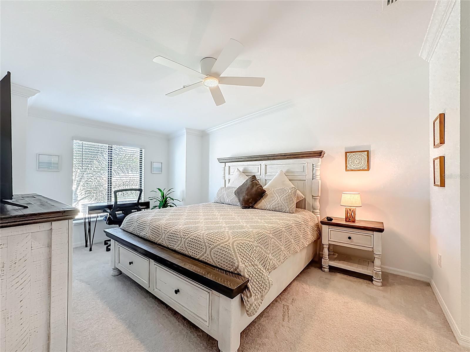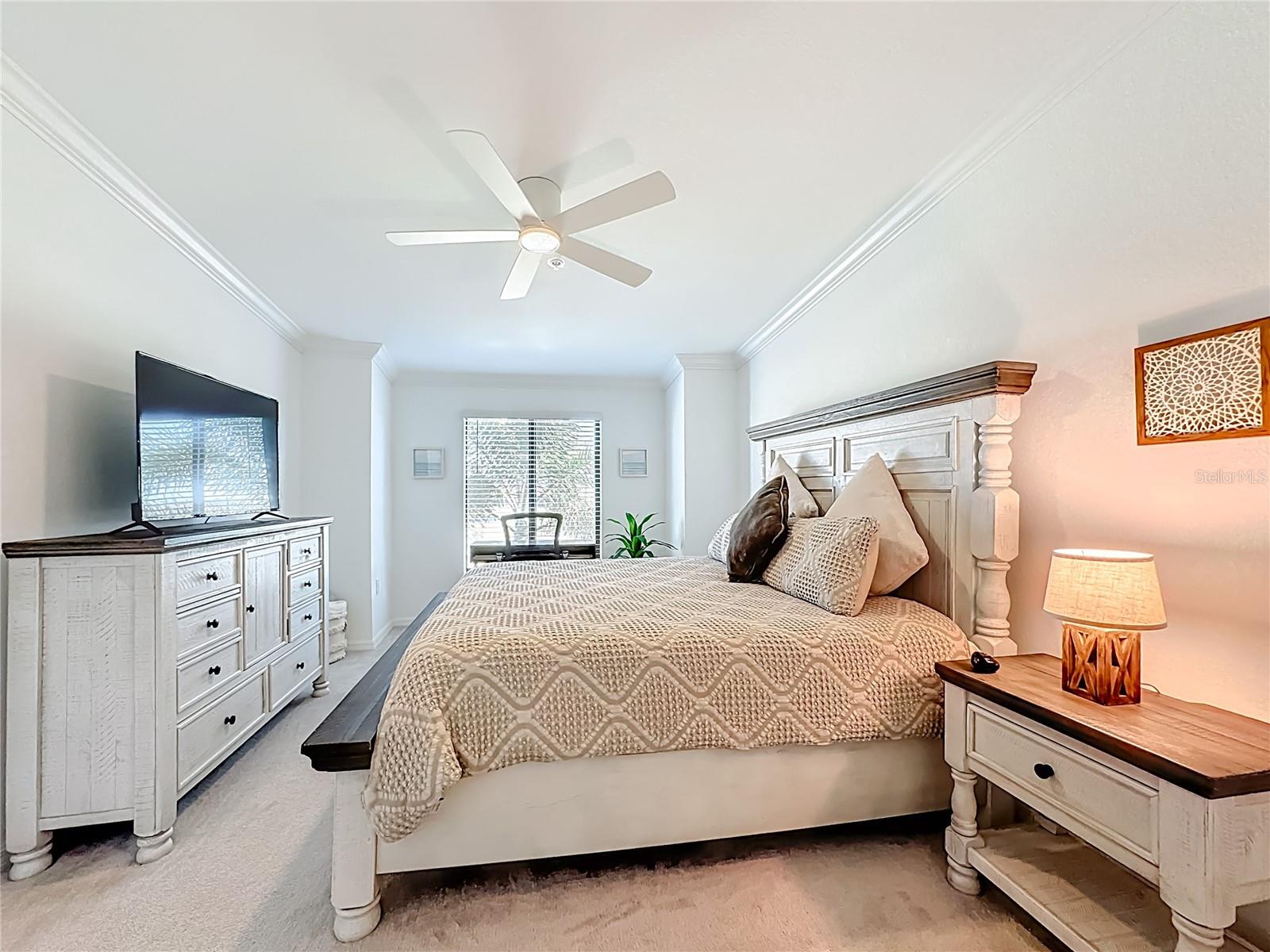 Beautifully decorated and meticulously maintained, this fully TURNKEY FURNISHED, golf-included top-floor veranda residence is move-in ready and ideal for primary residence, part time snow bird or seasonal or long-term rental as an income property. Overlooking the 18th hole of the Piper Course, the home offers peaceful golf course and water views from the desirable Bromelia II floor plan, featuring two bedrooms, two bathrooms, a den, which is currently being used a a 3rd bedroom, and a private garage. The open-concept layout is enhanced by vaulted ceilings, crown molding, porcelain tile flooring, updated lighting and ceiling fans, two screened lanais, and in-unit laundry, providing comfort and functionality throughout. The modern kitchen opens to the living area and is equipped with quartz countertops, solid wood cabinetry, stainless steel appliances, a breakfast bar, and a central island, making it perfect for both everyday living and entertaining. The den offers flexible bonus space and is currently configured as a bedroom, making it ideal for guests, a home office, or extended stays. Located within the gated Lakewood National Golf & Country Club, renters enjoy access to world-class amenities, including two 18-hole Arnold Palmer championship golf courses, a grand clubhouse, fine dining, a resort-style pool complex with poolside caf and Tiki Bar, heated satellite pools, tennis and pickleball courts, bocce courts, a state-of-the-art fitness center with 24-hour access, a full-service spa, and 24-hour security. Conveniently situated in Lakewood Ranch, the nation's top-selling master-planned community, residents are just minutes from shopping, dining, parks, biking trails, and a short drive to the area's renowned beaches, cultural attractions, and entertainment. This residence offers an exceptional opportunity to enjoy a secure, low-maintenance, resort-style lifestyle in one of Southwest Florida's most sought-after communities.