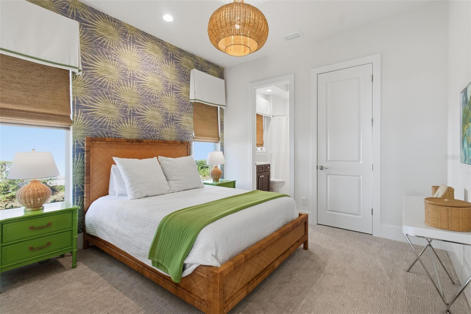 Experience the pinnacle of Sarasota luxury real estate in this masterfully composed estate within The Founders Club, just a short walk to the clubhouse amenities. Situated on the tenth hole, this Lee Wetherington Mainstay Platinum residence offers a rare vantage point with unobstructed views spanning four holes across the championship golf course.The residence serves as a benchmark for country club living, where coastal sophistication meets meticulous architectural detail. Professionally designed to create a serene atmosphere, the home features an array of high-end finishes, including shiplap wall and ceiling treatments, reclaimed wood accents, and custom recessed LED downlighting. Distinctive design elements elevate every room, from the grasscloth and Thibaut wallcoverings to the designer Schumaker wallpaper and custom linen window treatments.The open-concept floor plan includes three bedrooms, an office and a versatile bonus room with hardwired Hunter Douglas Silhouette blinds. The guest wing is equally refined, featuring a bathroom adorned with coastal fish scale tile and glass enclosures. The kitchen features a Fulgor natural gas cooktop, a built-in GE Monogram refrigerator with integrated cabinetry panels, and GE Caf appliances. A dedicated bar area with Cambria quartz counters and a wine cooler provides a seamless transition to the great room, anchored by a Dimplex linear fireplace recessed into a shiplap feature wall.The primary wing offers a private sanctuary with a custom closet outfitting, motorized shades, and a spa-like bath with light-up Kohler medicine cabinets. Technological integration is paramount, including a garage with an EV charger. The outdoor living space is a coastal dream, finished with Diana Marble decking and a saltwater pool featuring an automated autofill system and natural gas heater. A fully equipped outdoor kitchen with steel cabinetry and a Coyote natural gas grill provides the ultimate setting for the Sarasota sunset lifestyle in one of Florida's premier golf destinations.