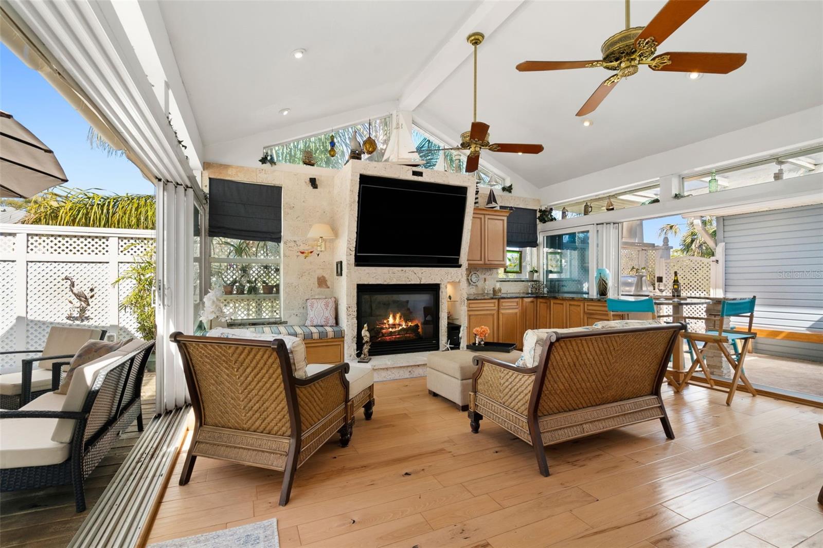 Welcome to an exceptional Snead Island residence where thoughtful design, luxury upgrades, and unmatched entertaining space come together seamlessly. This recently updated 3-bedroom, 3.5-bath home offers the perfect blend of coastal charm and modern convenience, featuring a stunning Rock Palm Garden and timeless Key West coral stone walls that anchor the living room with warmth and character.Step inside to a spacious gathering room that opens beautifully to both sides of the home's expansive outdoor living areas. A bright and inviting sunroom provides year-round enjoyment, while the private mother-in-law suite/game room adds incredible flexibility and is equipped with a macerator system, bar pump, and bar area, making it ideal for guests or multi-generational living.Designed for entertaining, the outdoor space is truly unmatched with over 1,300 square feet of raised wraparound decking, allowing effortless guest access throughout. Enjoy the fully equipped outdoor kitchen with stone flooring, hot tub, gazebo, bar, and an exterior wood-burning fireplace--your own private resort-style retreat.Inside, premium features include Bose surround sound, dimmer lighting in key living spaces, invisible countertop outlets, and even a hidden TV in the bonus room. The kitchen is enhanced by an oversized range hood and upscale finishes perfect for hosting.This home is packed with smart and storm-ready upgrades, including: New roof -lifetime warranty - transferable (130 mph rated)-Full-house generator-New siding and new front/rear stairs-Garden room with all hurricane glass-3M impact-resistant film on remaining windows-Insulated garage doors with A/C in the garage-700 sq ft of additional covered storage-Gutters, privacy fence, and complete exterior garden lighting-Modern comfort continues with a commercial-size water softener, under-counter drinking water system, and twin tankless hot water heaters.The automatic irrigation system offers Bluetooth accessibility, with irrigation water included in the HOA fees. Security and peace of mind are provided by the Vivint home monitoring system.Every inch of this property reflects an owner who truly thought of everything--creating a rare Snead Island opportunity built for comfort, style, and unforgettable gatherings. Its central location offers unparalleled convenience with seamless access to I-275 and I-75, facilitating effortless commutes to both St. Petersburg/Tampa and Bradenton/Sarasota. Furthermore, the property is minutes to Emerson Point Preserve, a hidden gem in southwest Florida that has several walking trails, spots to launch a kayak or canoes, a small beach at the tip of the point with views of DeSoto National Monument, Anna Maria Island and the Bridge to St. Petersburg. Also, close proximity to the airport, a plethora of dining establishments, and upscale shopping destinations. Additionally, the pristine Gulf beaches are a mere stone's throw away!